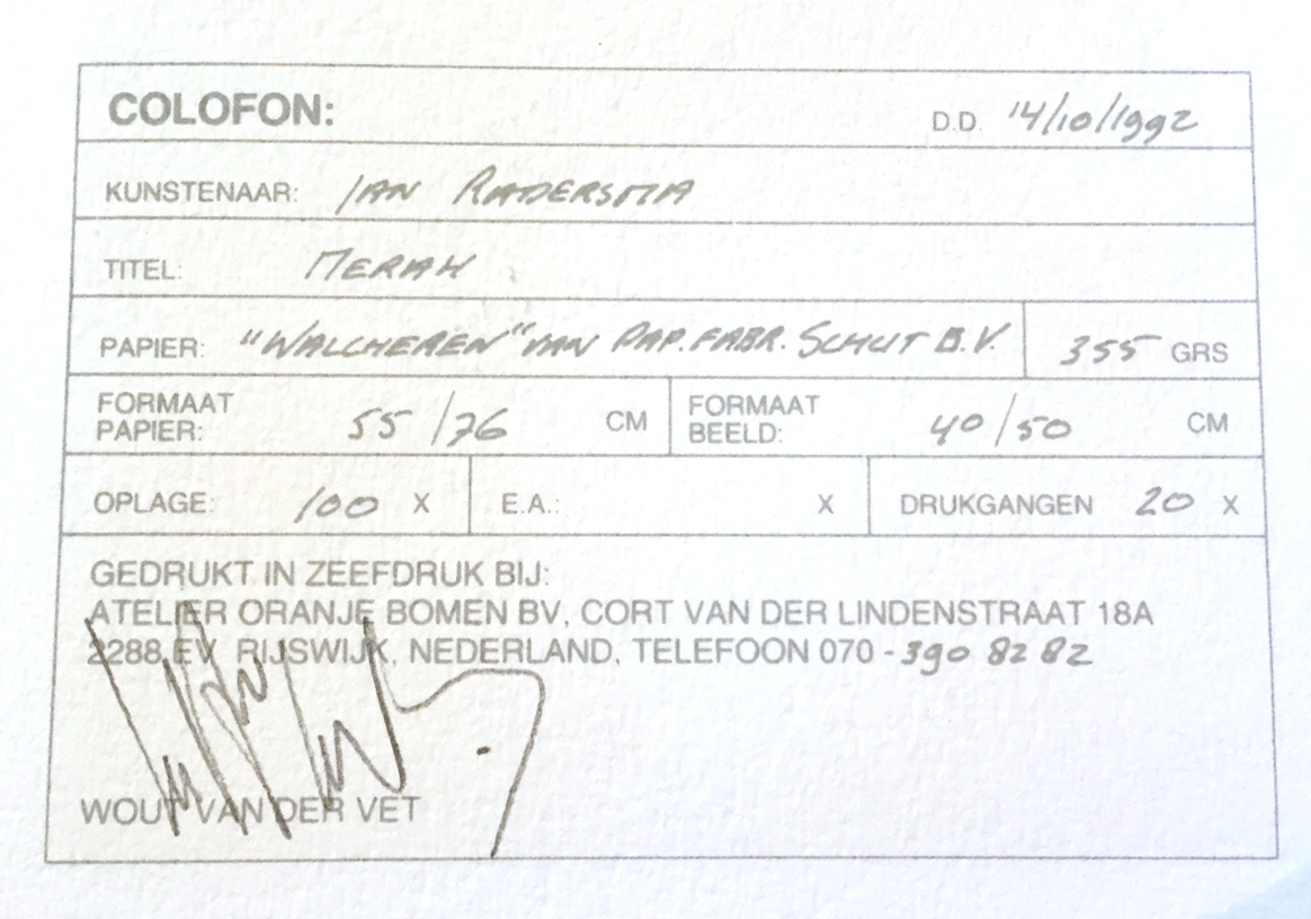 Zeefdruk is door meesterzeefdrukker Wout van der Vet met de hand gedrukt