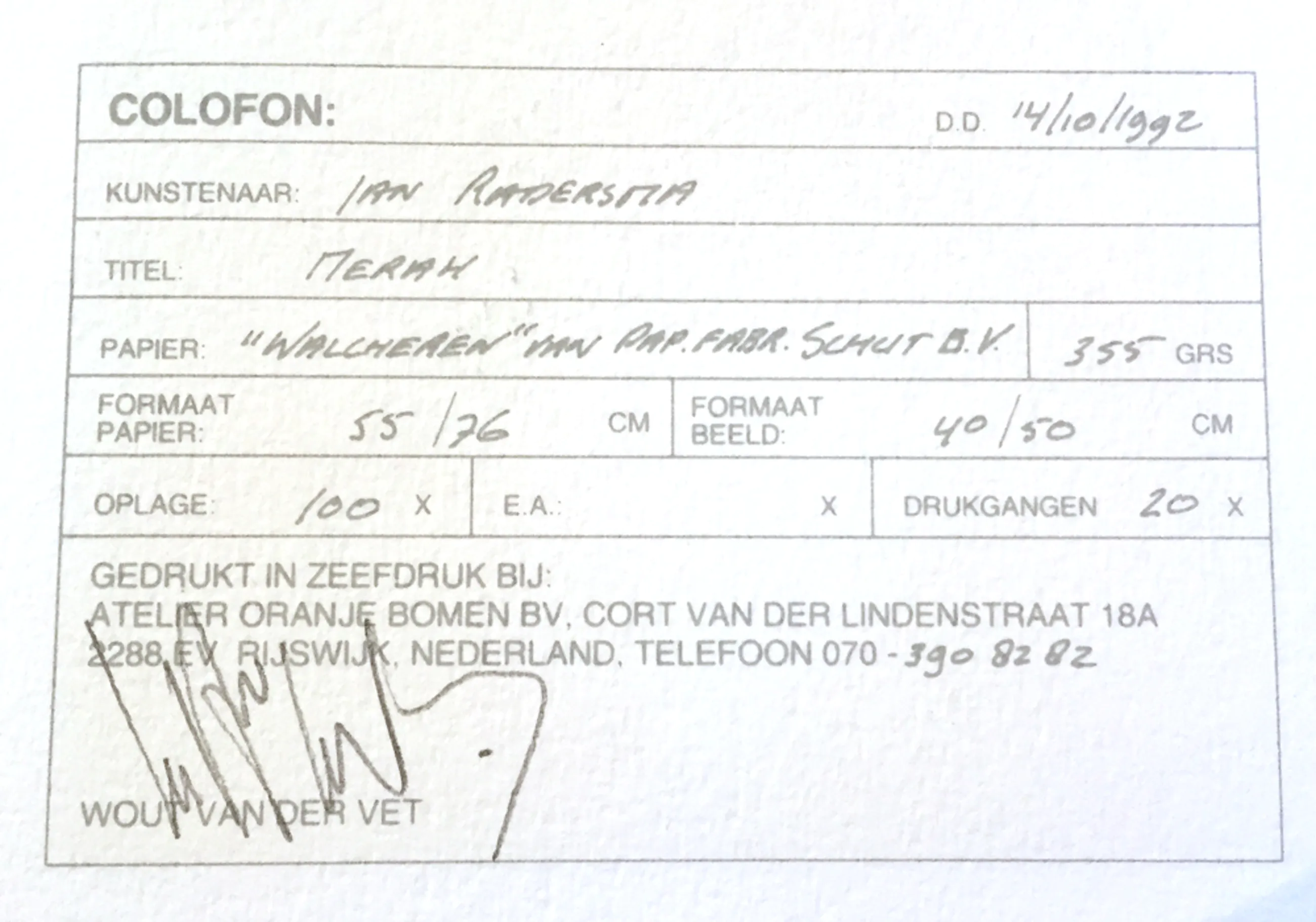 Zeefdruk is door meesterzeefdrukker Wout van der Vet met de hand gedrukt