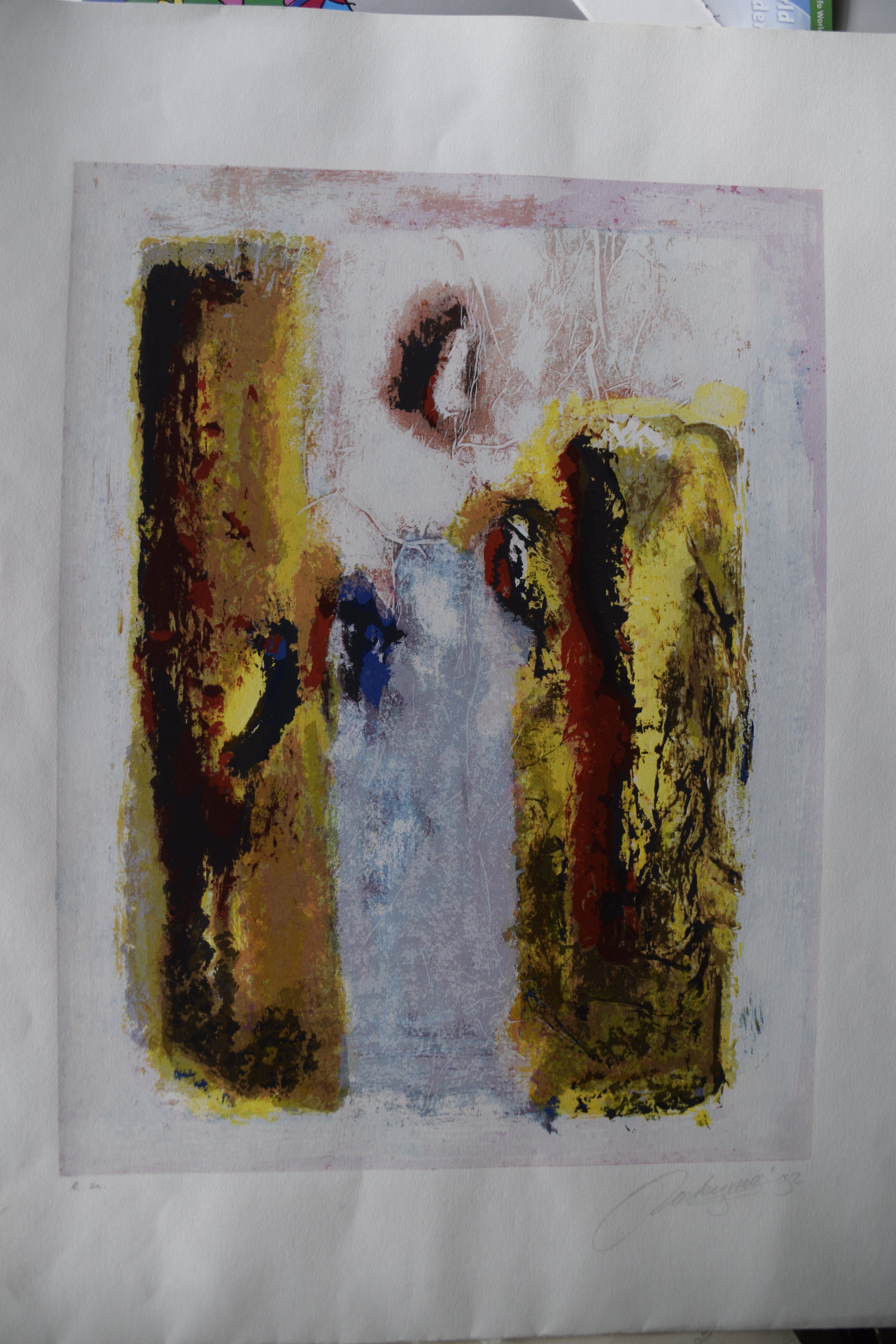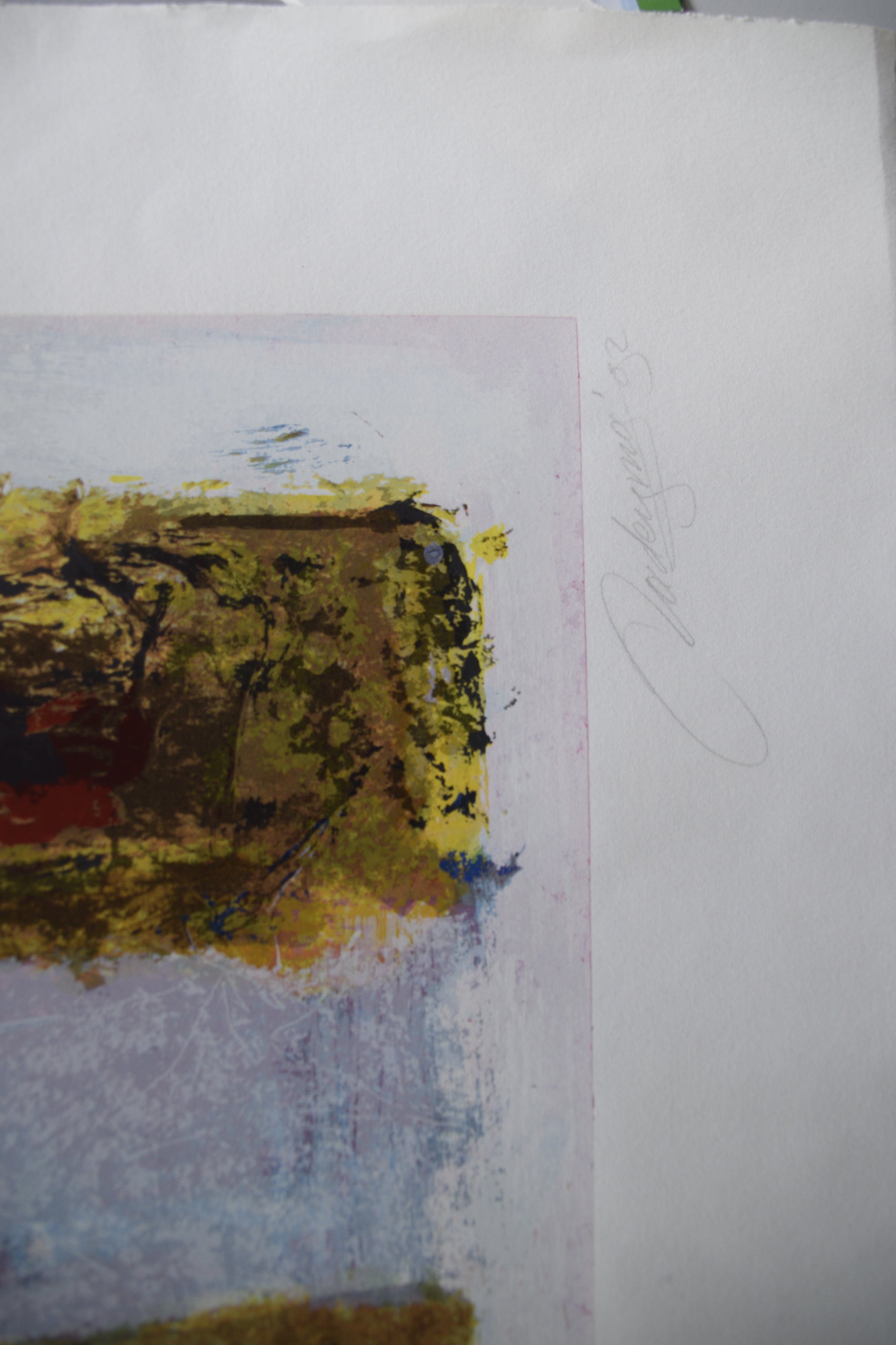 sterke compositie met aparte abstracte kleurvlakken - een sieraad 24 drukgangen - aan de voorzijde en achterzijde gesigneerd gemaakt 1/10/1992
