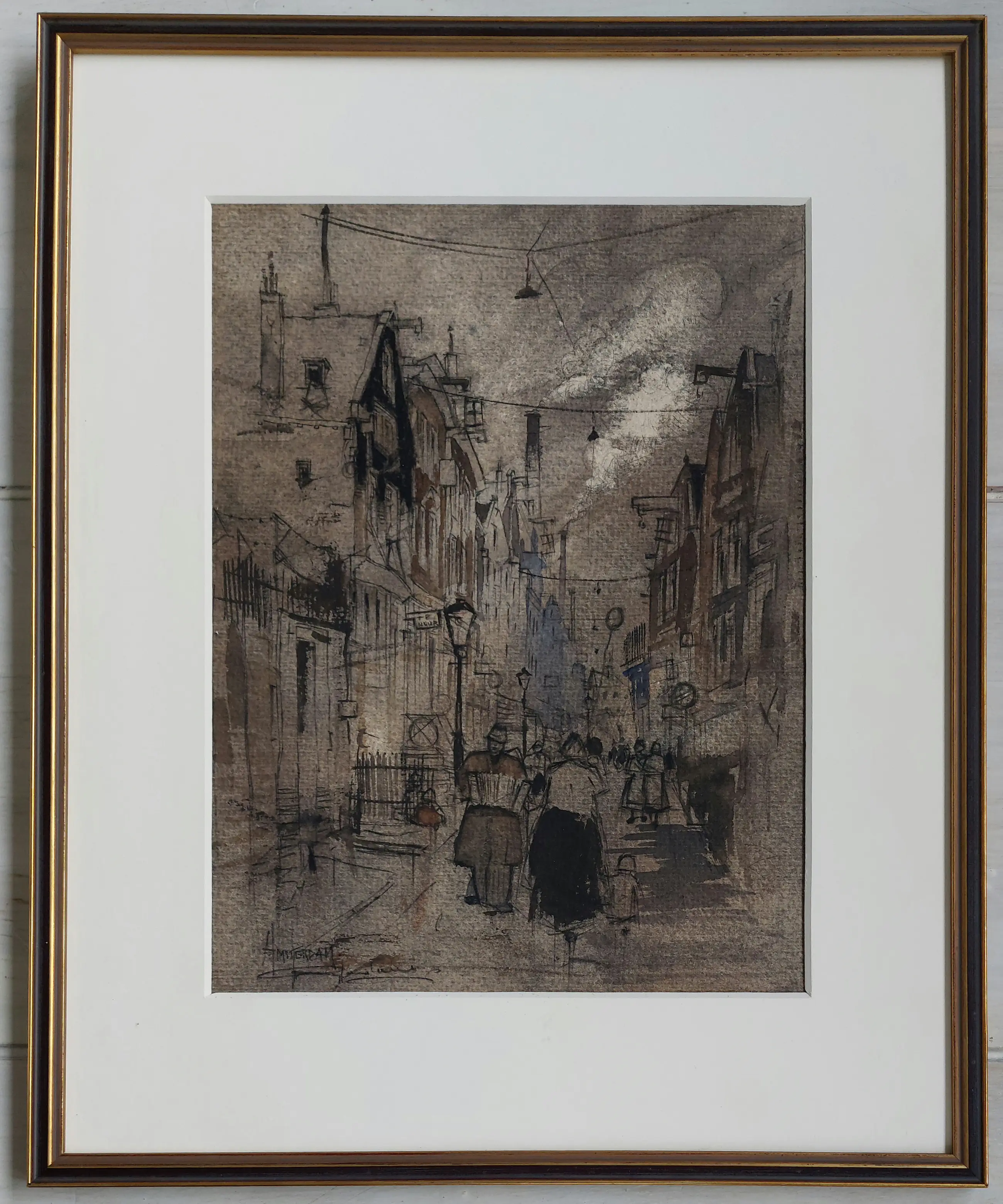 Een mooie amsterdamse straat scene Gesigneerd en betitteld links onder De afnetibgen zijn +/-