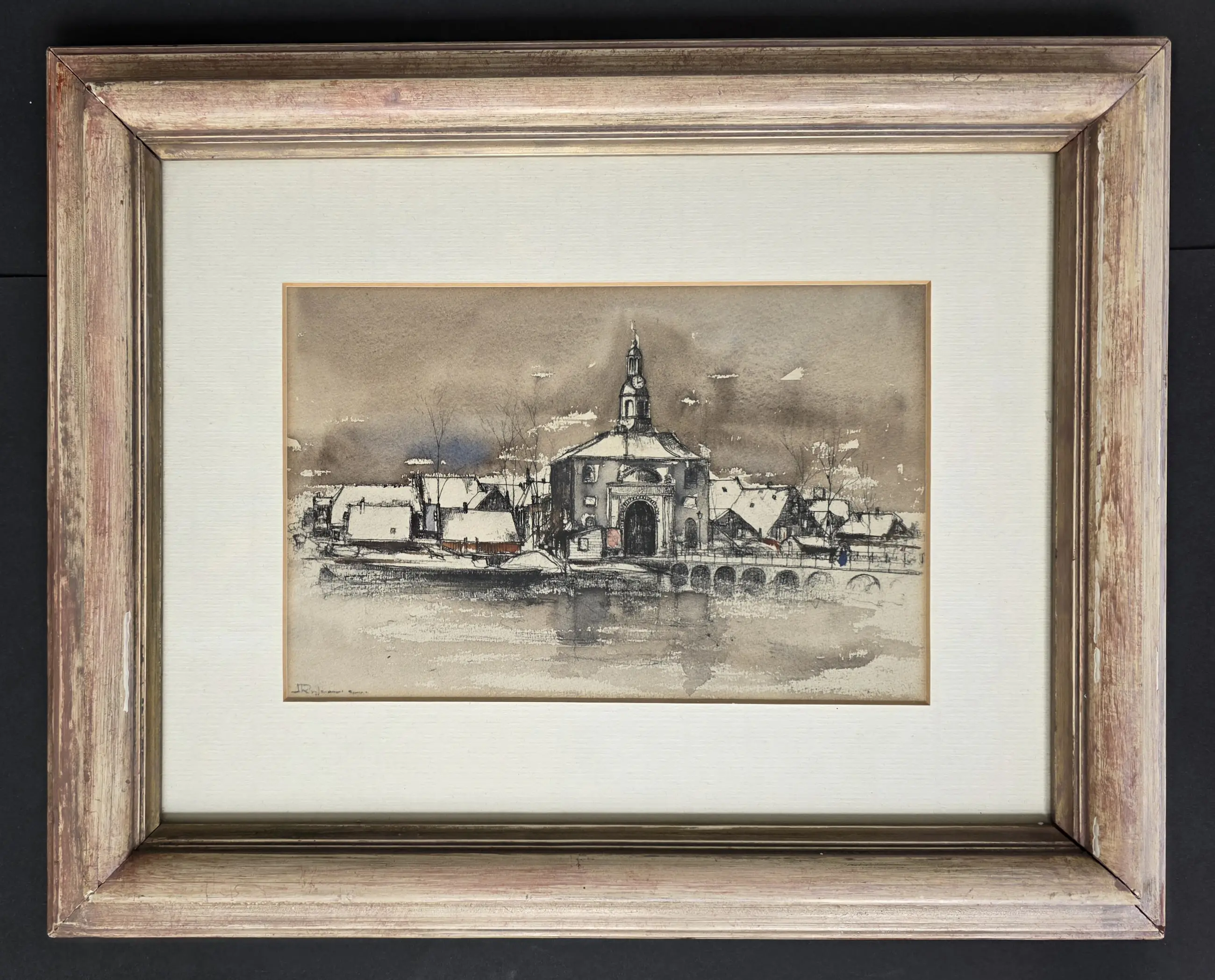 gesigneerd links onder in een prachtig bijpassende omlijsting