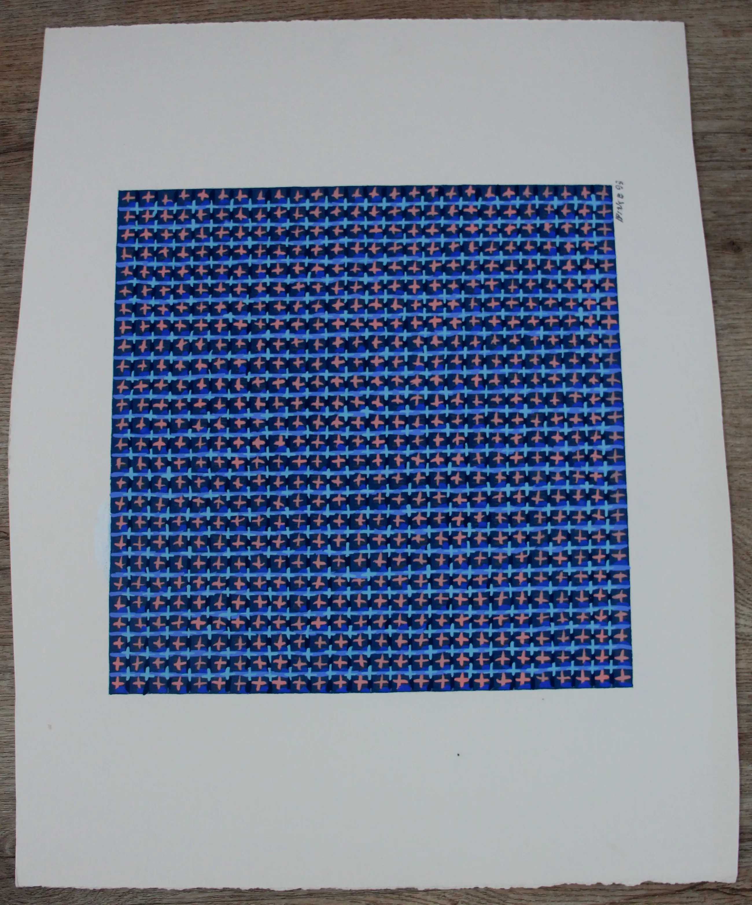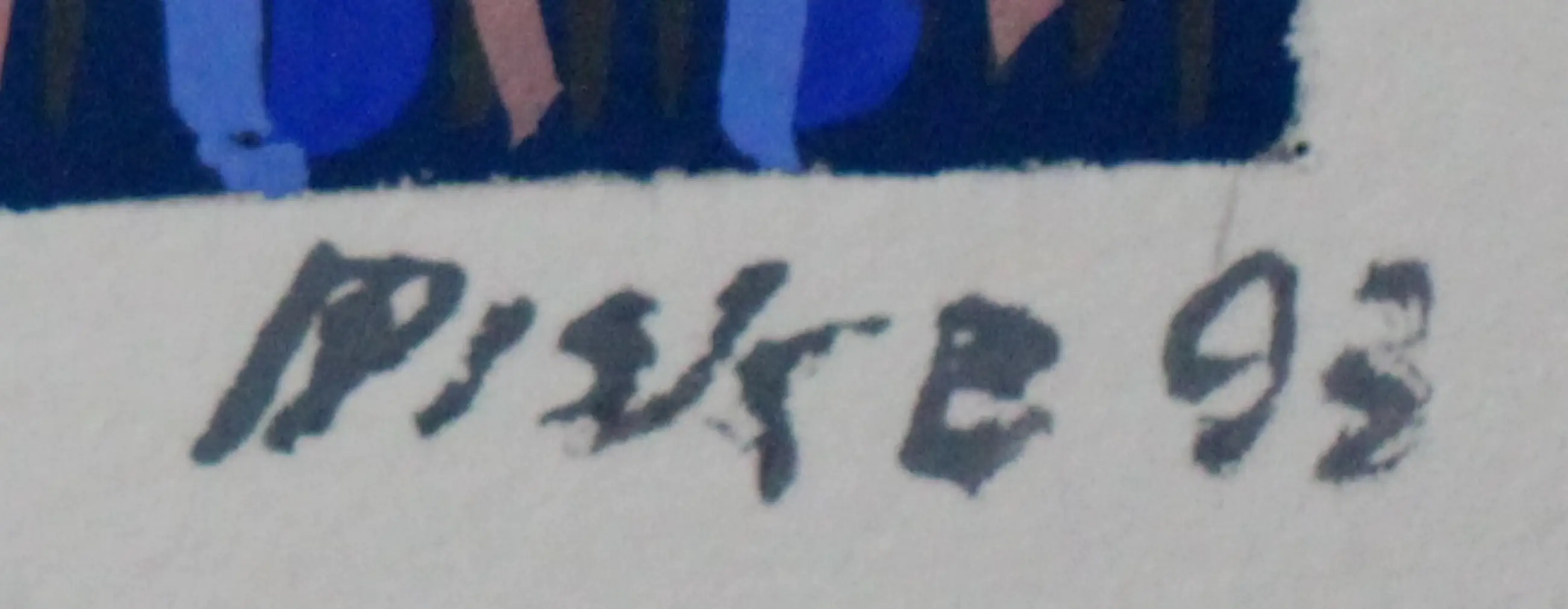 Acryl op papier van Jan Riske. Jaar: 1993 Afmetingen blad: H46 x b57.5cm. Afmetingen voorstelling: H32.5 x b32.5cm. Het werk is rechts onderaan gesigneerd door de kunstenaar. De authenticiteit van het aangeboden werk wordt volledig gegarandeerd. Een certificaat van echtheid kan, op aanvraag, worden gemaild.