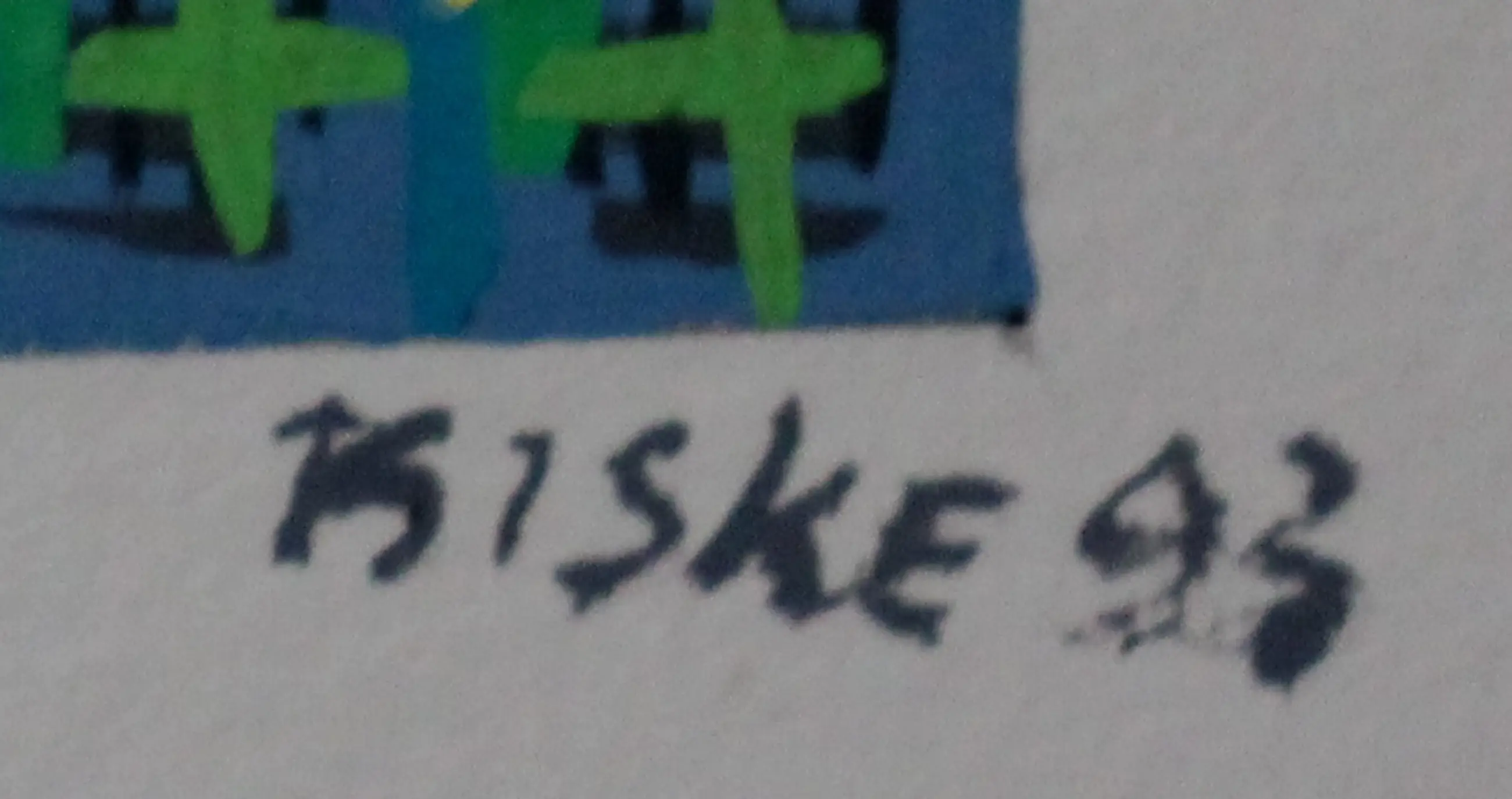 Acryl op papier van Jan Riske. Jaar: 1993 Afmetingen blad: H49 x b57cm. Afmetingen voorstelling: H32.5 x b32.5cm. Het werk is rechts onderaan gesigneerd door de kunstenaar. De authenticiteit van het aangeboden werk wordt volledig gegarandeerd. Een certificaat van echtheid kan, op aanvraag, worden gemaild.