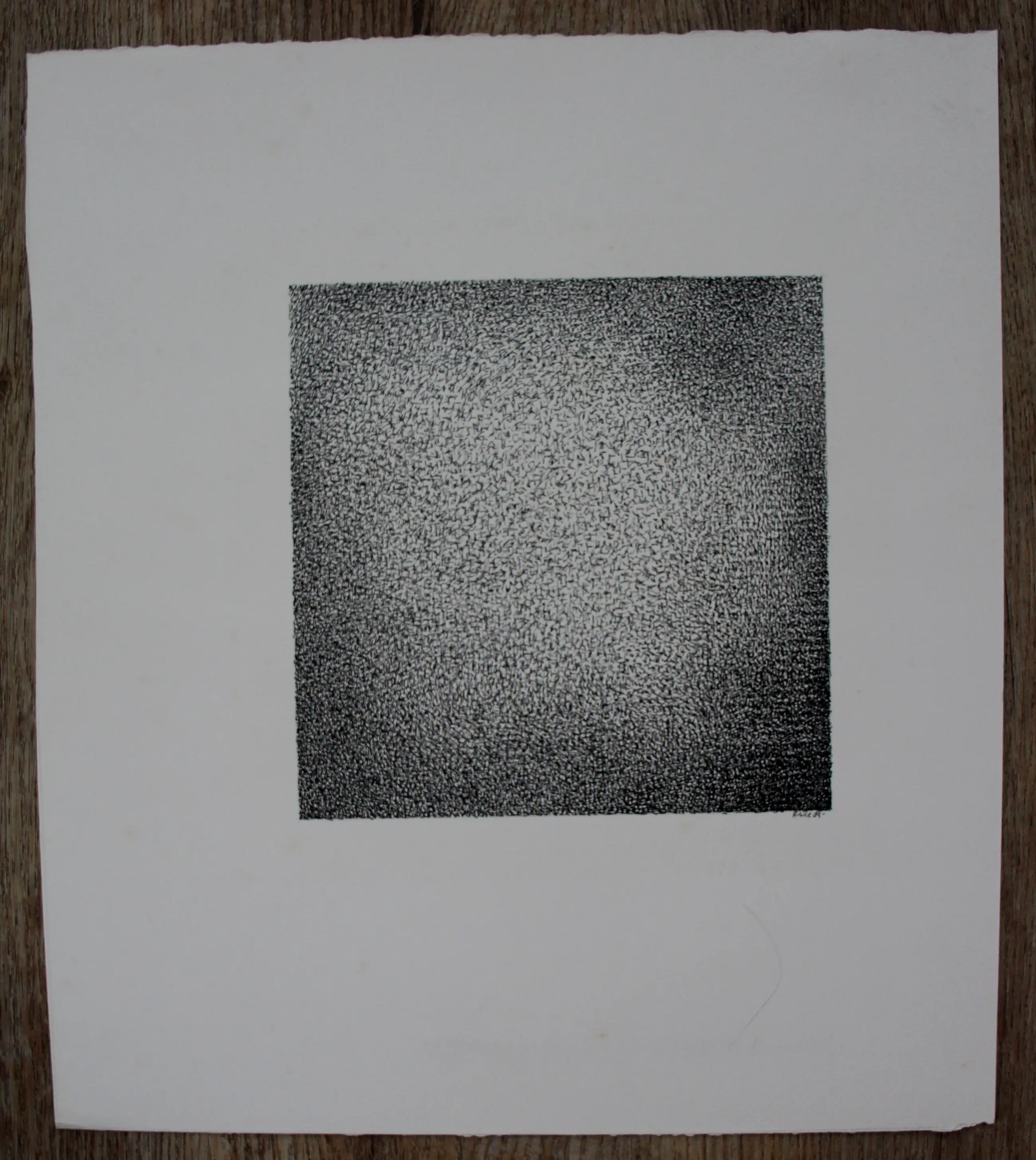 Pentekening van Jan Riske. Jaar: 1989. Afmetingen blad: H42.5 x b37cm. Afmetingen voorstelling: H20.5 x b20cm. Het werk is rechts onderaan gesigneerd door de kunstenaar. De authenticiteit van het aangeboden werk wordt volledig gegarandeerd. Een certificaat van echtheid kan, op aanvraag, worden gemaild.