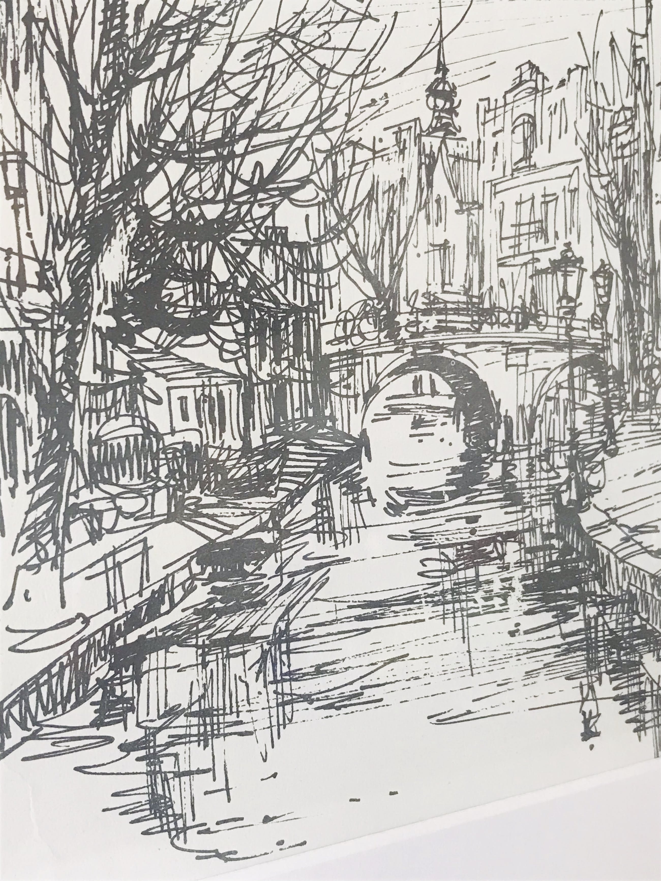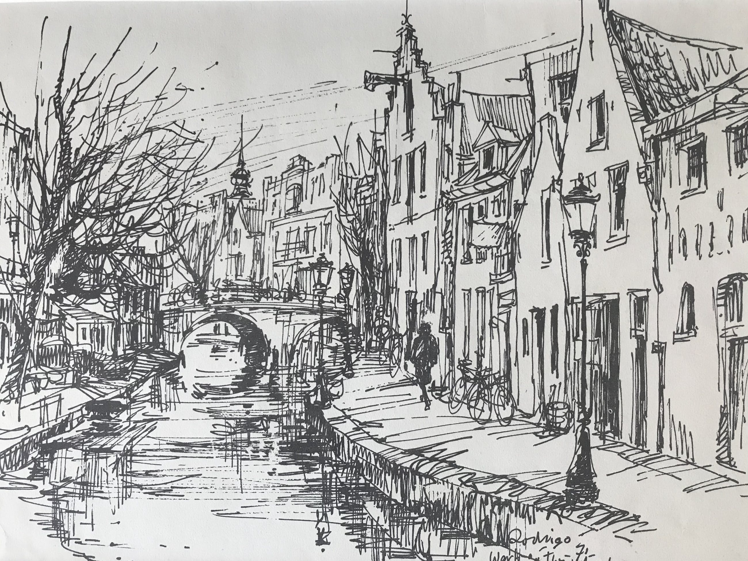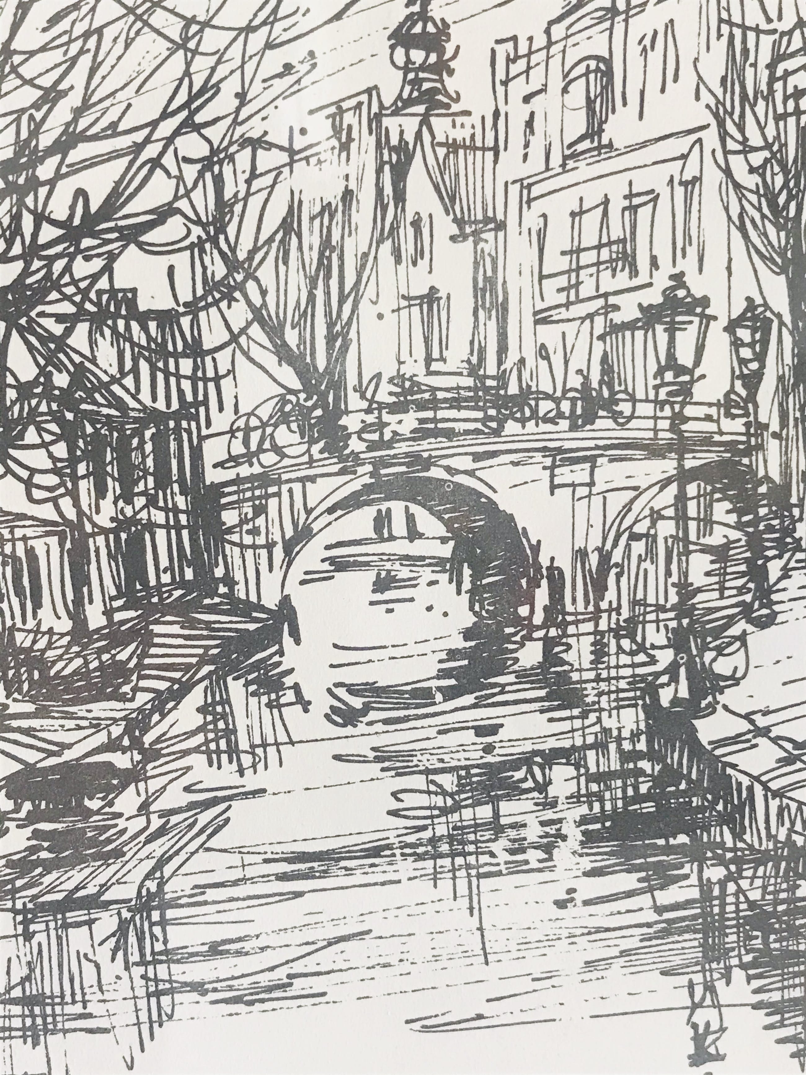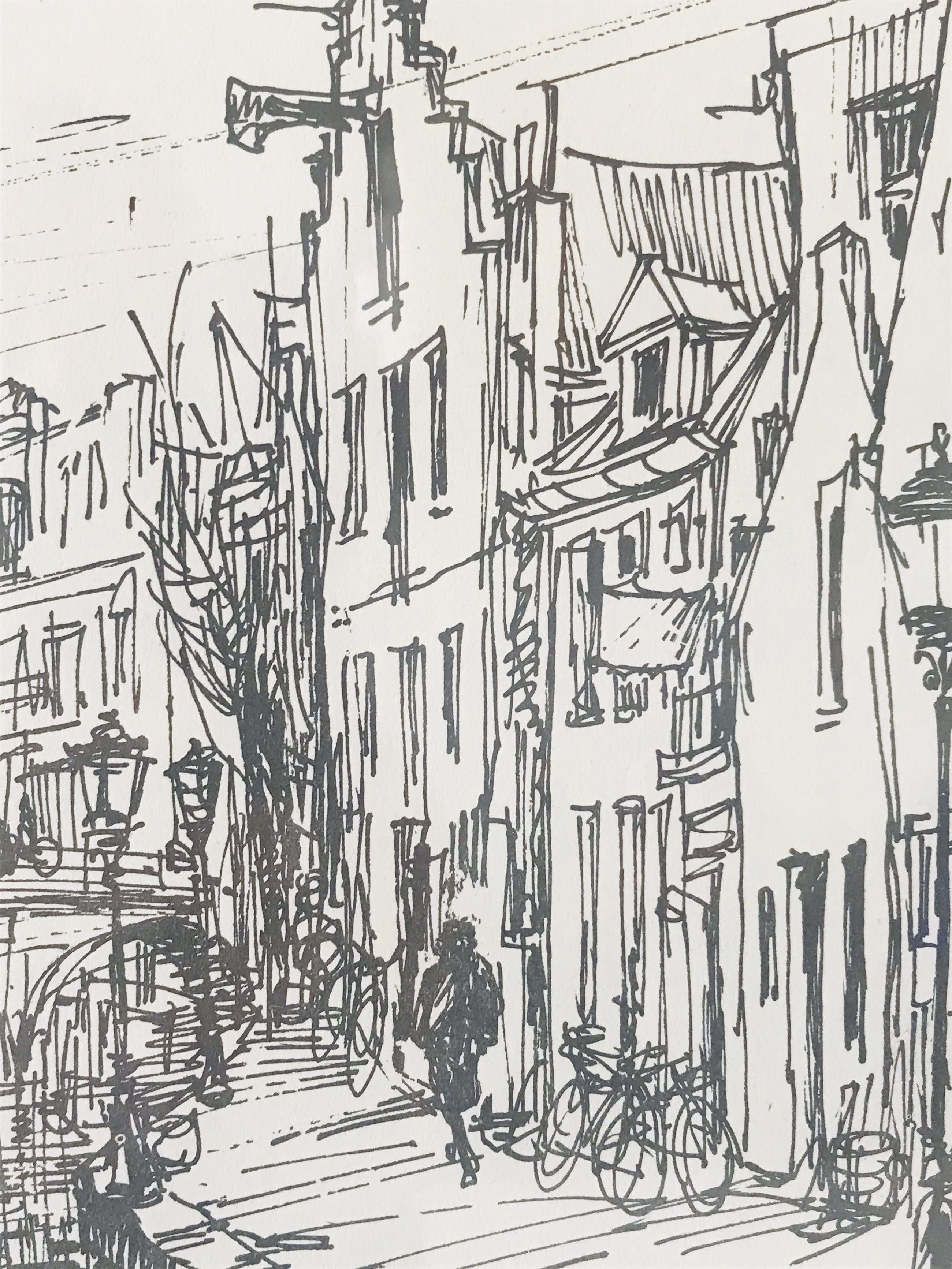 Prachtig tijdsbeeld van Utrecht in de jaren 70, getekend door de Utrechtse kunstenaar Jan Rodrigo.