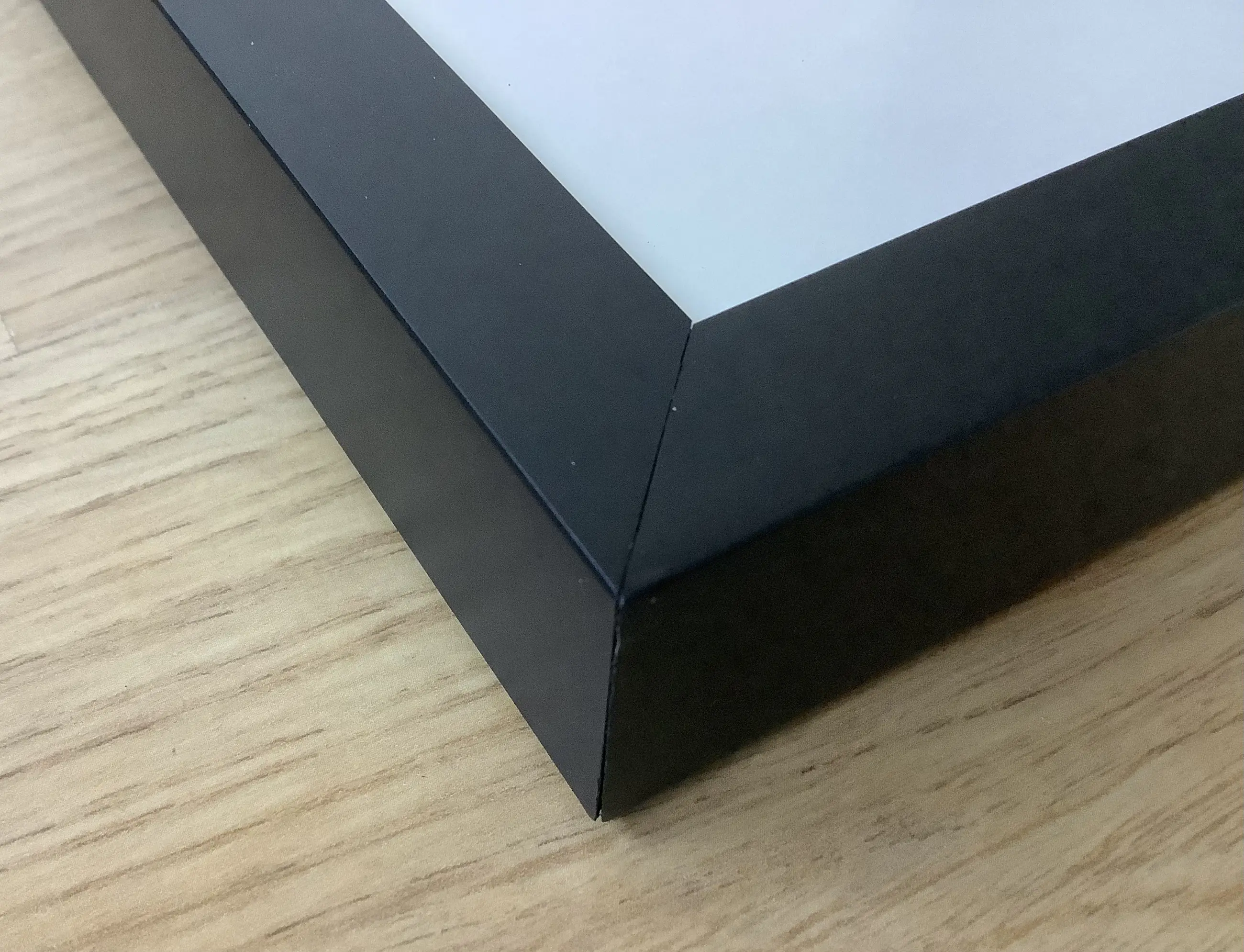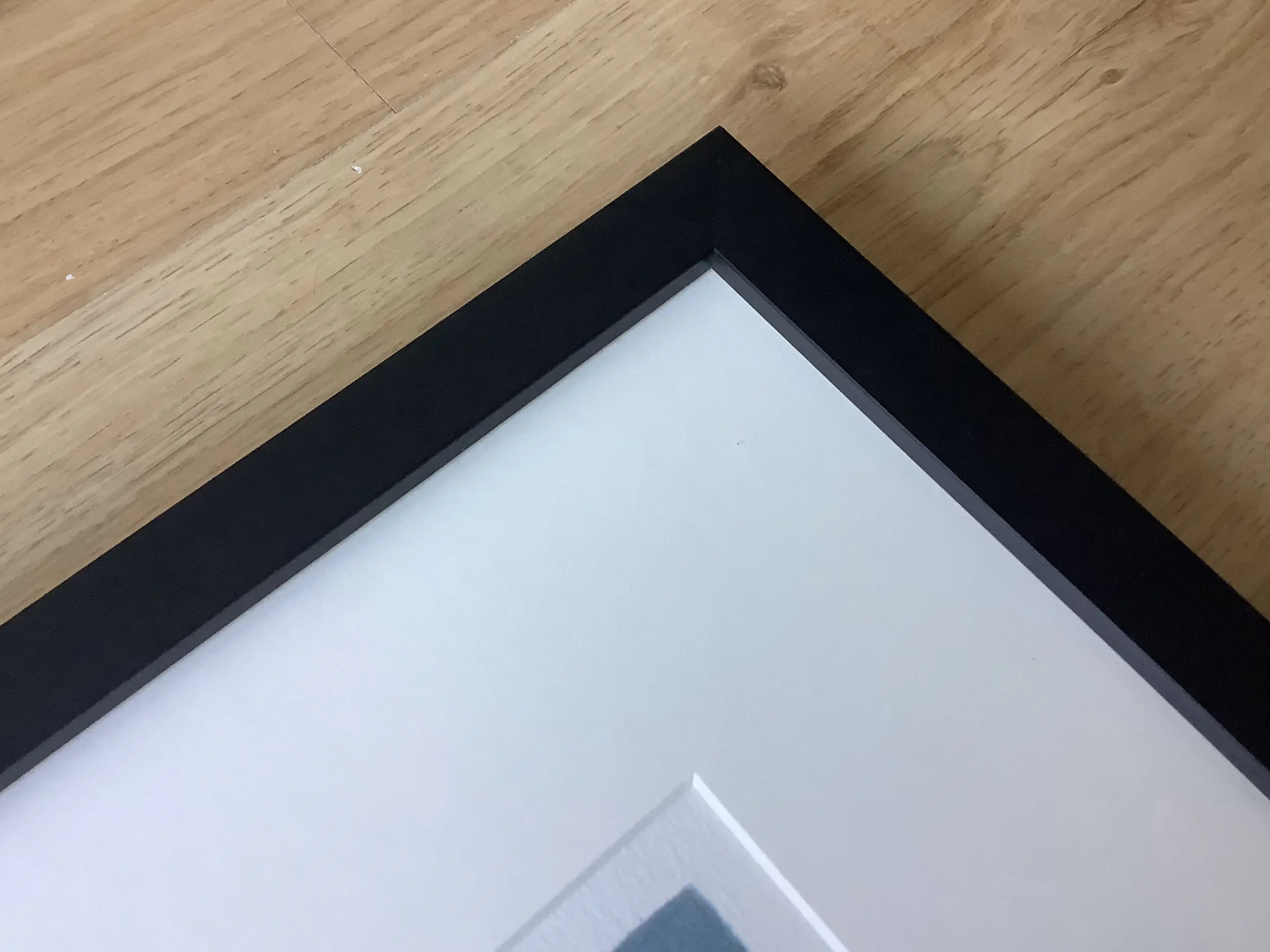 Betreft zwart houten lijst, 2 cm breed, 3 cm hoog. In uitstekende staat achter ontspiegeld glas.