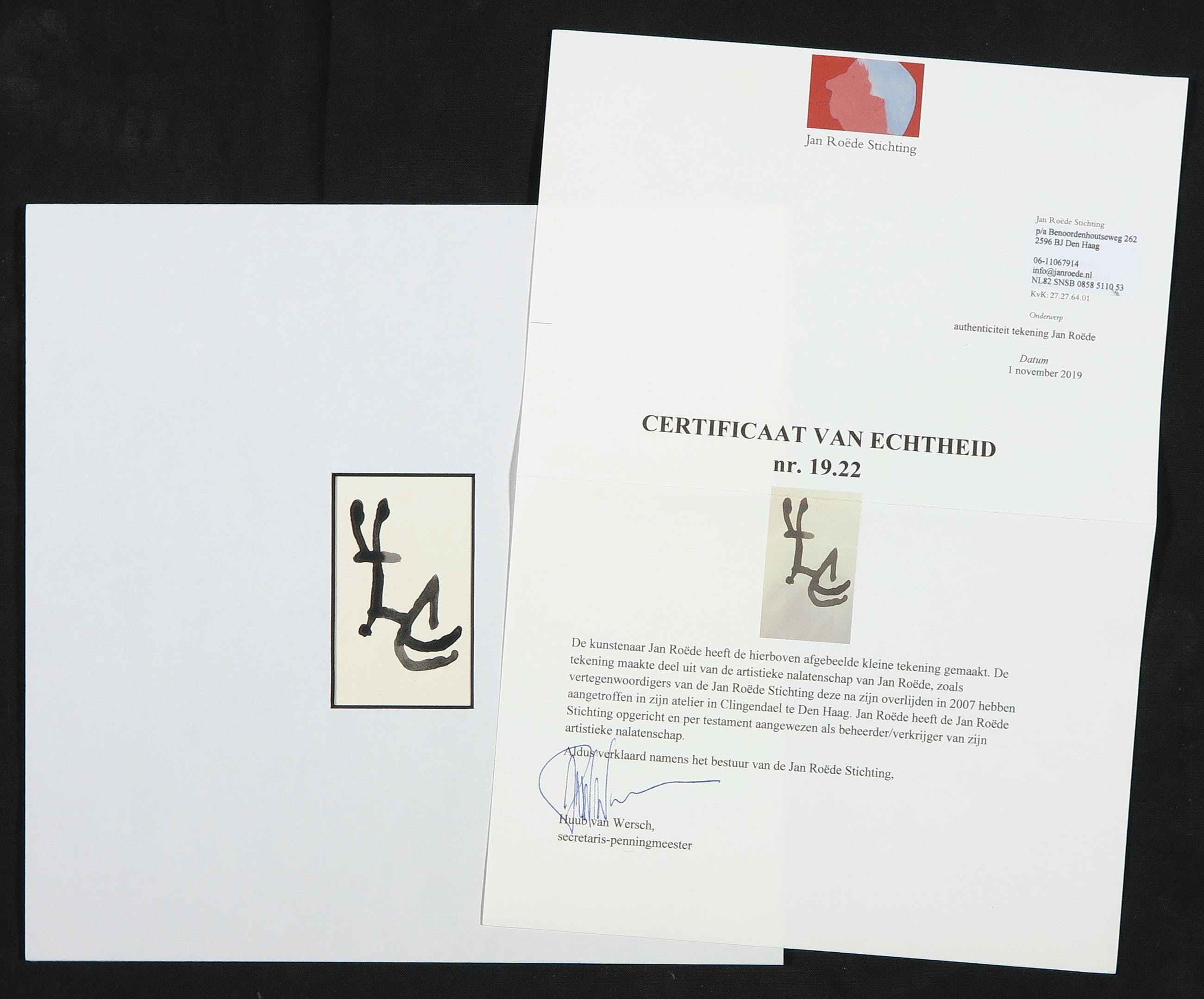 Het werk is ongesigneerd, maar voorzien van een certificaat van echtheid, uitgegeven door de Jan Roëde Stichting.