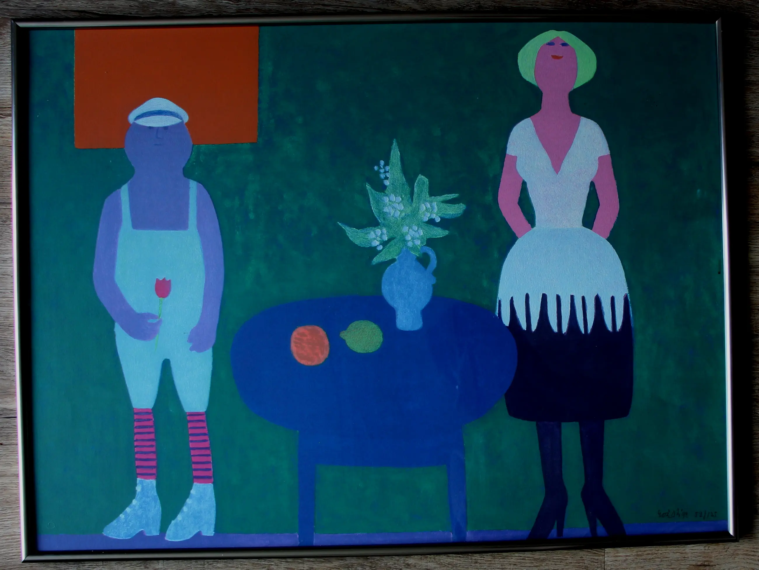 Ingelijste litho van Jan Roëde. Voorstelling van twee figuren in een woonkamer. Oplage: 52/125. Afmetingen incl lijst: H61 x b81cm. Afmetingen voorstelling: H59 x b79cm. Het werk is rechts onderaan, gesigneerd, door de kunstenaar. De authenticiteit van het aangeboden werk wordt volledig gegarandeerd. Een certificaat van echtheid kan, op aanvraag worden gemaild.