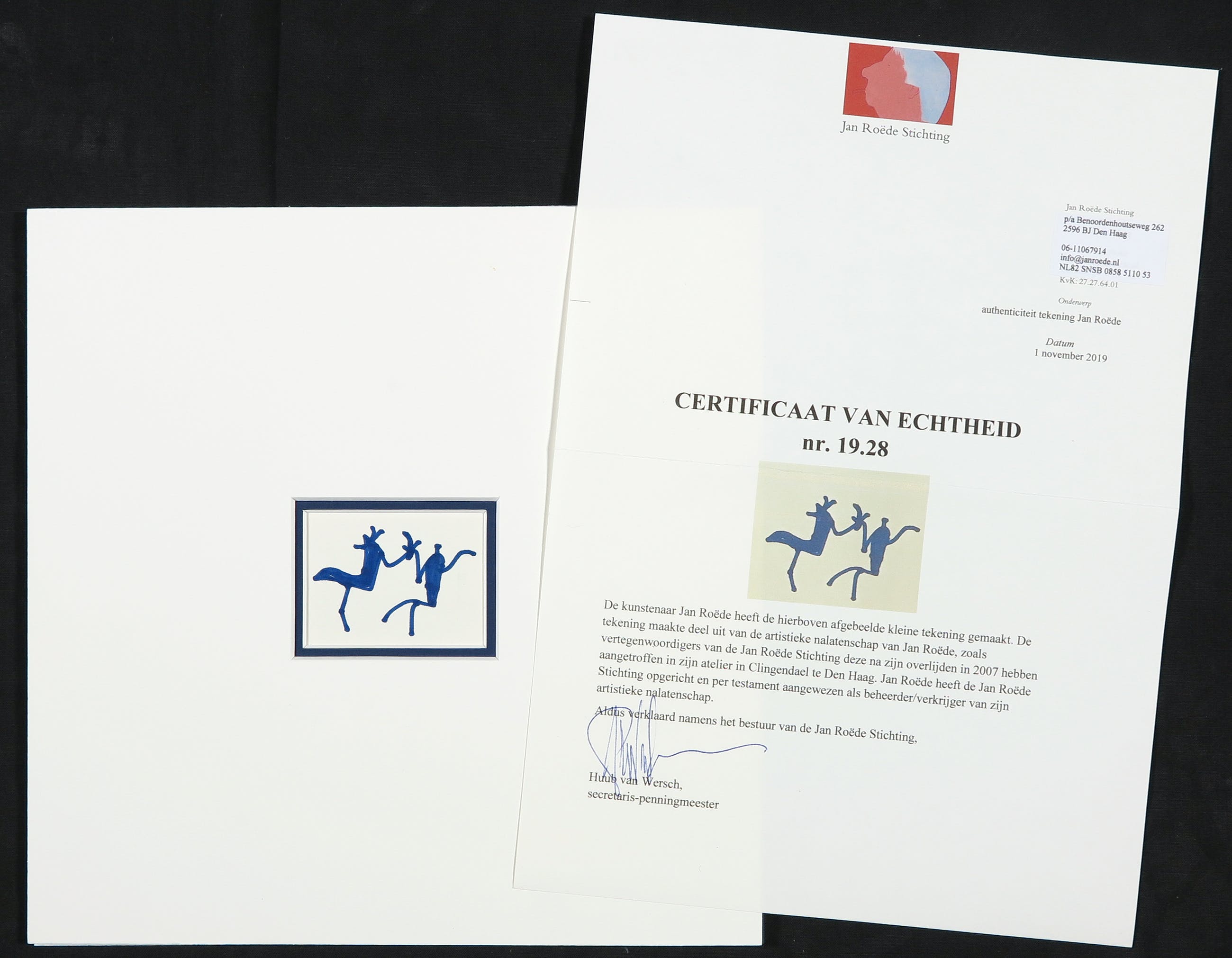 Het werk is ongesigneerd, maar voorzien van een certificaat van echtheid, uitgegeven door de Jan Roëde Stichting.