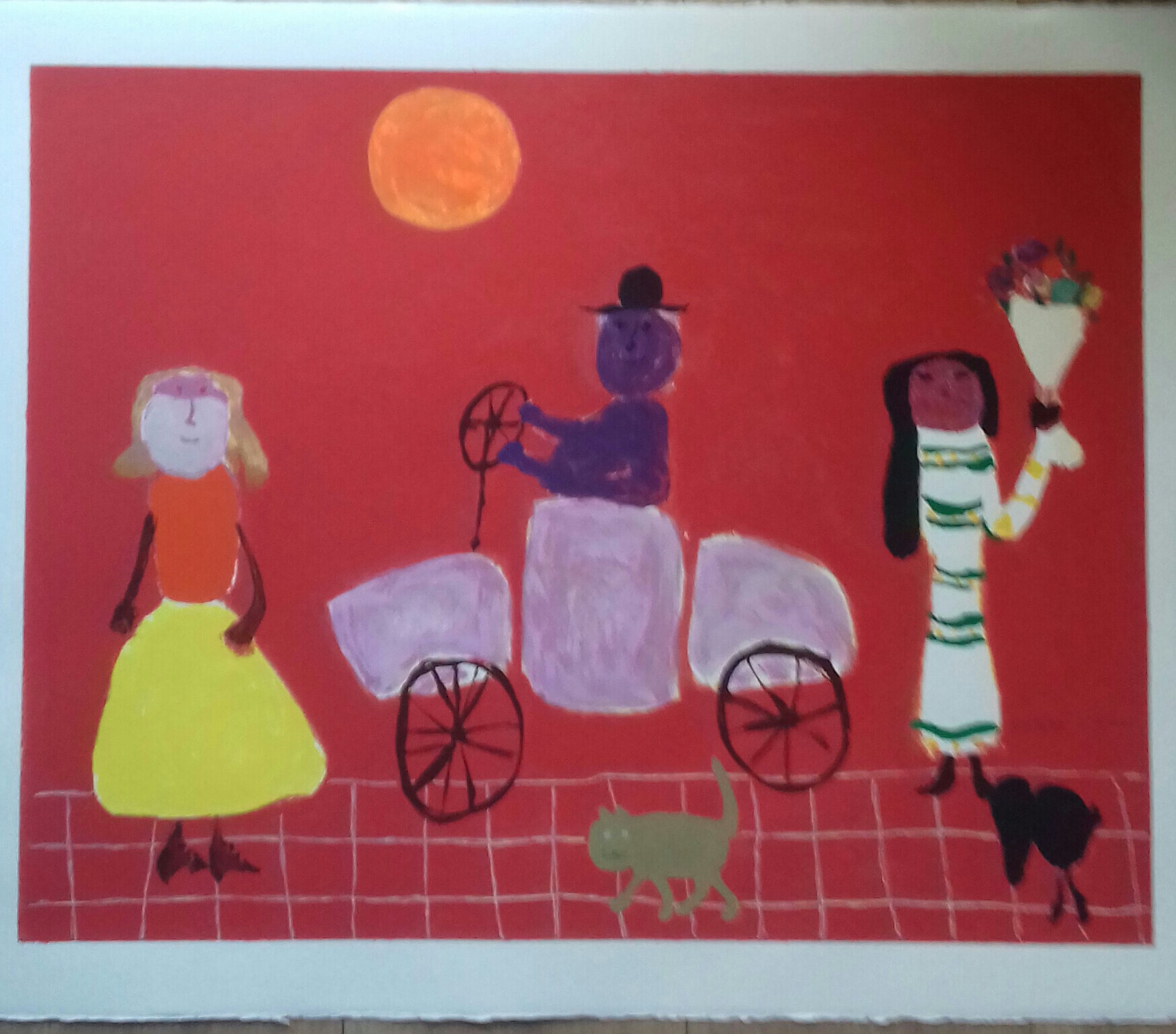 Fraaie en karakteristieke zeefdruk van Jan Roede uit 1994 op prachtig geschept Arches -papier.