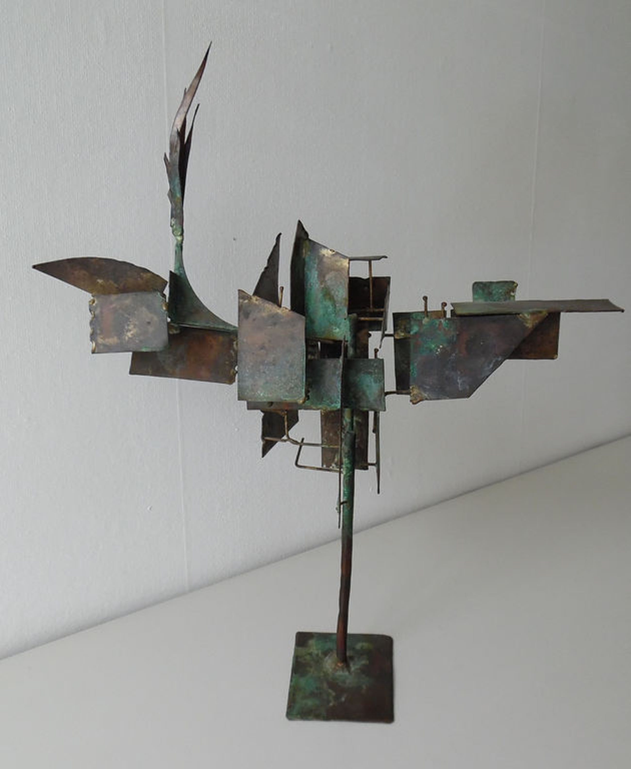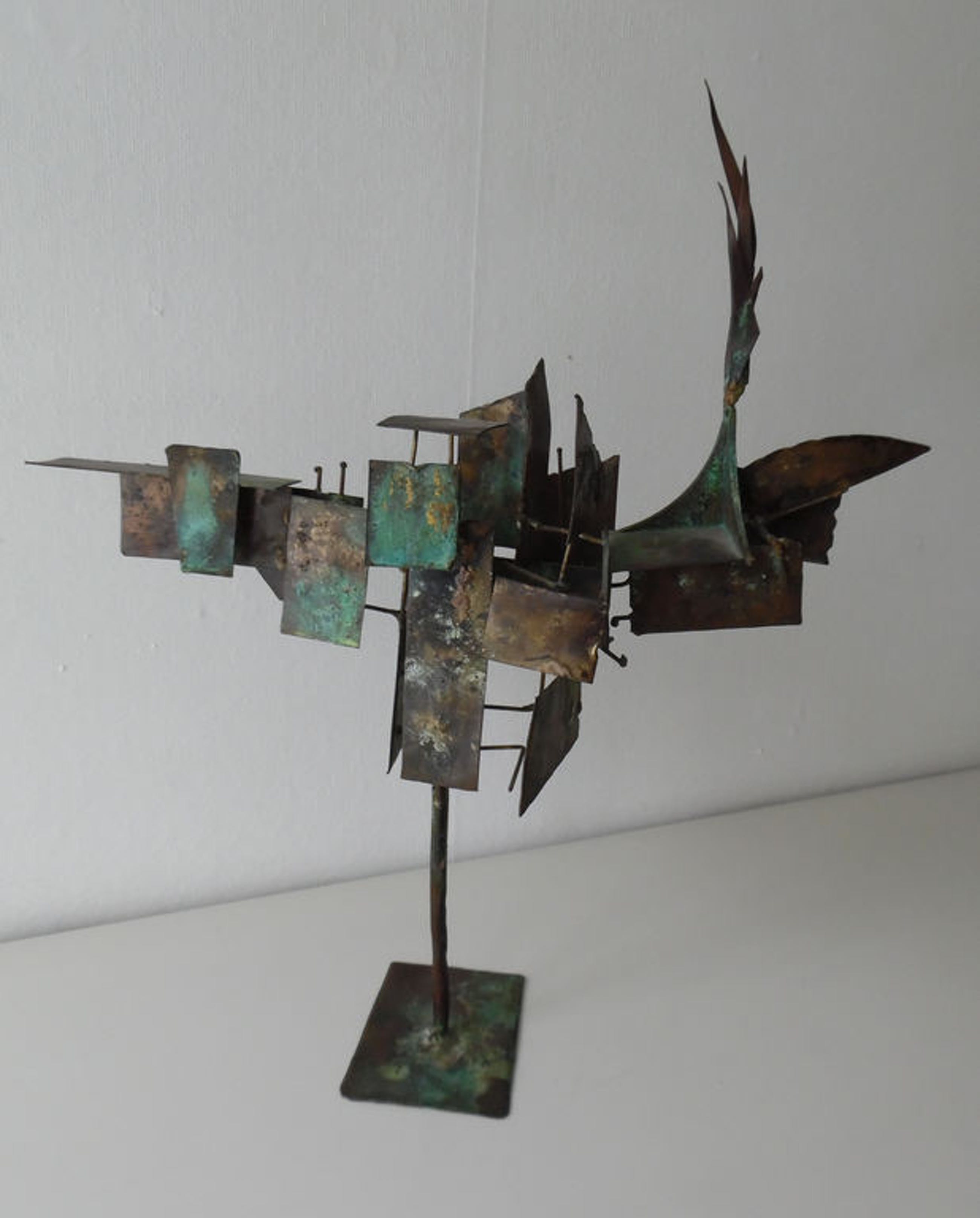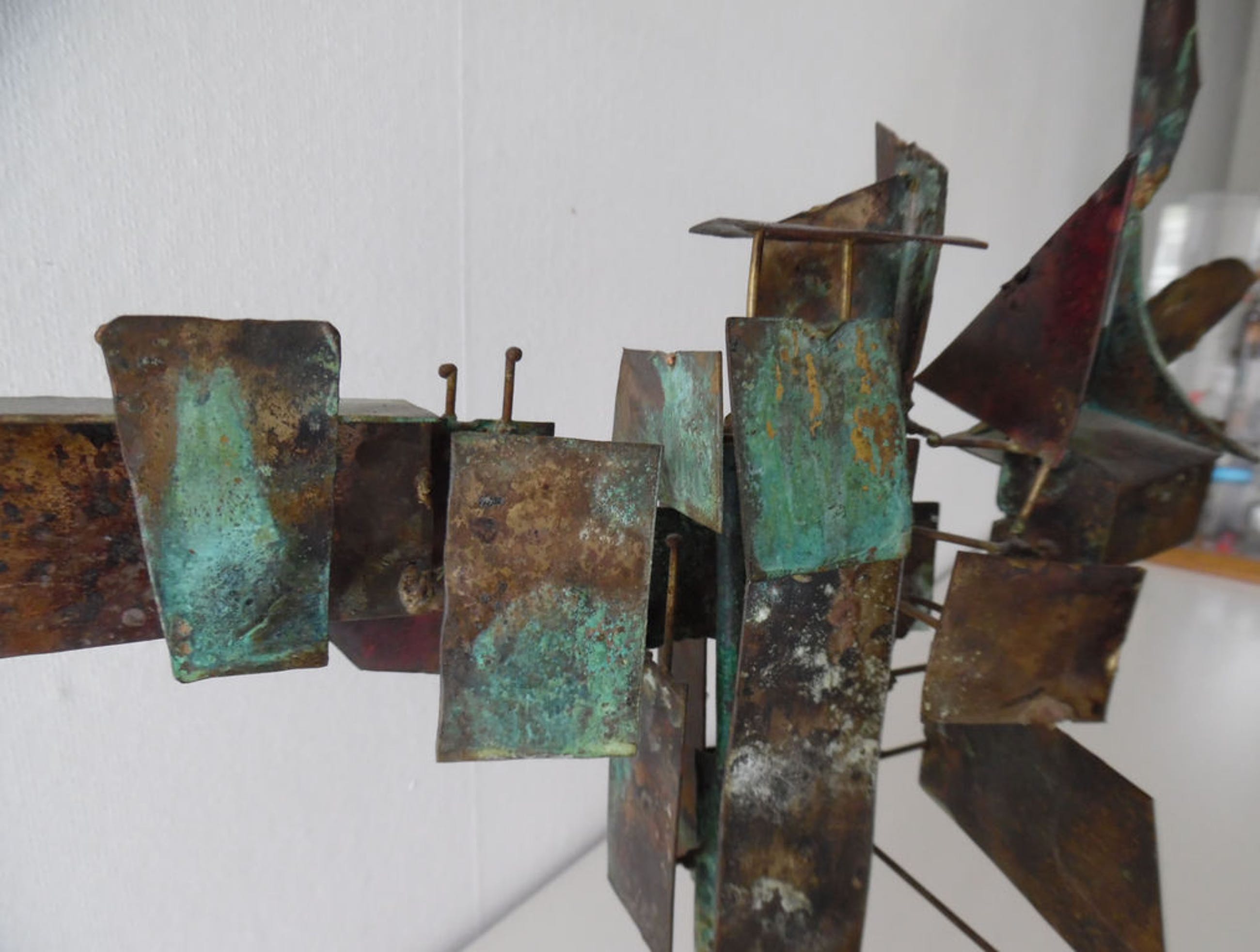 Het beeld is opgebouwd uit koperen plaatjes.