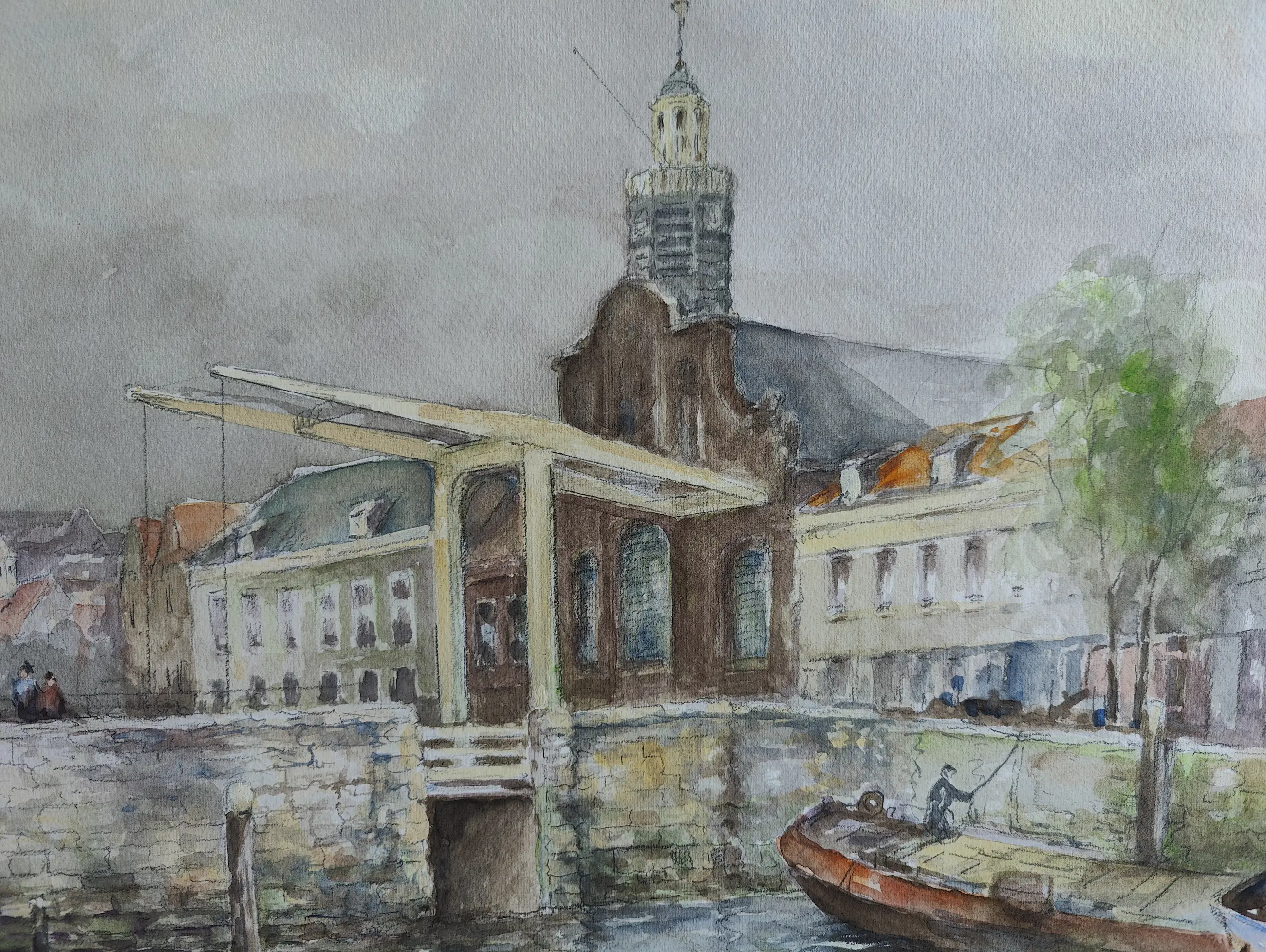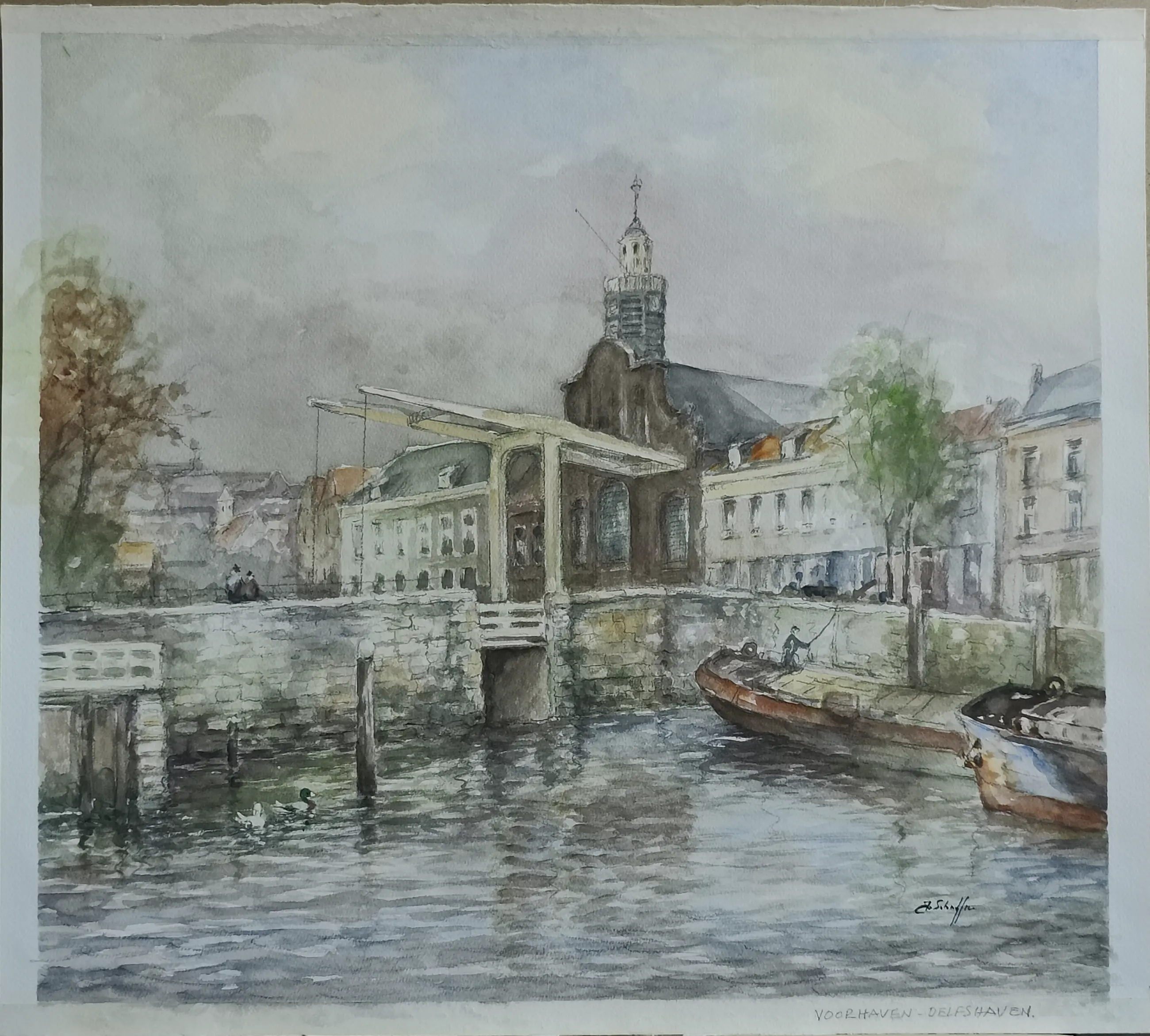 Mooi aquarel in nieuwstaat. Is getekend door de bekende Rotterdamse schilder, Jan Schaeffer. Jan Schaeffer was een veelzijdige kunstenaar die vooral bekend was om zijn Rotterdamse havens, landschappen, riviergezichten, stadsgezichten en stillevens. Op hoge leeftijd zat hij nog dagelijks achter zijn schildersezel. Behalve schilderijen heeft hij ook veel aquarellen gemaakt. Dit werk komt uit de nalatenschap van de kunstenaar en is nooit op de markt geweest.