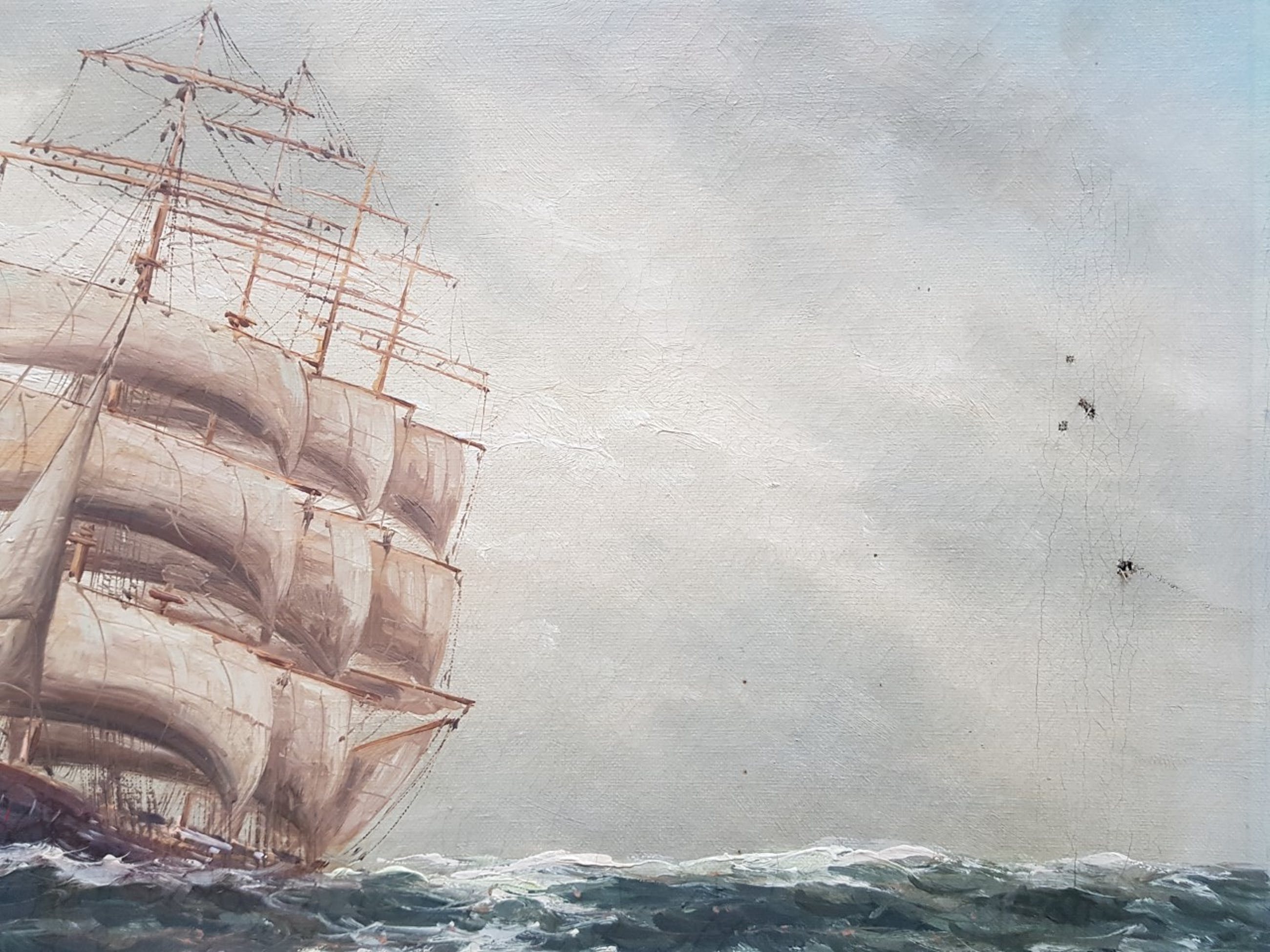 Paar kleine gaatjes in doek en craquelé.