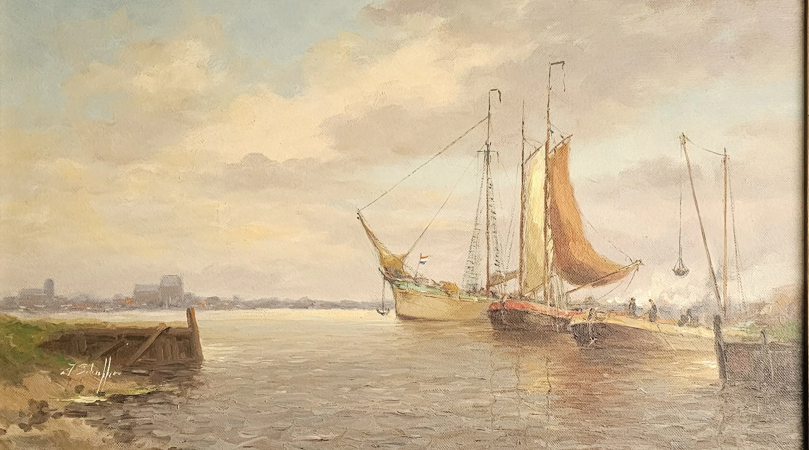 Jan Schaeffer (Rotterdam 1923-2018) was een veelzijdig kunstenaar. Hij was vooral bekend door zijn Rotterdamse havens, landschappen, riviergezichten, stadsgezichten en stillevens, later kwamen er ook tafereeltjes bij. Dit alles in een romantisch-figuratieve stijl, die doet denken aan de Haagse School.