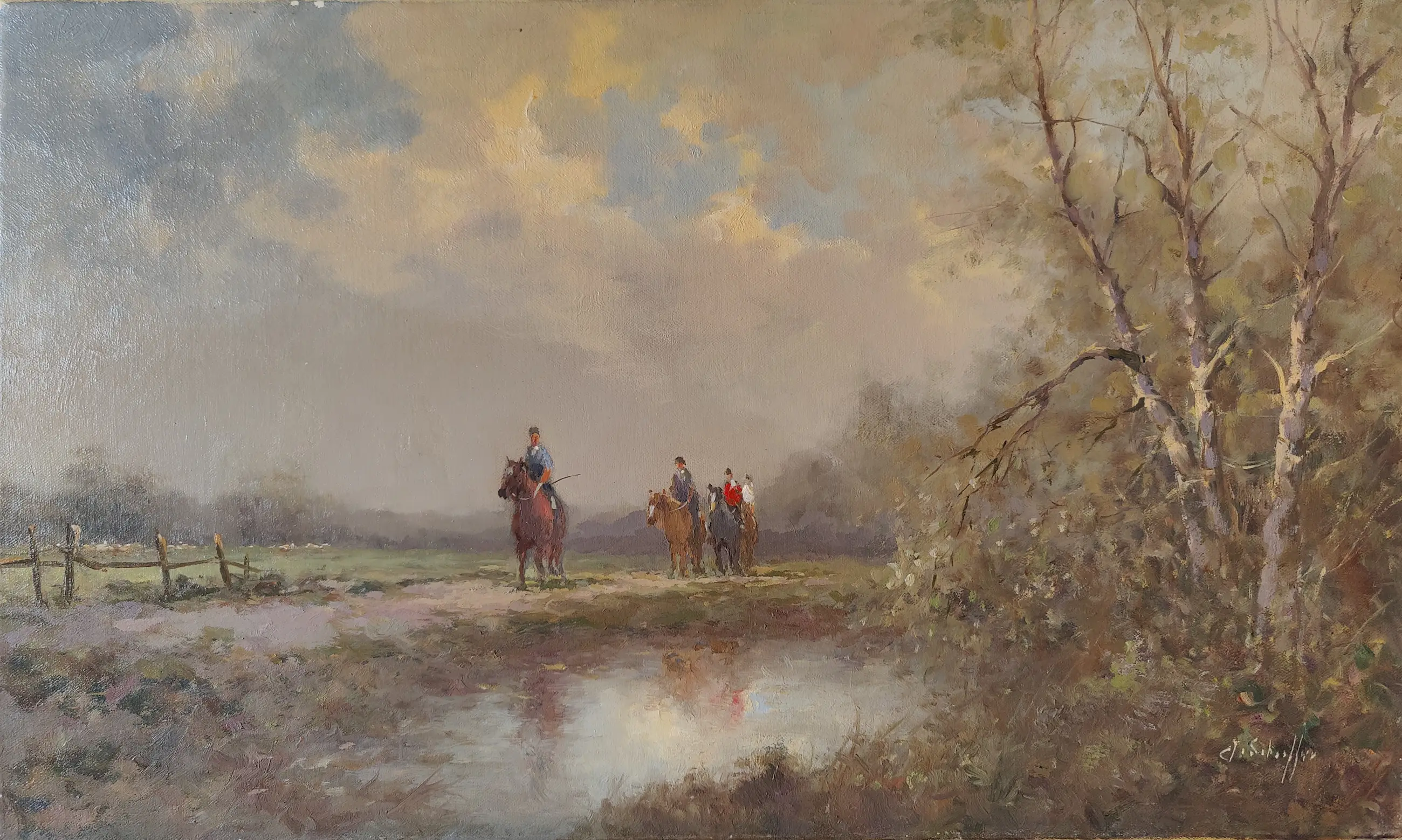 Mooi werk van Jan Schaeffer, die ook bekend stond om zijn mooie 'wolkenluchten'. Wordt goed verpakt geleverd.