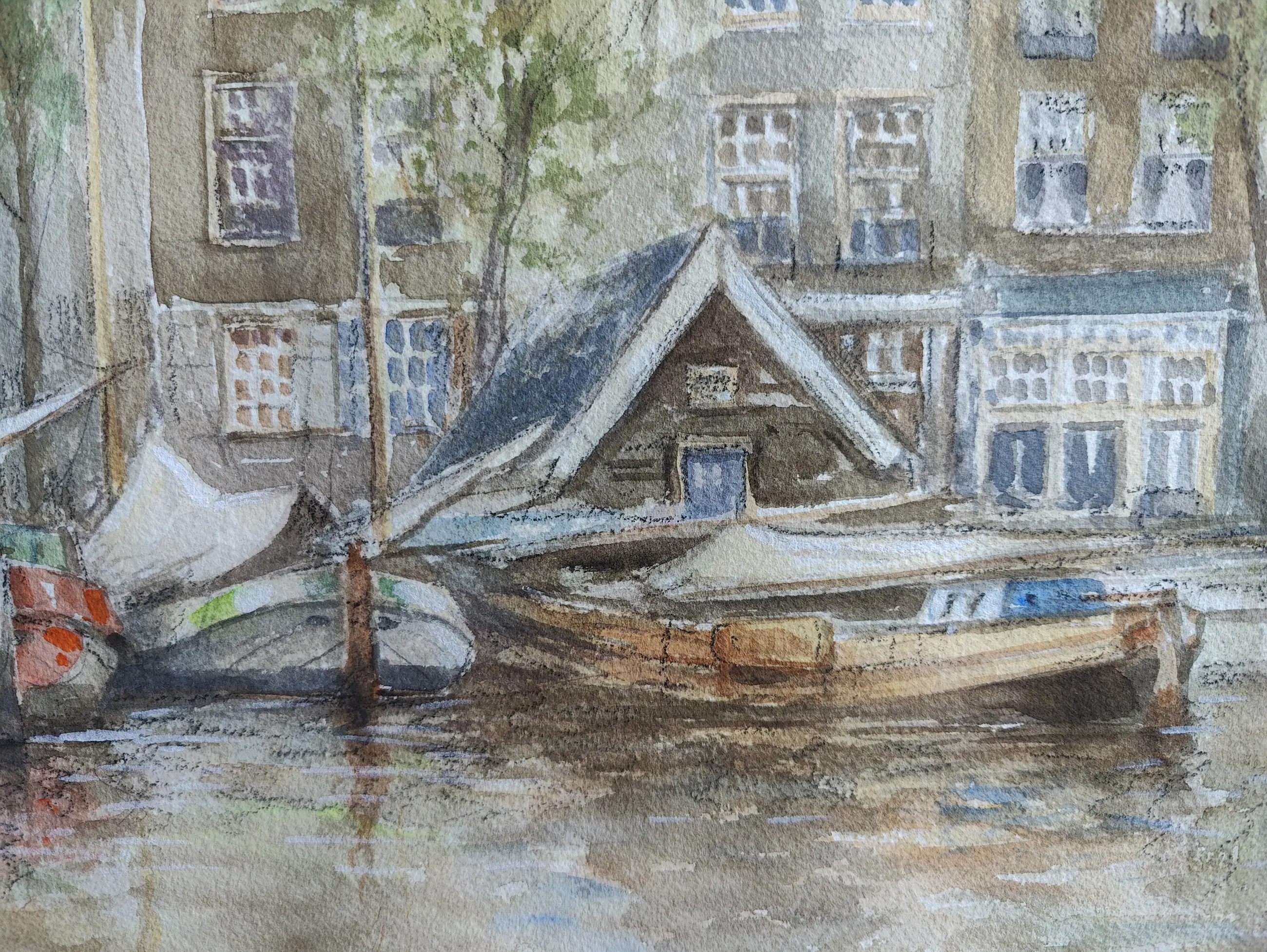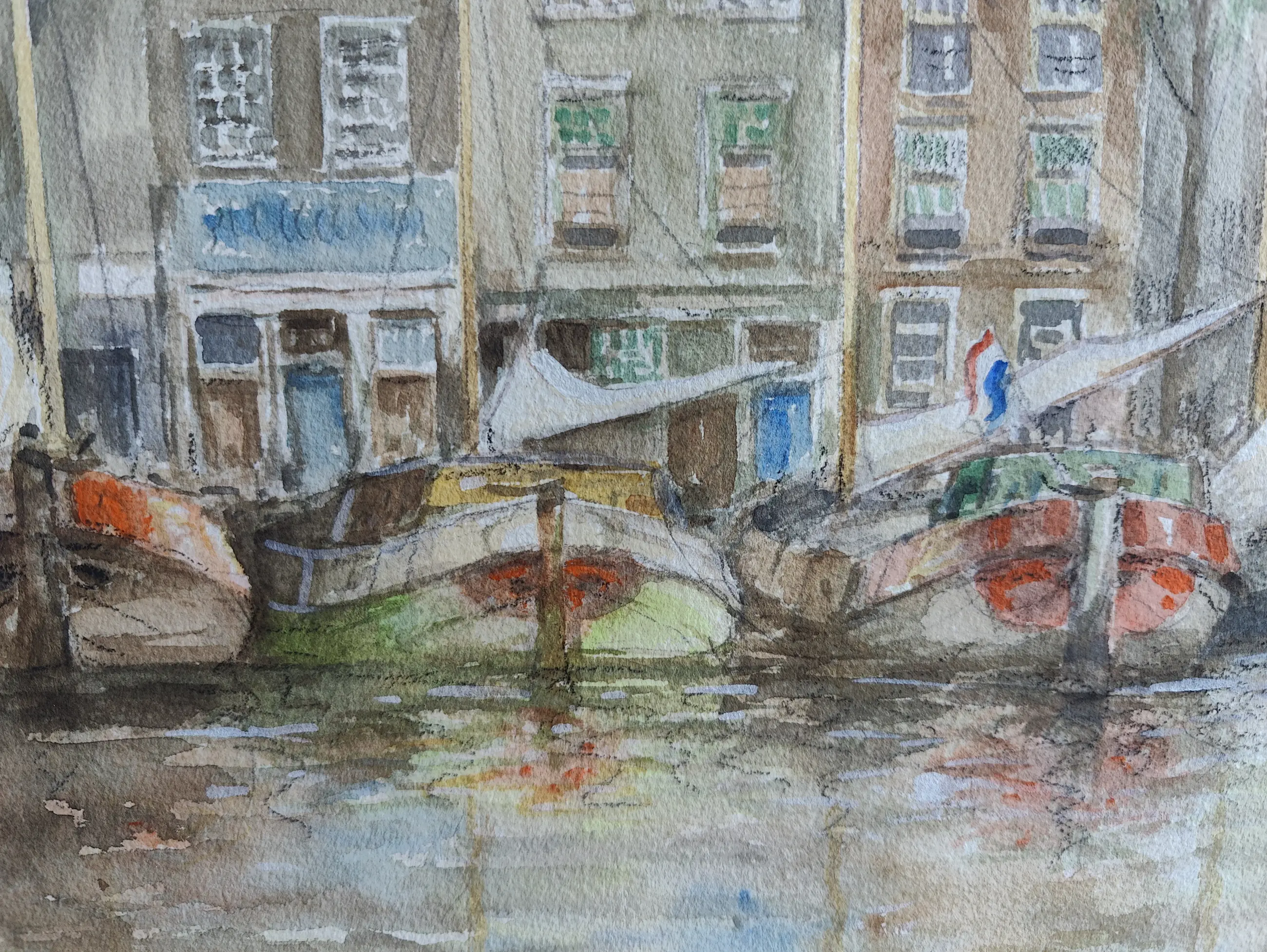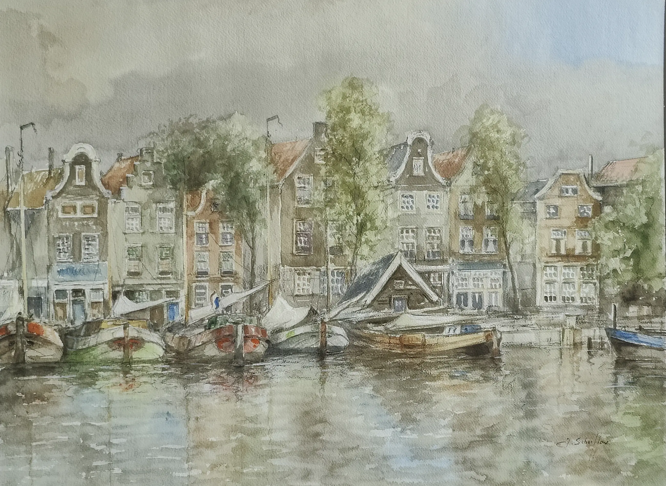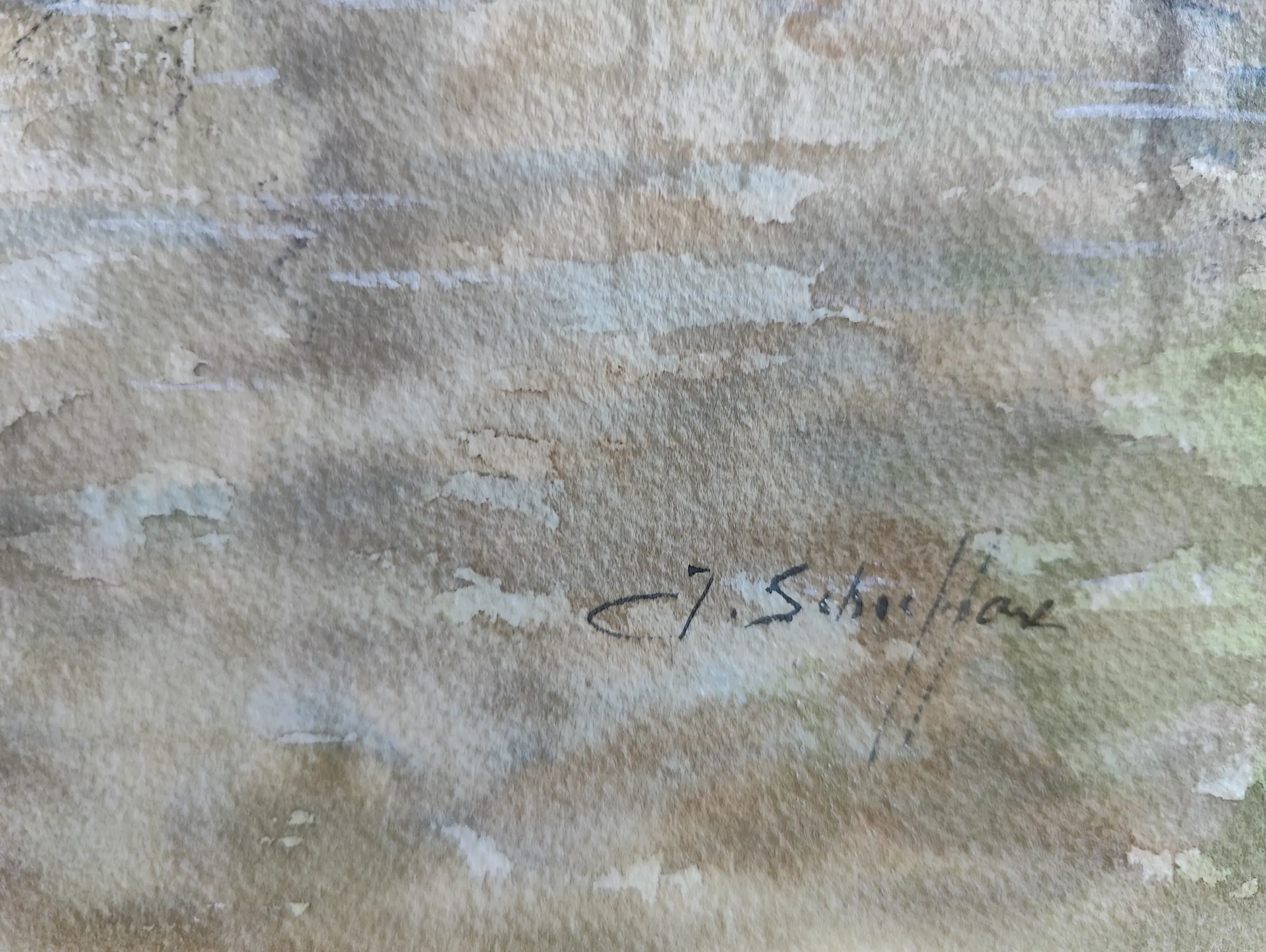 Mooi aquarel in nieuwstaat. Is getekend door de bekende Rotterdamse schilder, Jan Schaeffer. Jan Schaeffer was een veelzijdige kunstenaar die vooral bekend was om zijn Rotterdamse havens, landschappen, riviergezichten, stadsgezichten en stillevens. Op hoge leeftijd zat hij nog dagelijks achter zijn schildersezel. Behalve schilderijen heeft hij ook veel aquarellen gemaakt. Dit werk komt uit de nalatenschap van de kunstenaar en is nooit op de markt geweest.