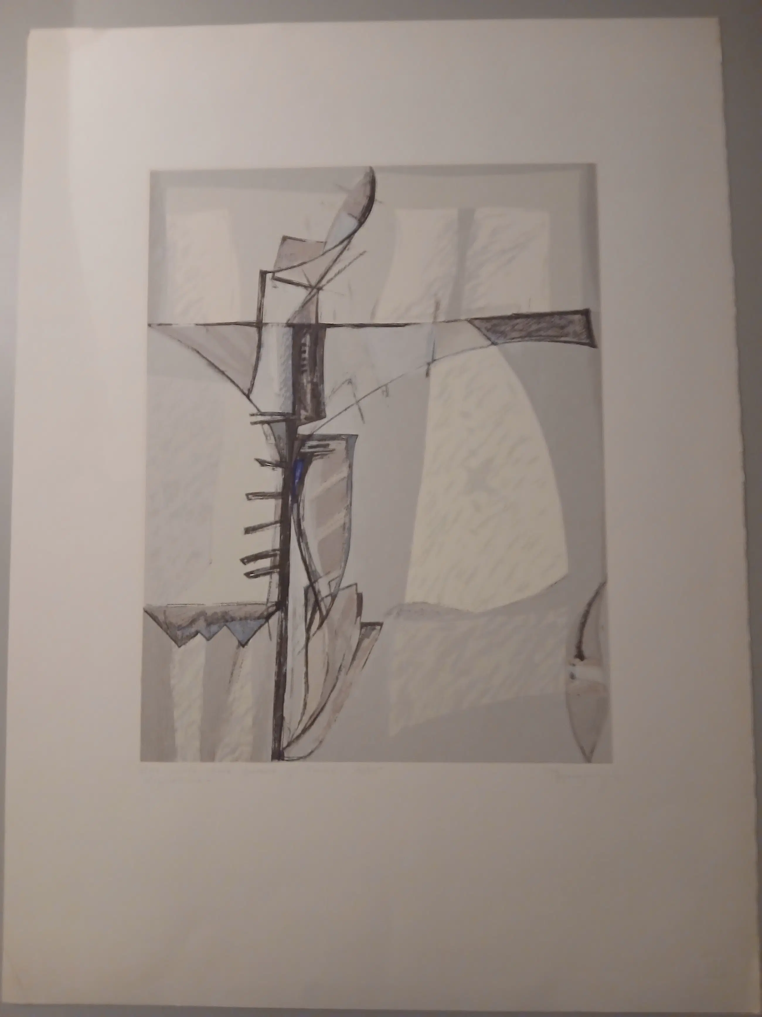Is een los blad: 76 x 56 cm beeld: 46 x 35 cm Jaar 1991 In de zeefdruk hanteert Jan Scheir een fragiele, archirecturale opgebouwde beeldtaal. De centrale verticale vorm functioneert als een kwetsbare structuur waar lijnen en transparante vlakken elkaar kruisen. De zachte grijstinten en onderbroken contouren versterken het gevoel van breekbaarheid en herinnering , vervat in de poëtische titel. In perfecte nieuwstaat.