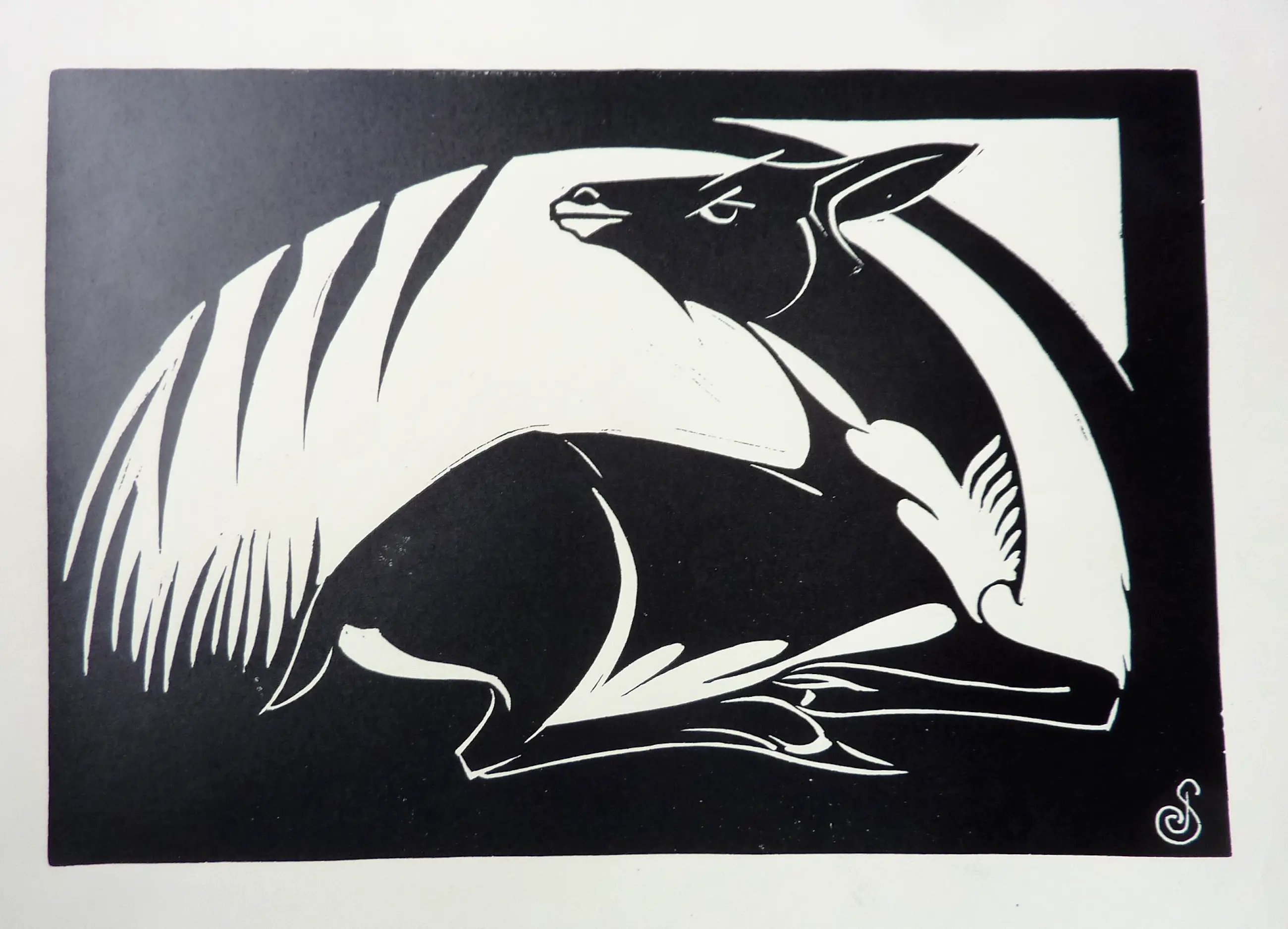 Jan Schonk - Houtsnede "Liggende Ree" 1927 - Verkocht