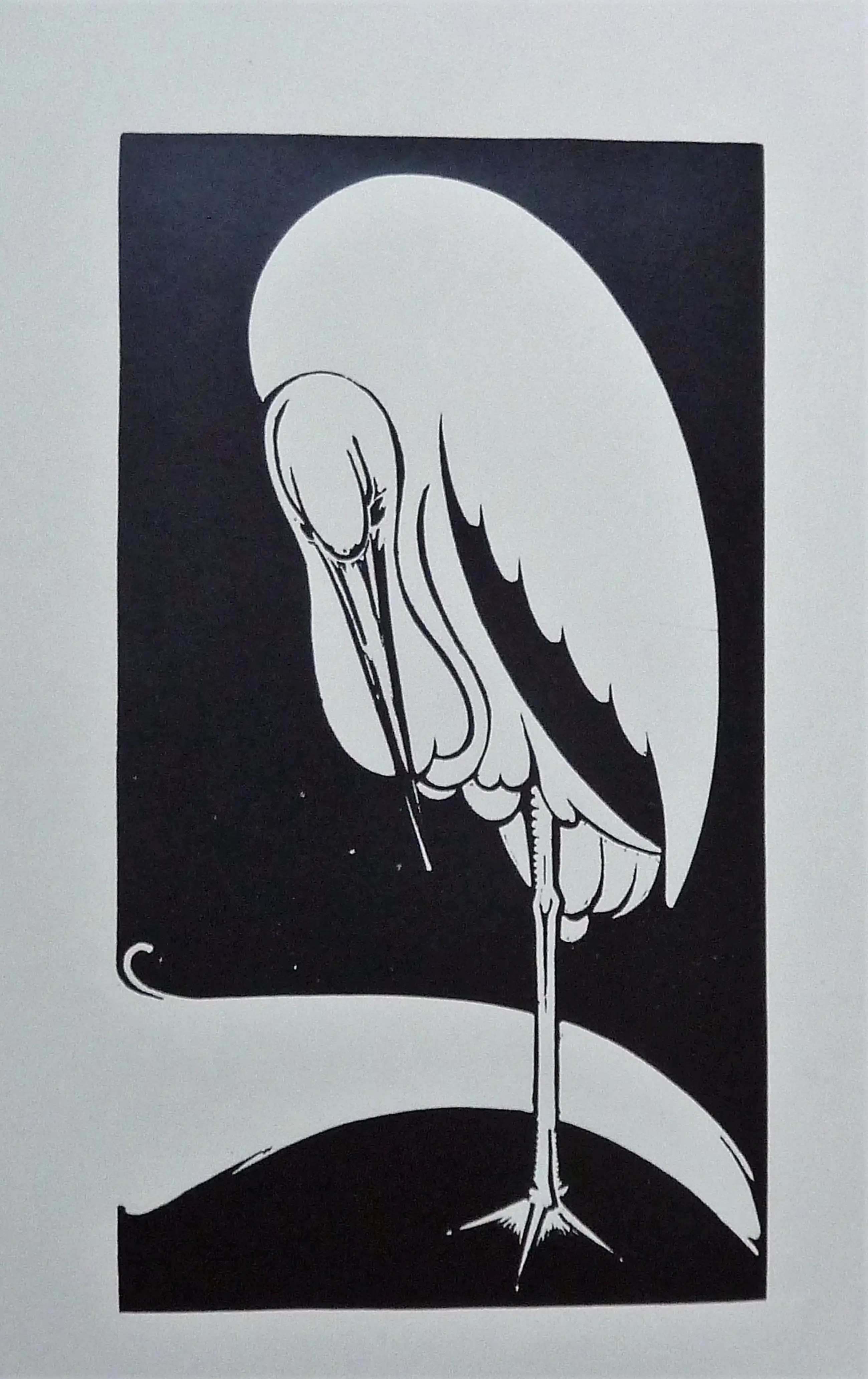 Houtsnede Ooievaar 1924; ontwerp & uitvoering Jan Schonk Los vel met ruime marge Afkomstig uit veiling 2002 erven Jan Schonk