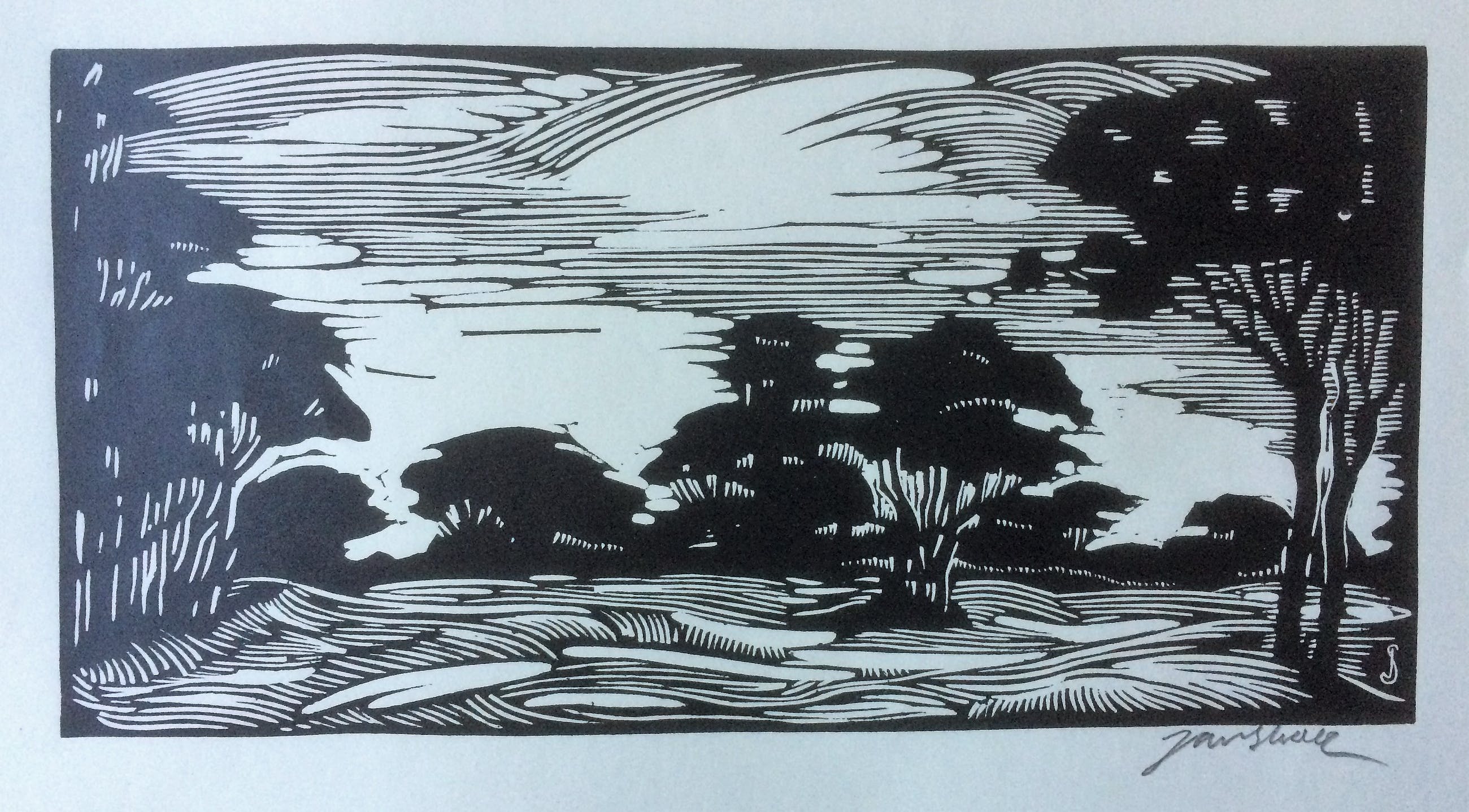 Houtsnede "Wolfheze" 1926, ontwerp & uitvoering Jan Schonk