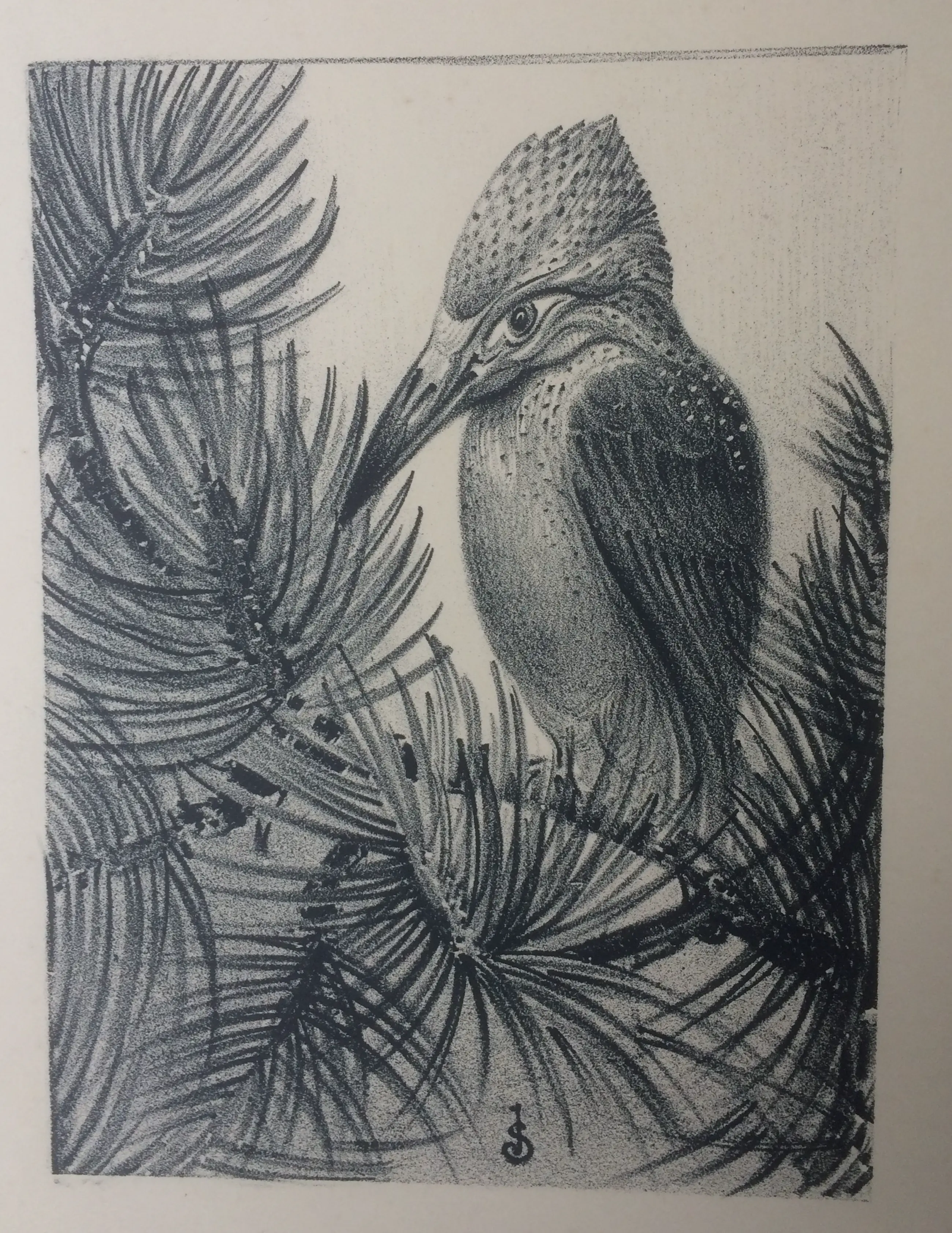 Litho "IJsvogel" 1929, ontwerp & uitvoering Jan Schonk Gesigneerd JS in blok. Los vel met ruime marge Afkomstig uit veiling 2002 erven Jan Schonk