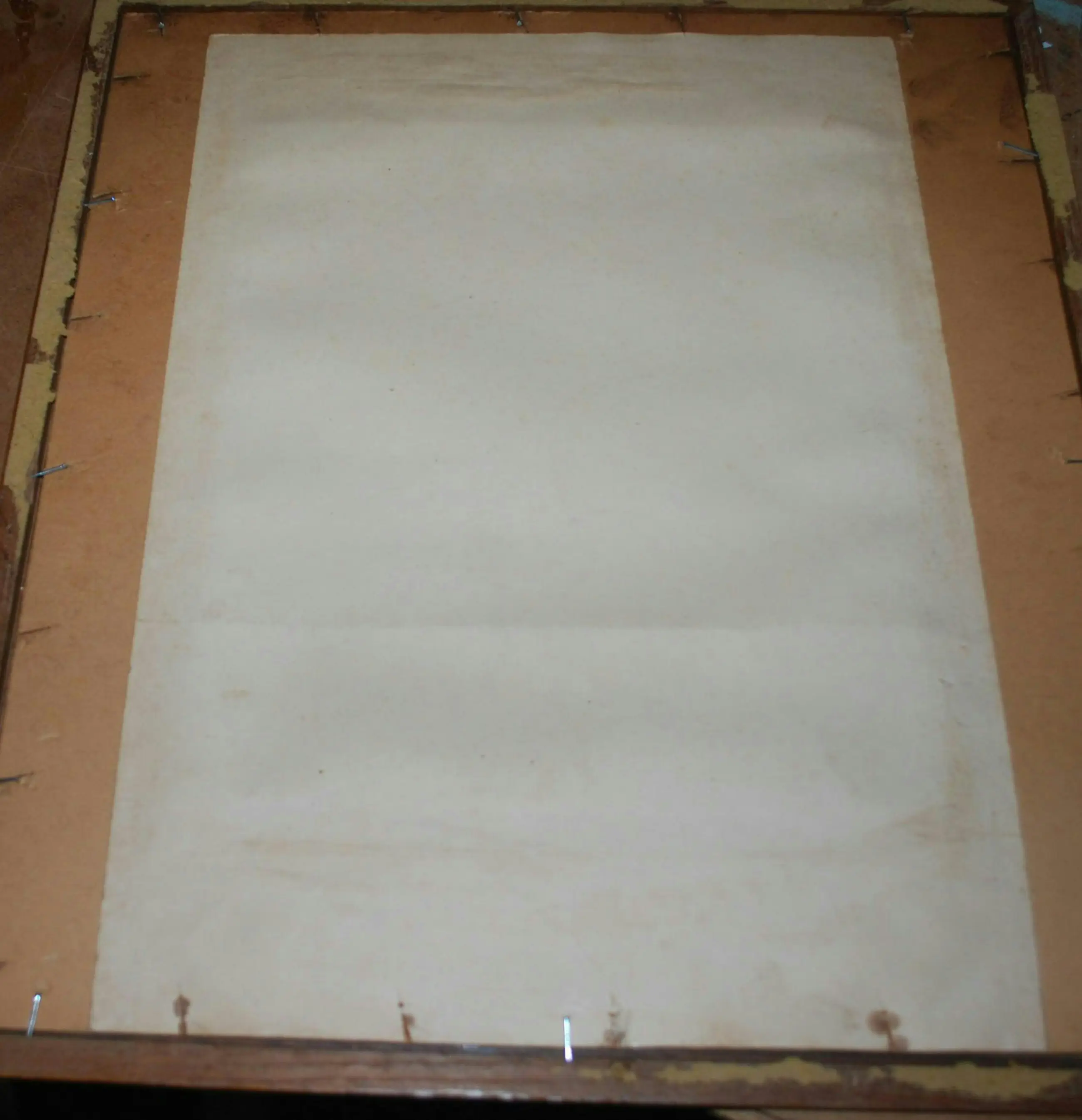 In goede gebruikte staat. Horizontale kreuk onderaan. De randen van het blad hebben wat schade (aan de achterkant te zien)