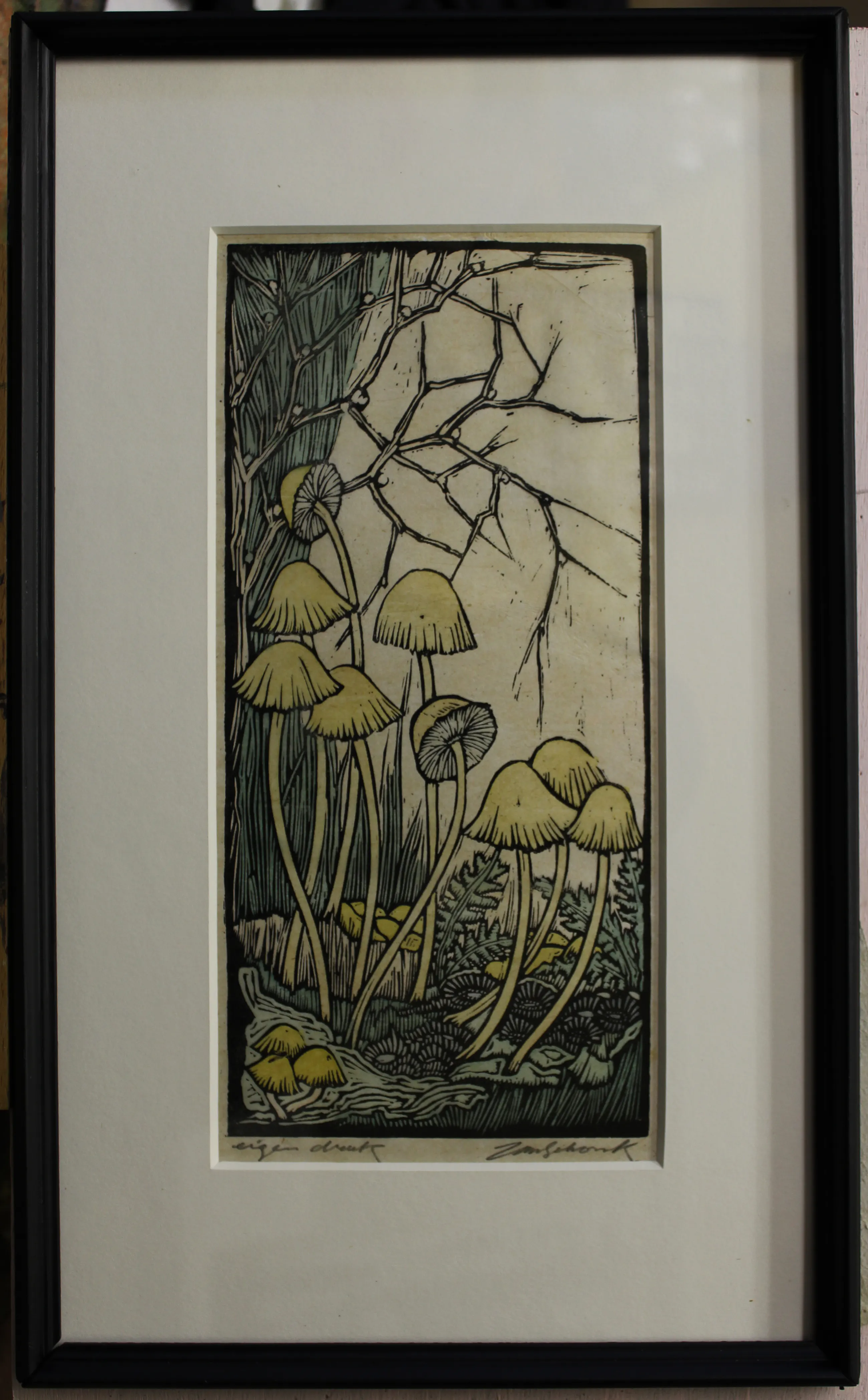 Prachtige ingekleurde houtsnede op rijstpapier. Handgekleurd. De prent is gerestaureerd (vergeling verwijderd) en opnieuw ingelijst met zuurvrije materialen.