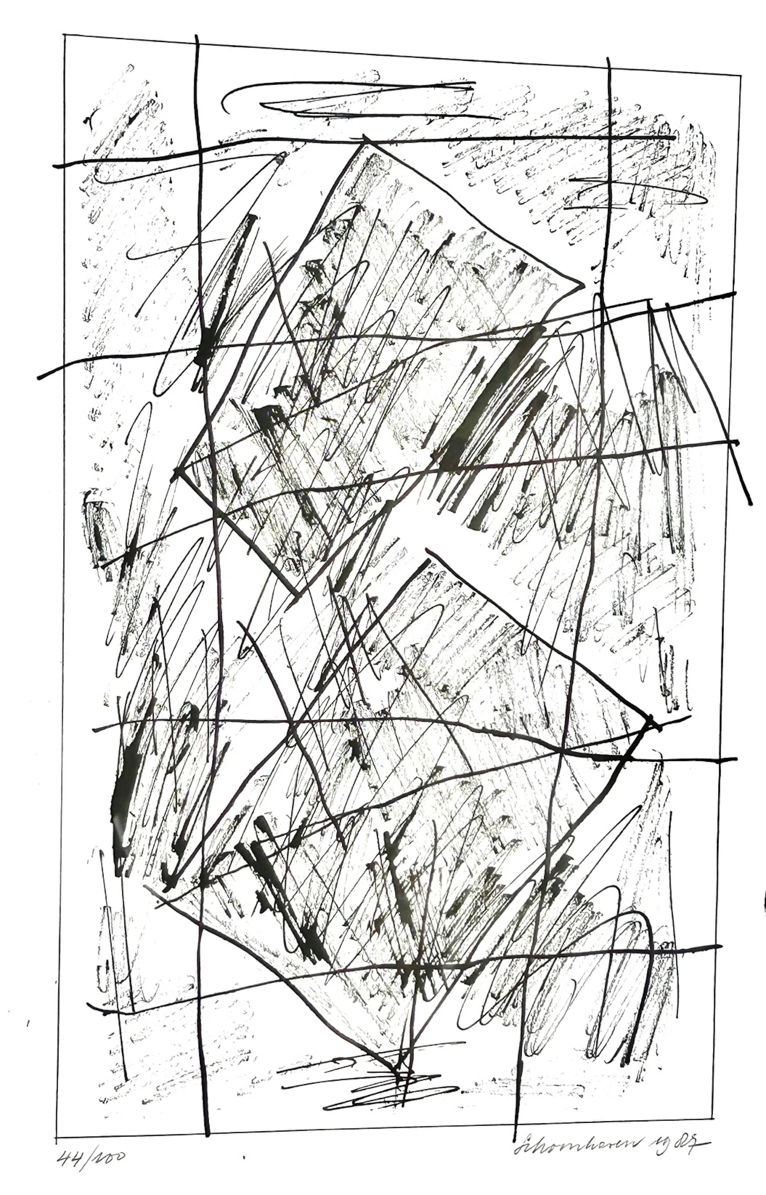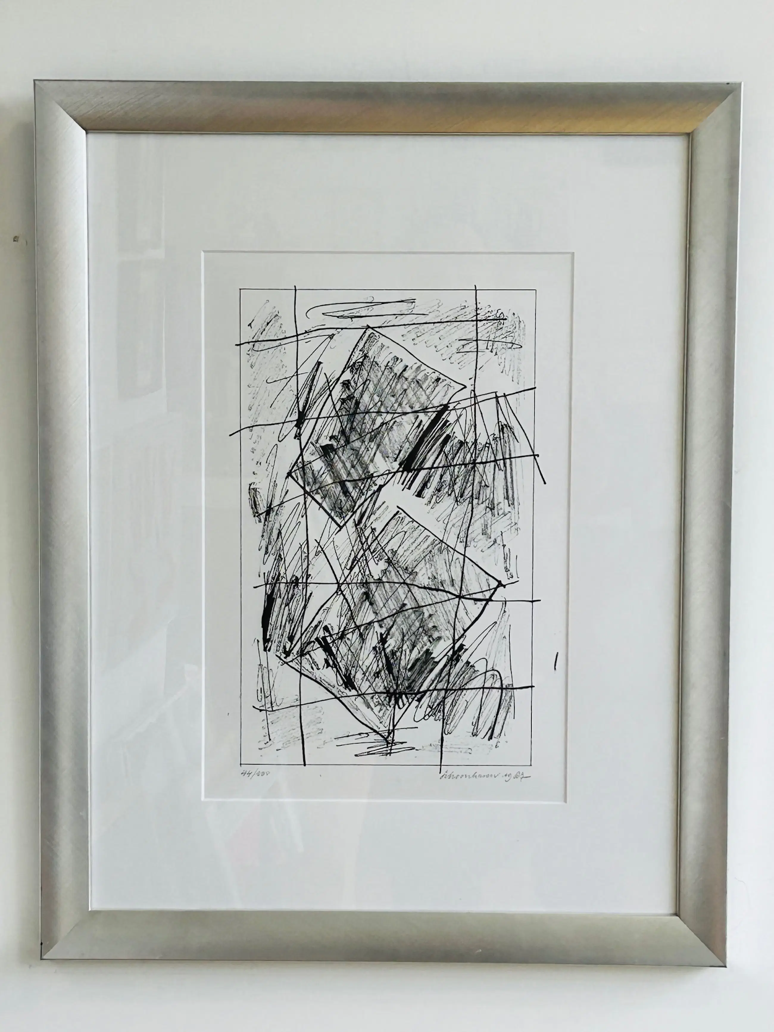 Fraai grafisch werk van de nederlandse Zero-kunstenaar Jan Schoonhoven met lijst. Het werk is in goede staat. Gesigneerd. Het werk zit in een kader/omlijsting deze is niet nieuw maar zeer goed toonbaar. U kunt het werk vooraf komen bekijken in de schatkamer van galerie Rotor in Gorinchem of na aankoop ophalen. Het werk kan ook verzonden worden via een koerier met glas. Na betaling kunnen we het ook tijdelijk gratis voor u opslaan. Lijst niet naar uw zin? Wij kunnen uw inlijsting verzorgen. Foto is door het glas van de omlijsting heen genomen.