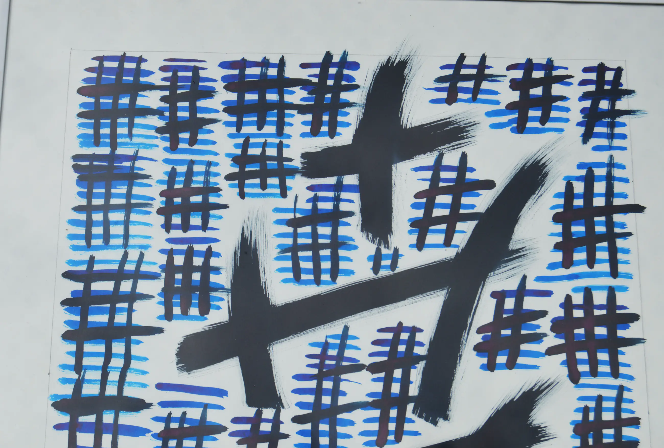 Deze tekening is gemaakt van blauwe inkt op papier.