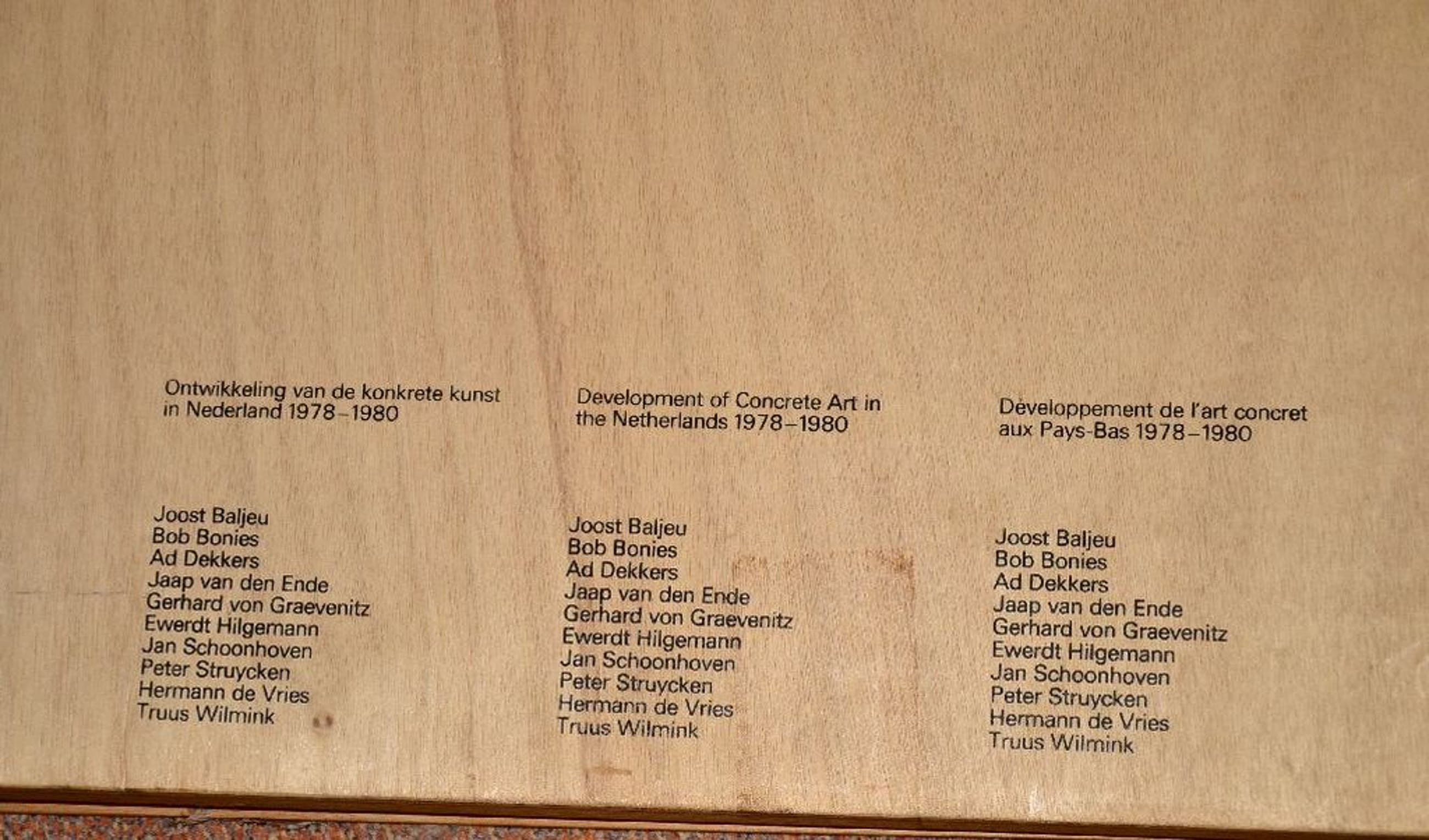Zeer mooi uitgevoerd portfolio in een houten kist. Ontwikkeling van de Konkrete Kunst in Nederland 1978-1980.
