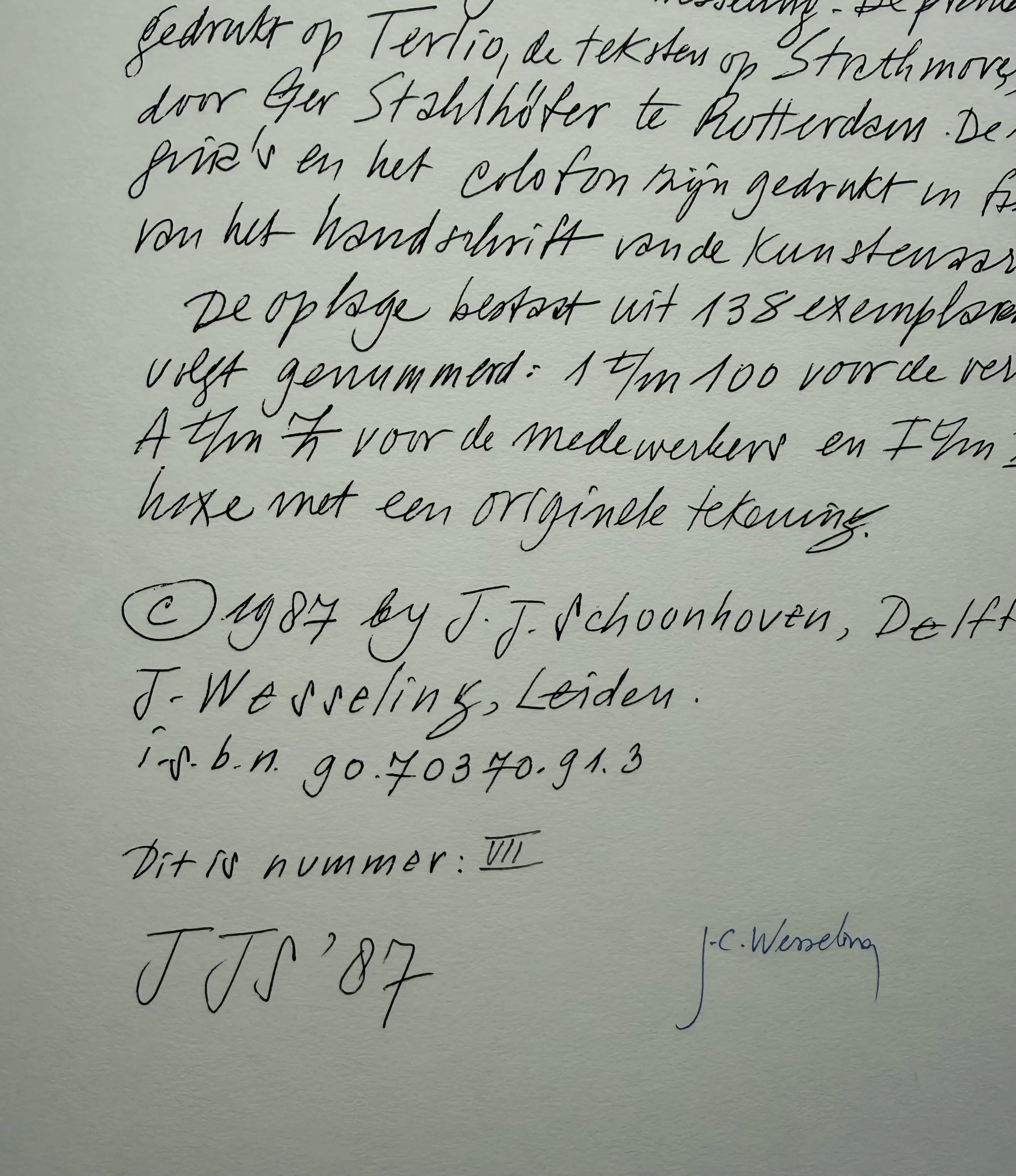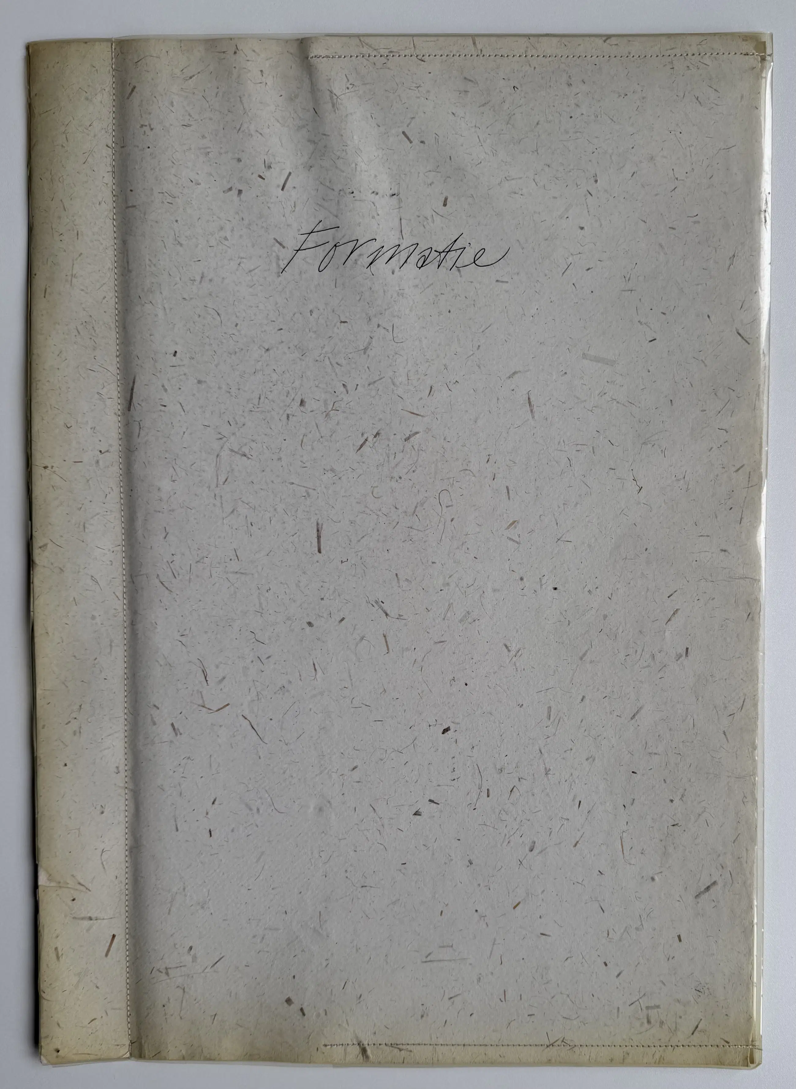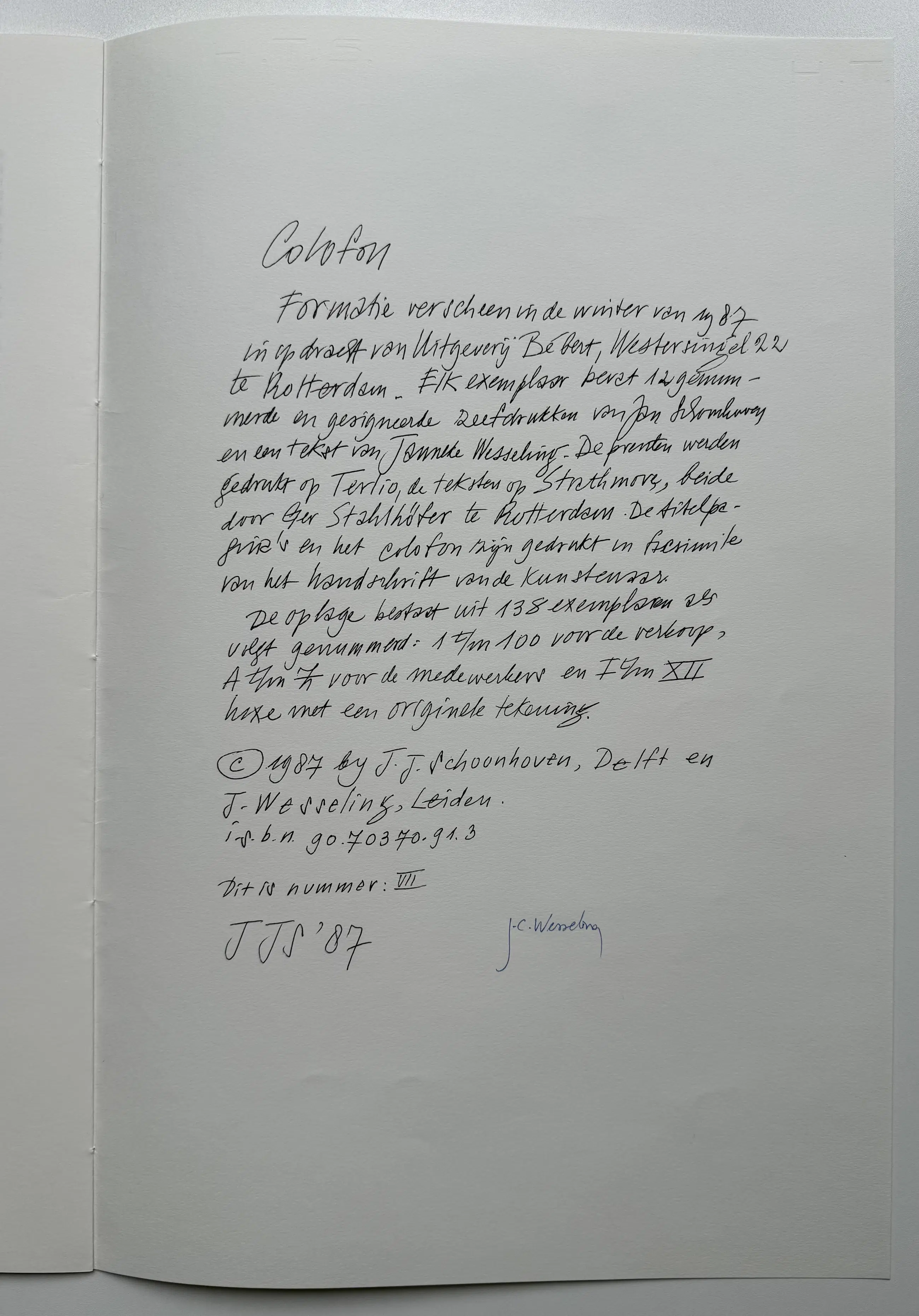 Ongetwijfeld leuk voor de verzamelaar. De originele map van de portfolio 'Formatie' van Jan Schoonhoven. De handgesigneerde colofon zit er ook bij, dus met originele handtekening van Jan Schoonhoven.