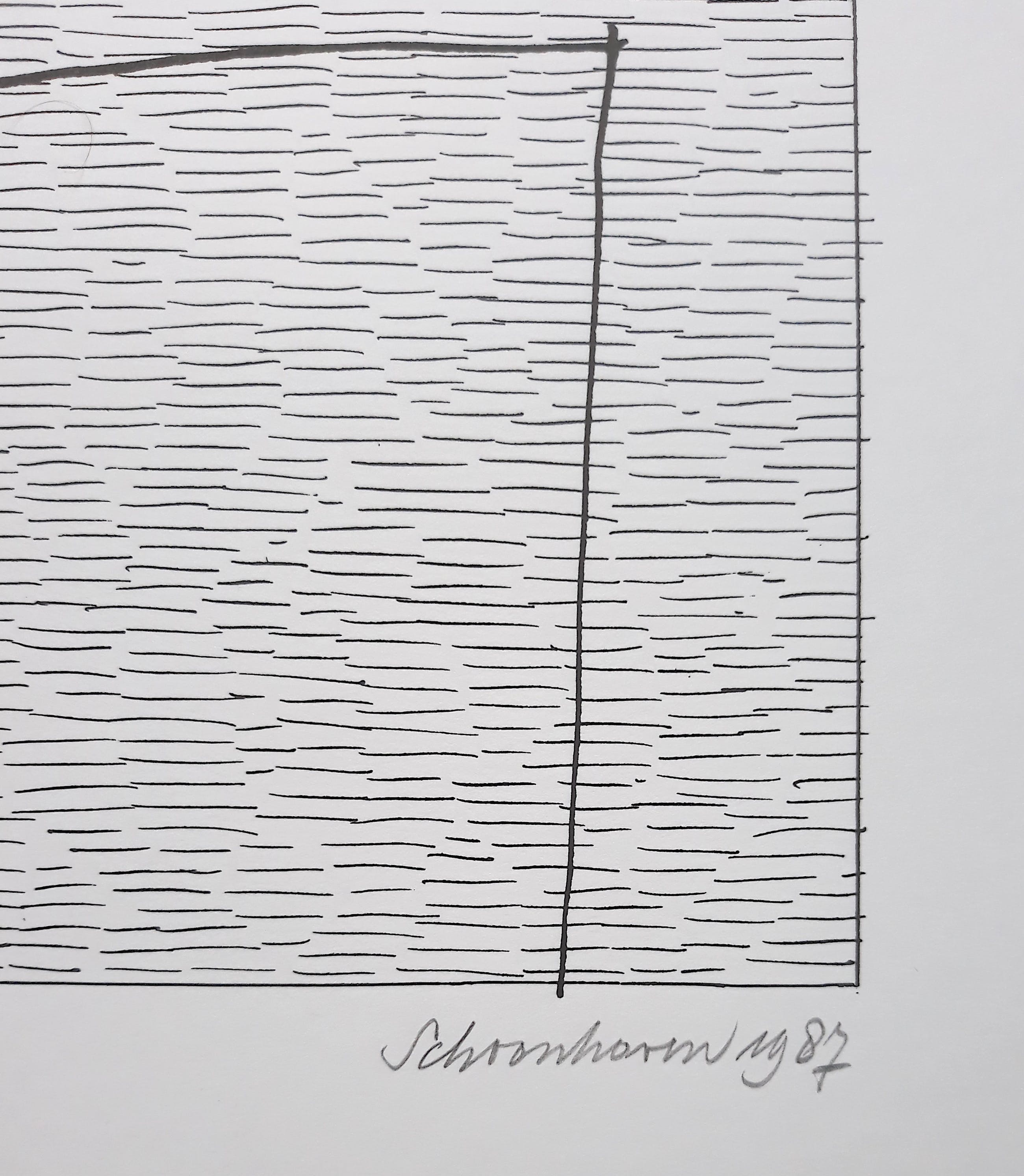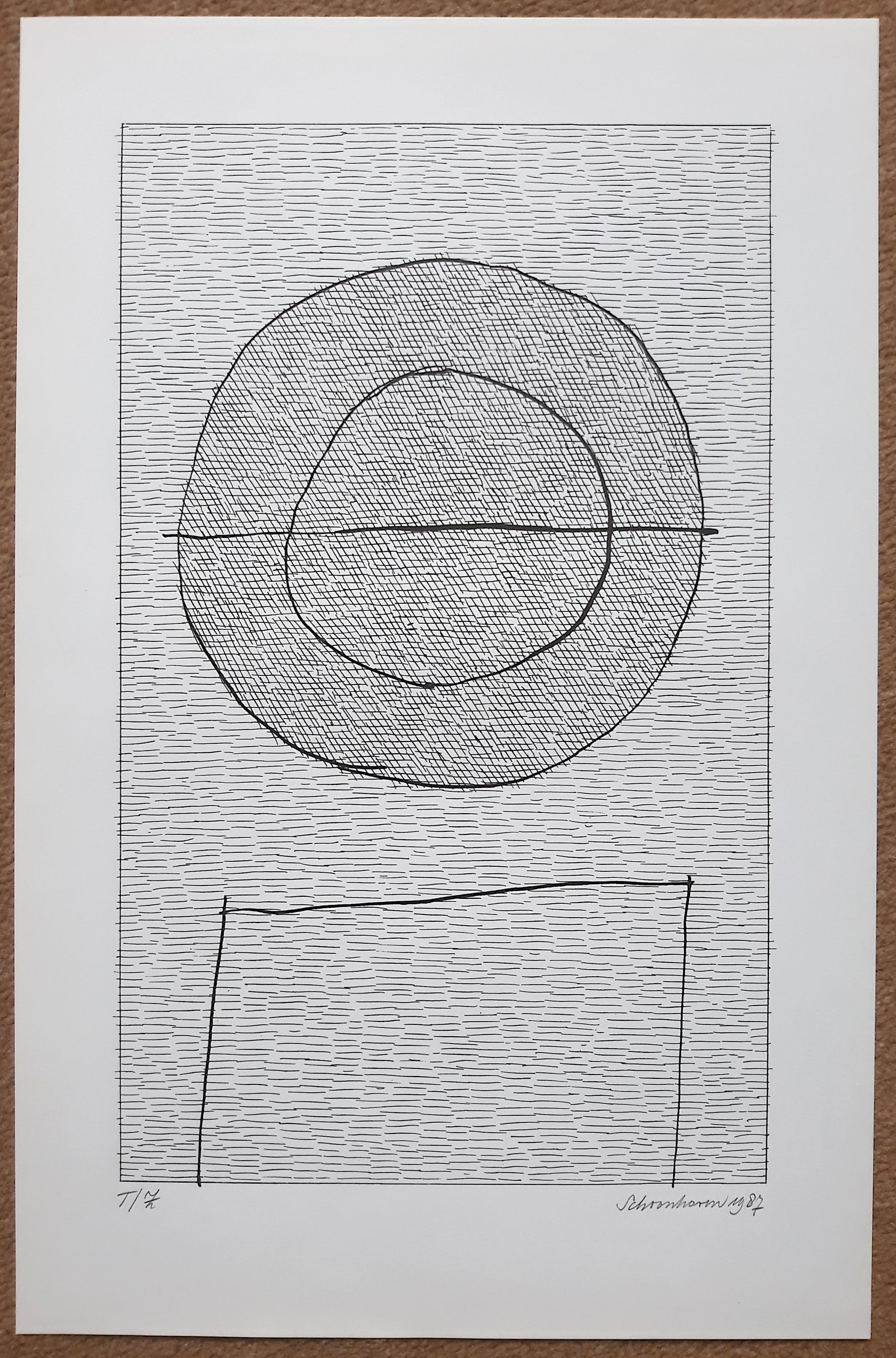 Mooie, strakke compositie uit de portfolio Vorm van Jan Schoonhoven. Zeefdruk op Cambridge White papier, met potlood gesigneerd, gedateerd (1987) en geletterd (T/Z). Gedrukt door Ger Stahlhöfer, uitgegeven door Bébert. In mint conditie.