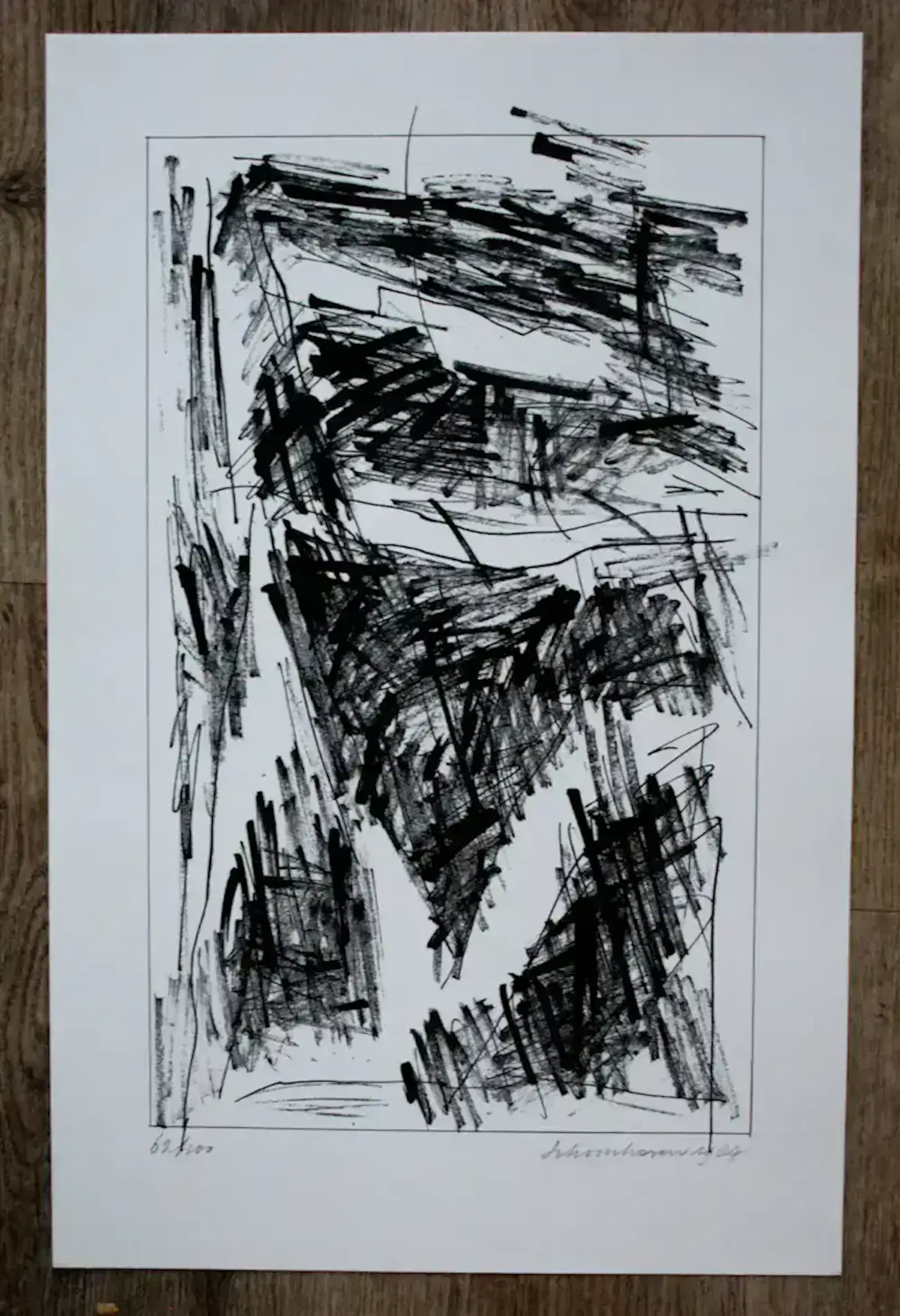 Zeefdruk van Jan Schoonhoven uit de "Formatie map" . Nummer: 62/100. Afmetingen blad: H50 x b32,5cm. Afmetingen voorstelling: H40 x b24,5cm. Het werk is rechts onderaan, met potlood, gesigneerd en gedateerd (1987) door de kunstenaar. De authenticiteit van het aangeboden werk wordt volledig gegarandeerd. Een certificaat van echtheid kan, op aanvraag, worden gemaild.