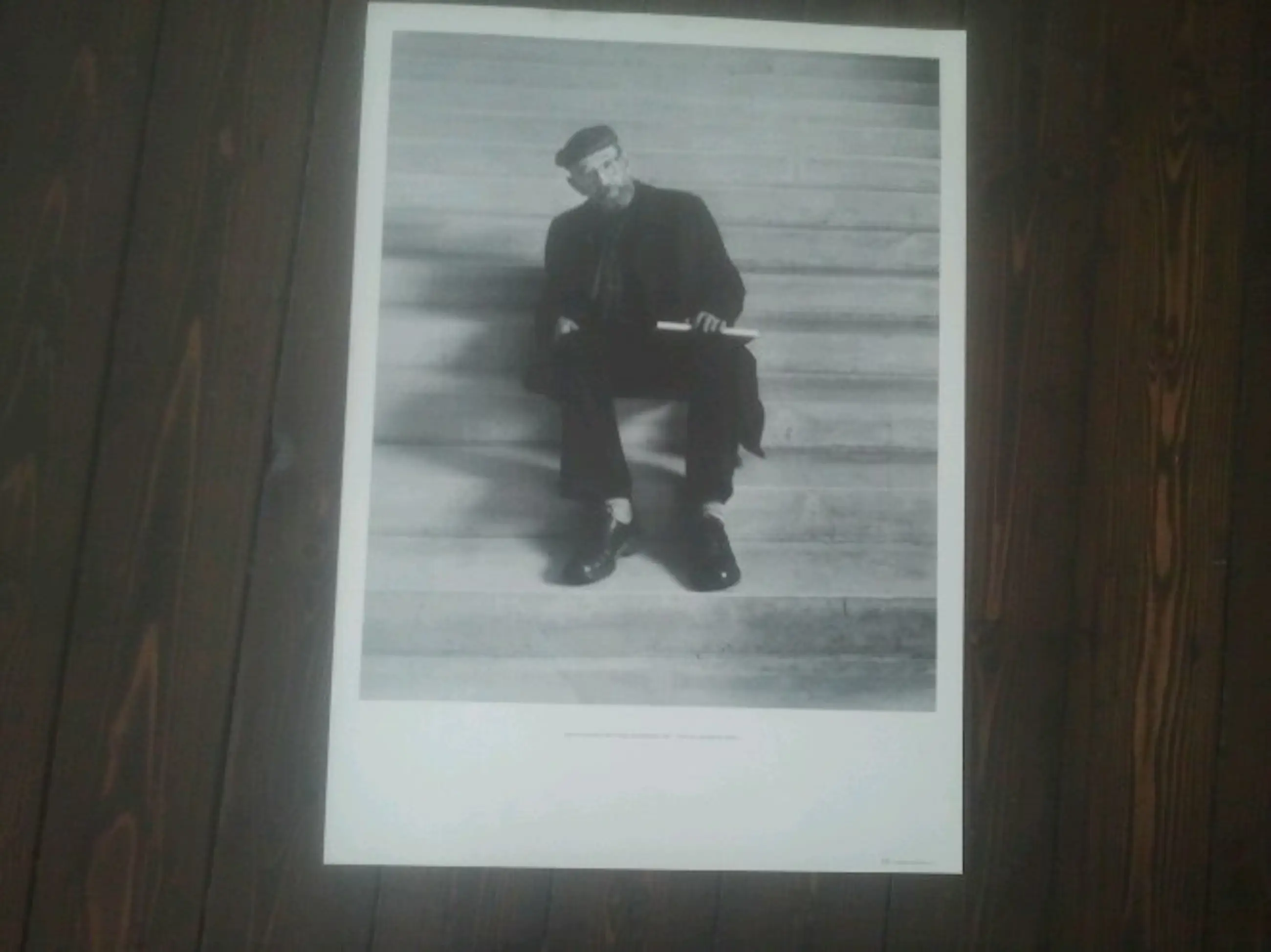 Afbeedling van Jan Schoonhoven zittend op de trap van het Stedelijk Museum Amsterdam