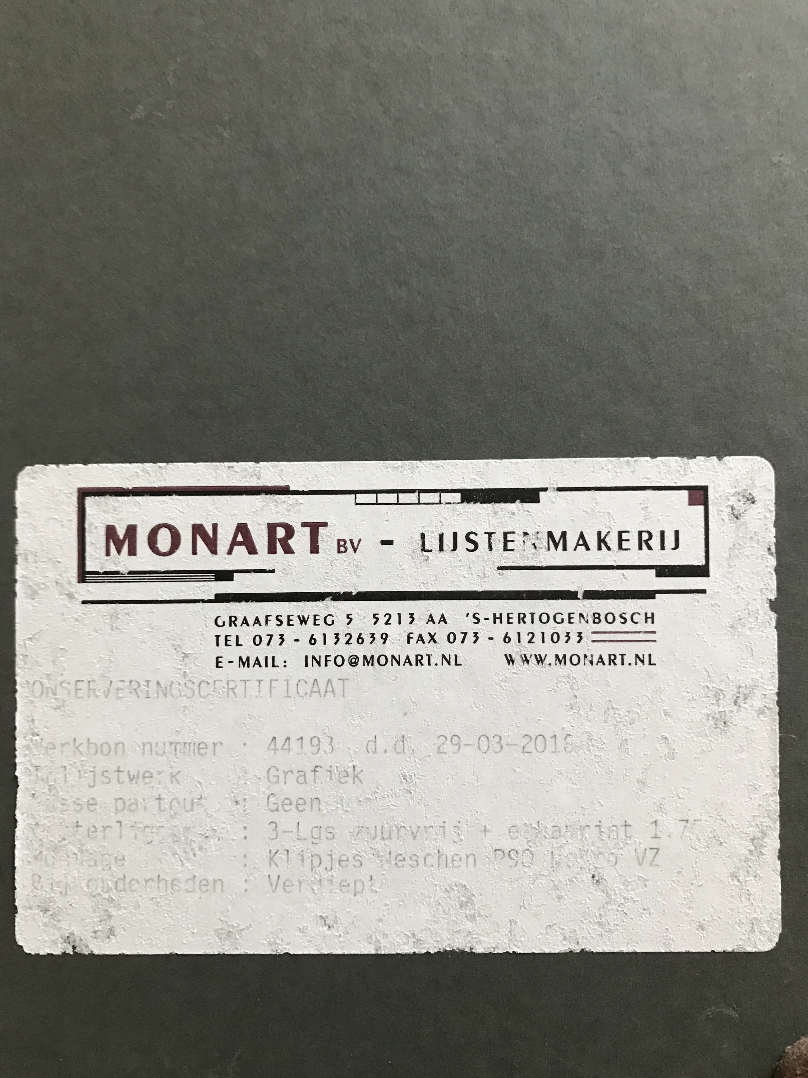 Verdiept ingelijst in essen lijst, ingelijst door Monart in Den Bosch.