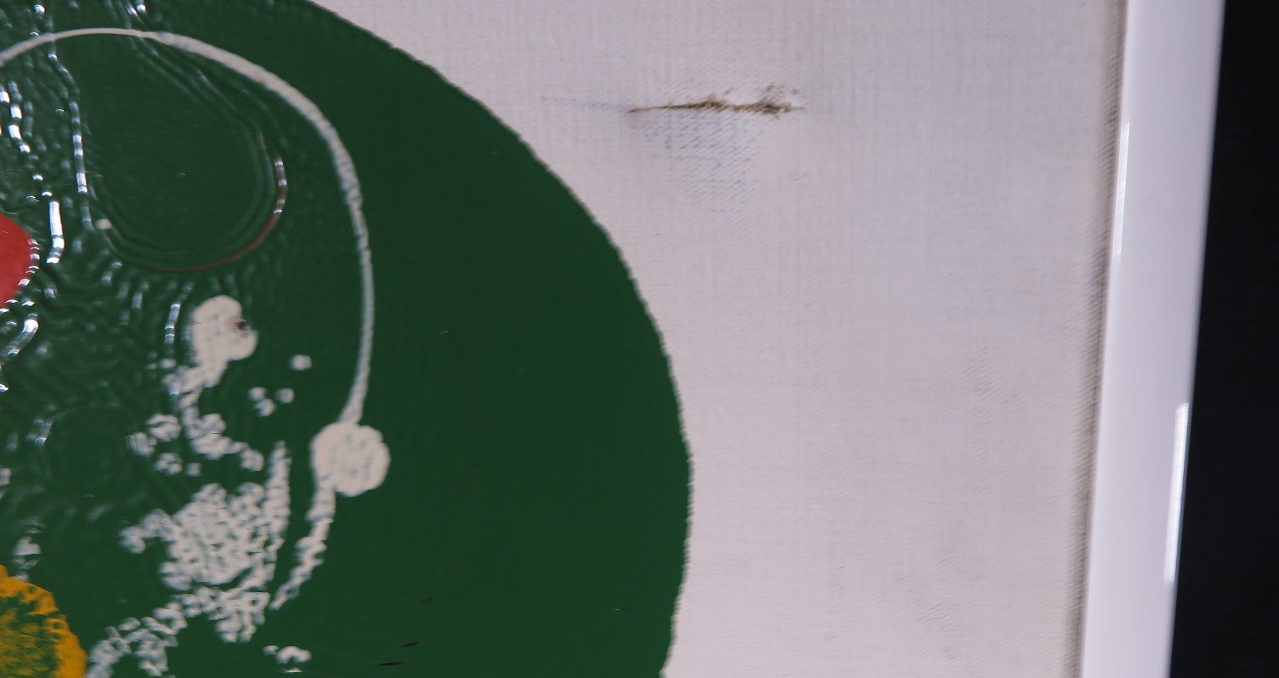 | Scheur linkerbovenhoek. Vlekken, vegen en krassen. | |