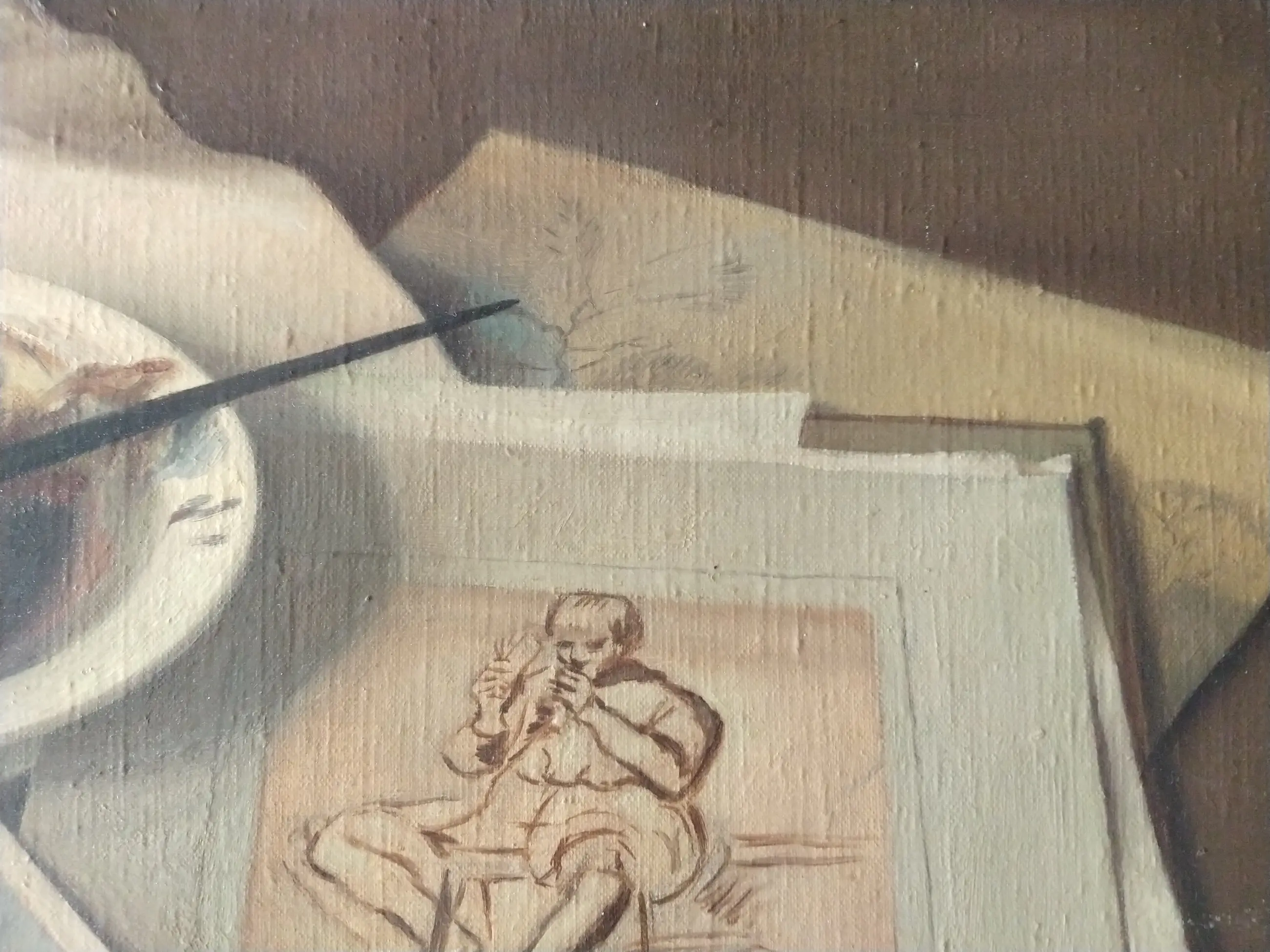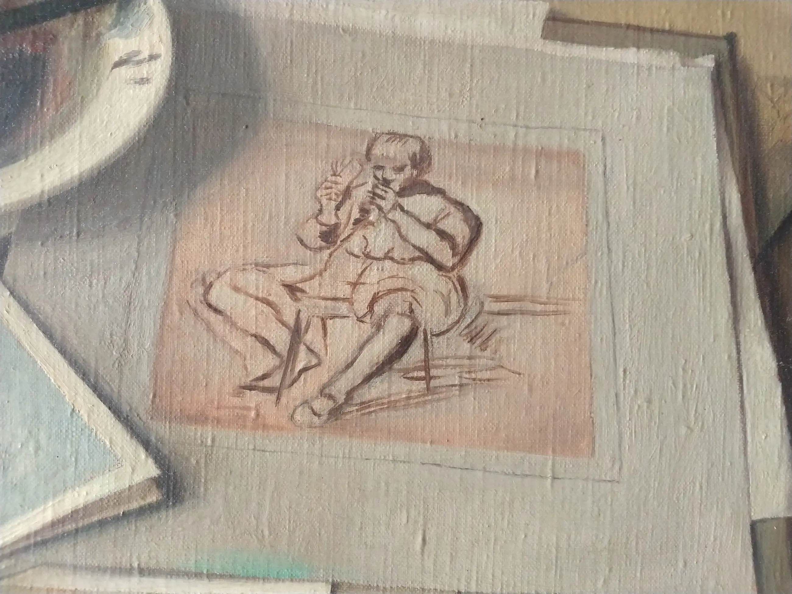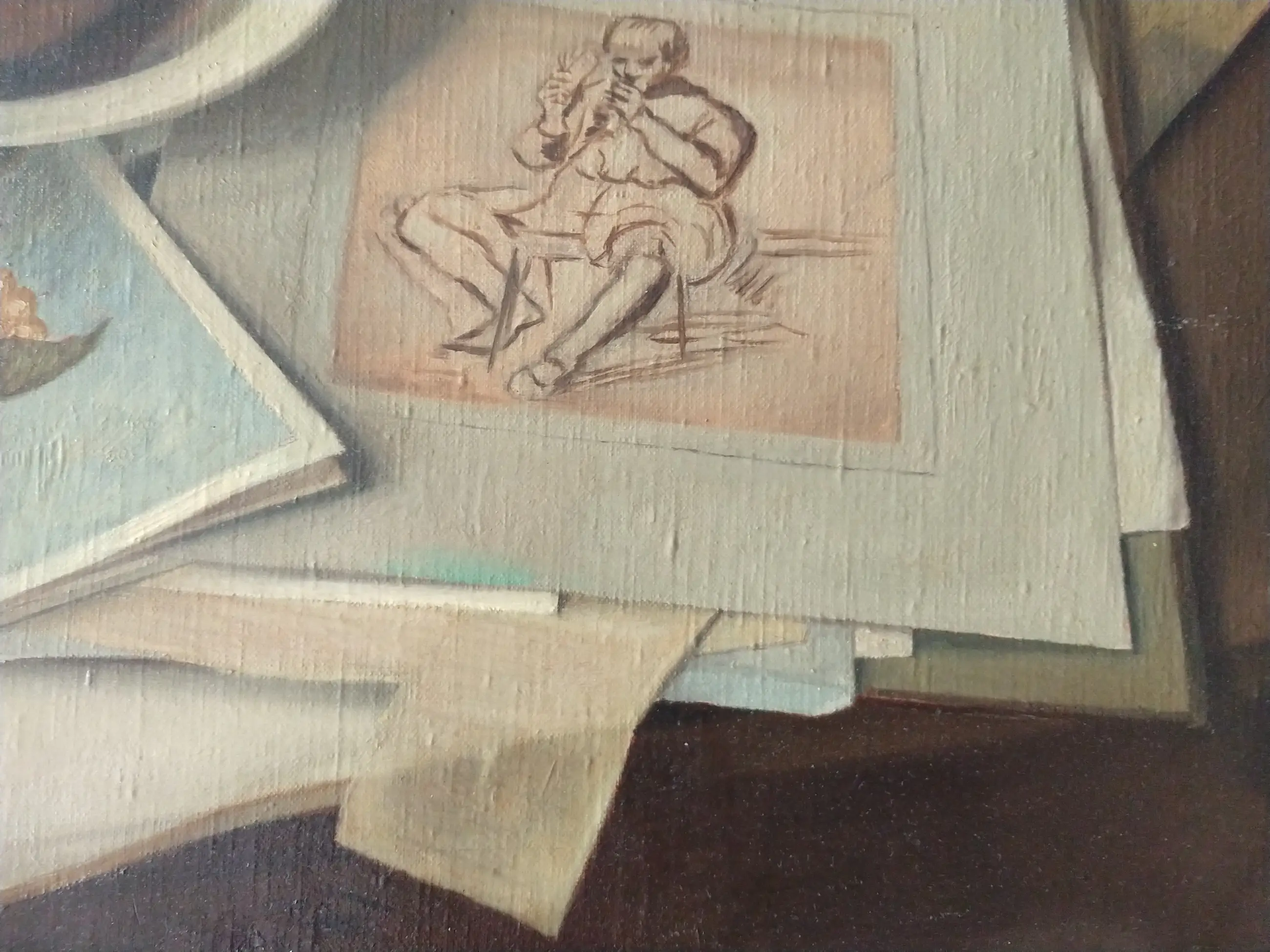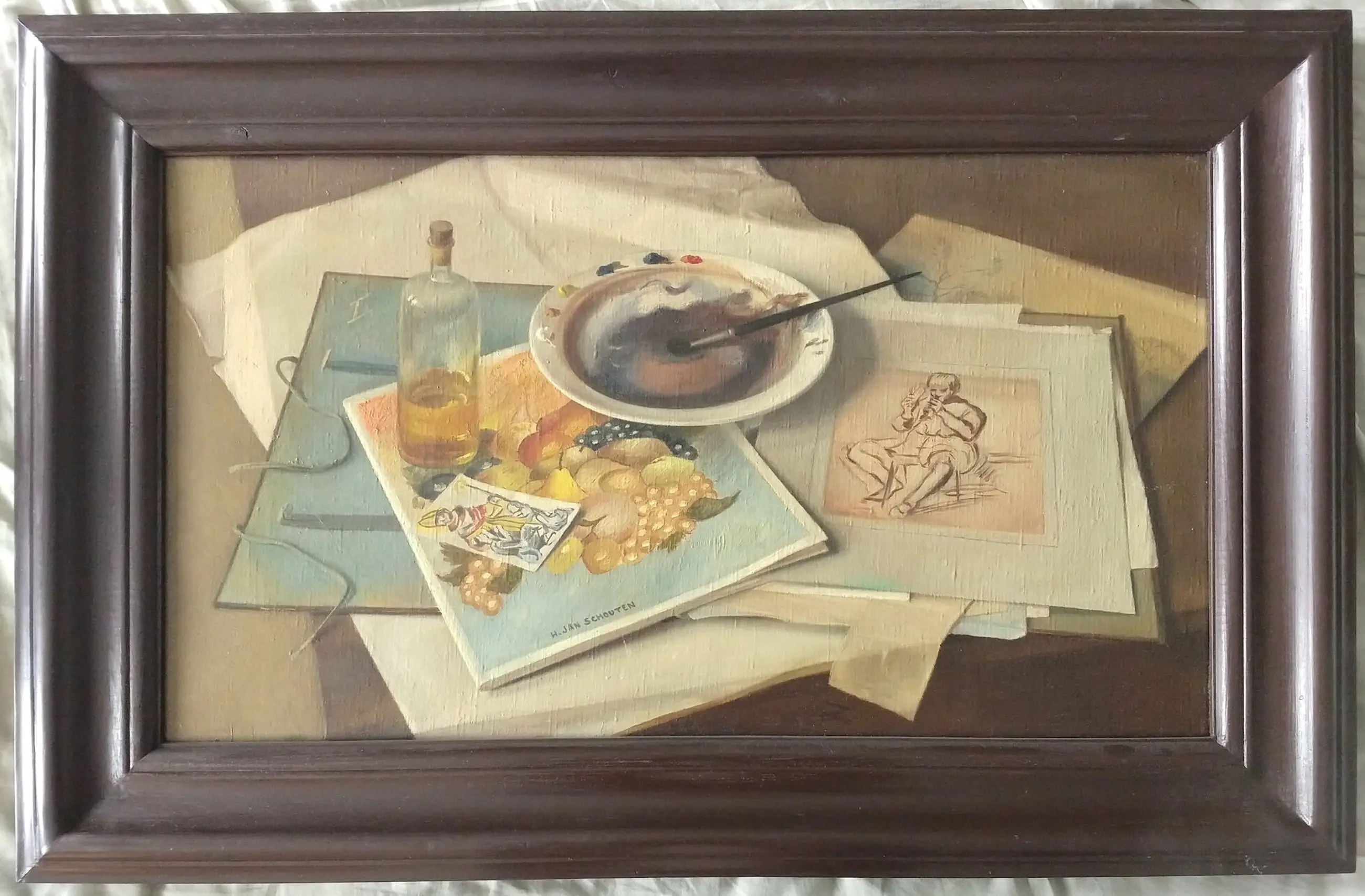 Jan Schouten (1906-1987). Realistisch stilleven met kunstenaarsattributen. Olieverf op doek.