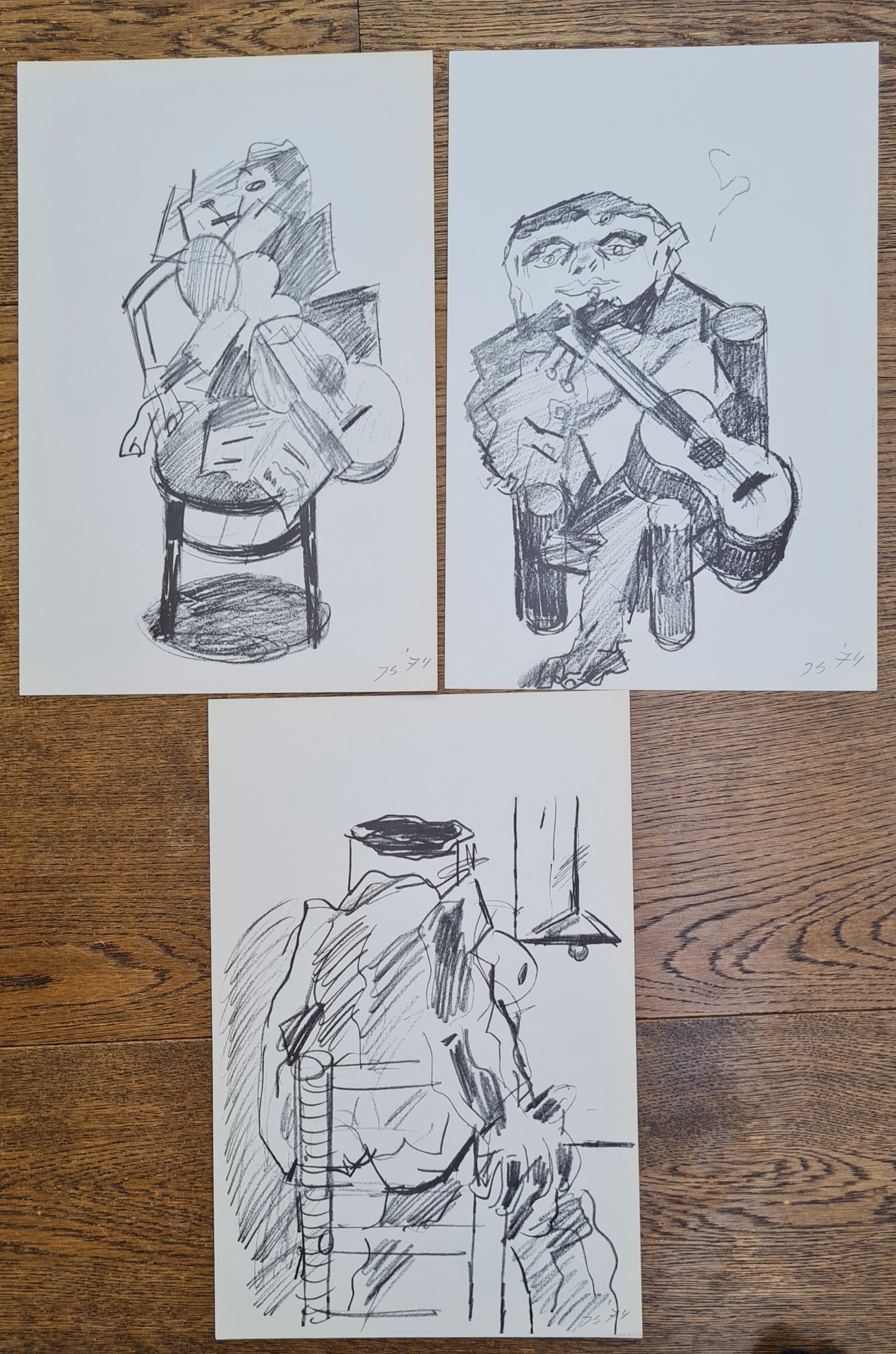Kavel van 12 gemonogrammeerde litho's van Jan Sierhuis.