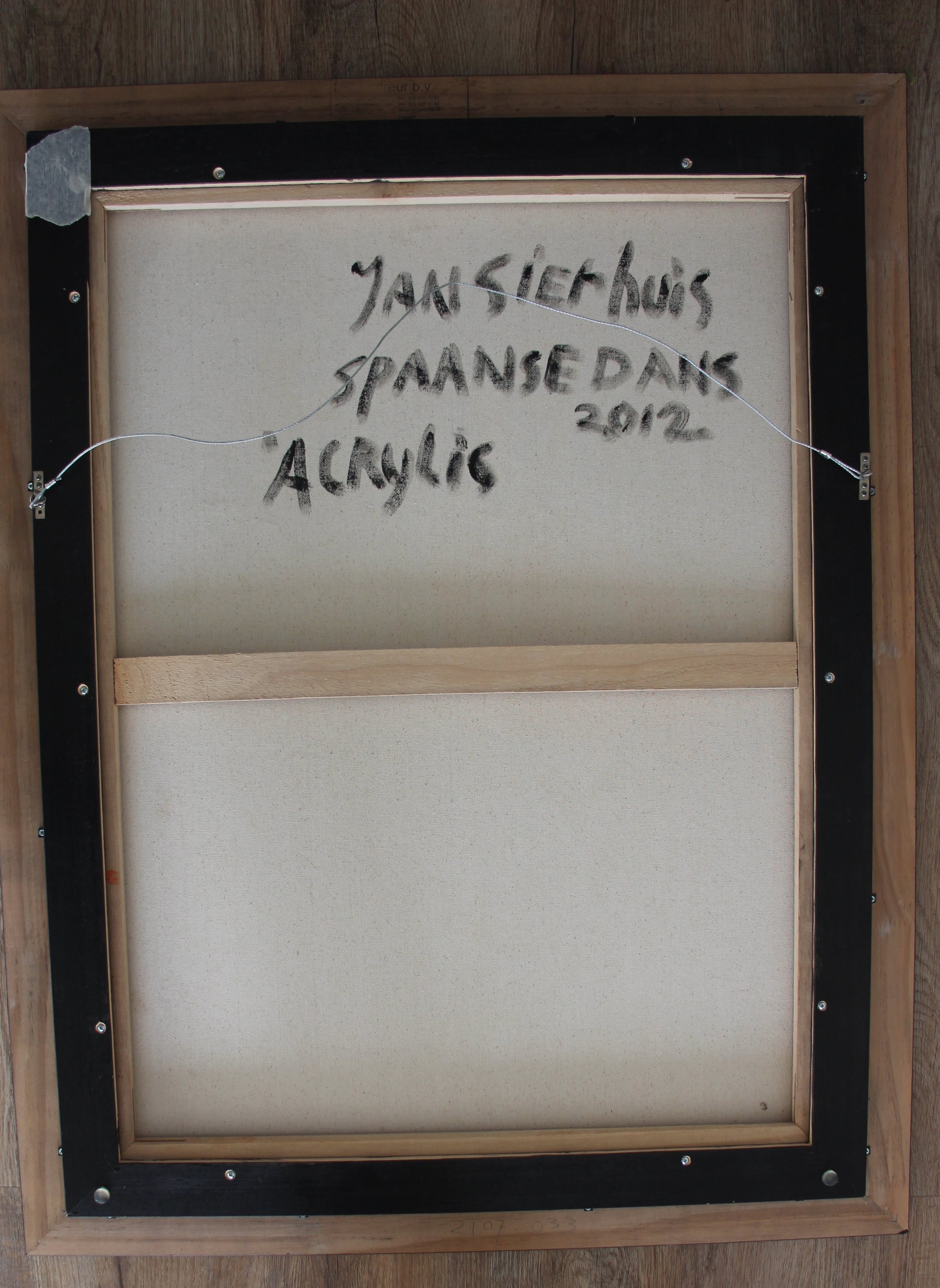 Prachtig Acryl op doek van Jan Sierhuis uit 2012. De heldere kleuren spatten van het doek af! Titel: Spaanse dans. Het werk is rechtsonder gesigneerd door de kunstenaar. Afmetingen werk: H80 x b60 cm. Herkomst: Galerie Tom Okker. De authenticiteit van het aangeboden werk wordt volledig gegarandeerd. Een certificaat van echtheid kan, op aanvraag, worden gemaild.