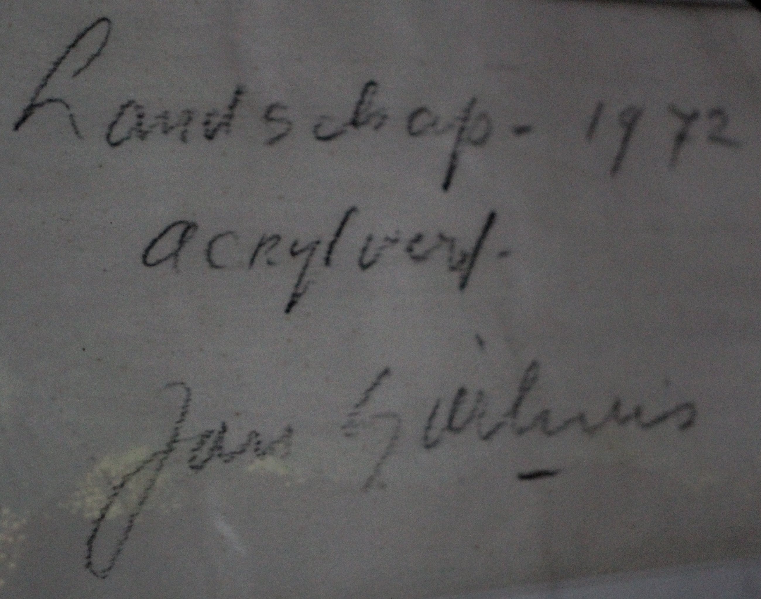 Acryl op papier - ingelijst werk van jan Sierhuis. Titel: Landschap. Jaar: 1972. Afmetingen werk incl lijst: H98 x b117cm. Afmetingen voorstelling: H71 x b89cm. Het werk is rechtsonder gesigneerd door de kunstenaar. OP de achterzijde staat ook de titel, jaar en naam van de kunstenaar. De authenticiteit van het, aangeboden, werk wordt volledig gegarandeerd. Een certificaat van echtheid kan, op aanvraag, worden gemaild.