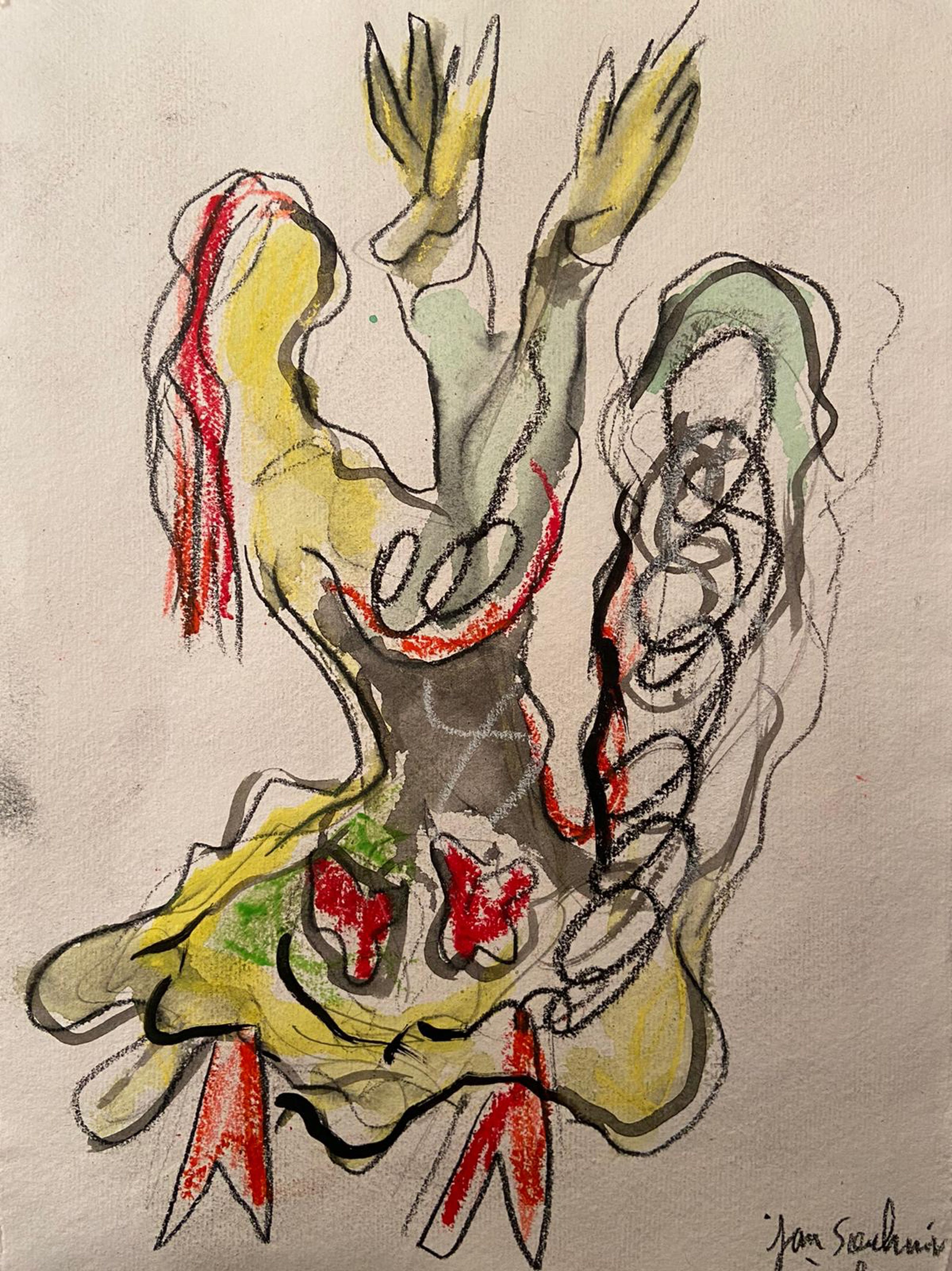 Jan Sierhuis - Acryl/Krijt op geschept papier - Verkocht