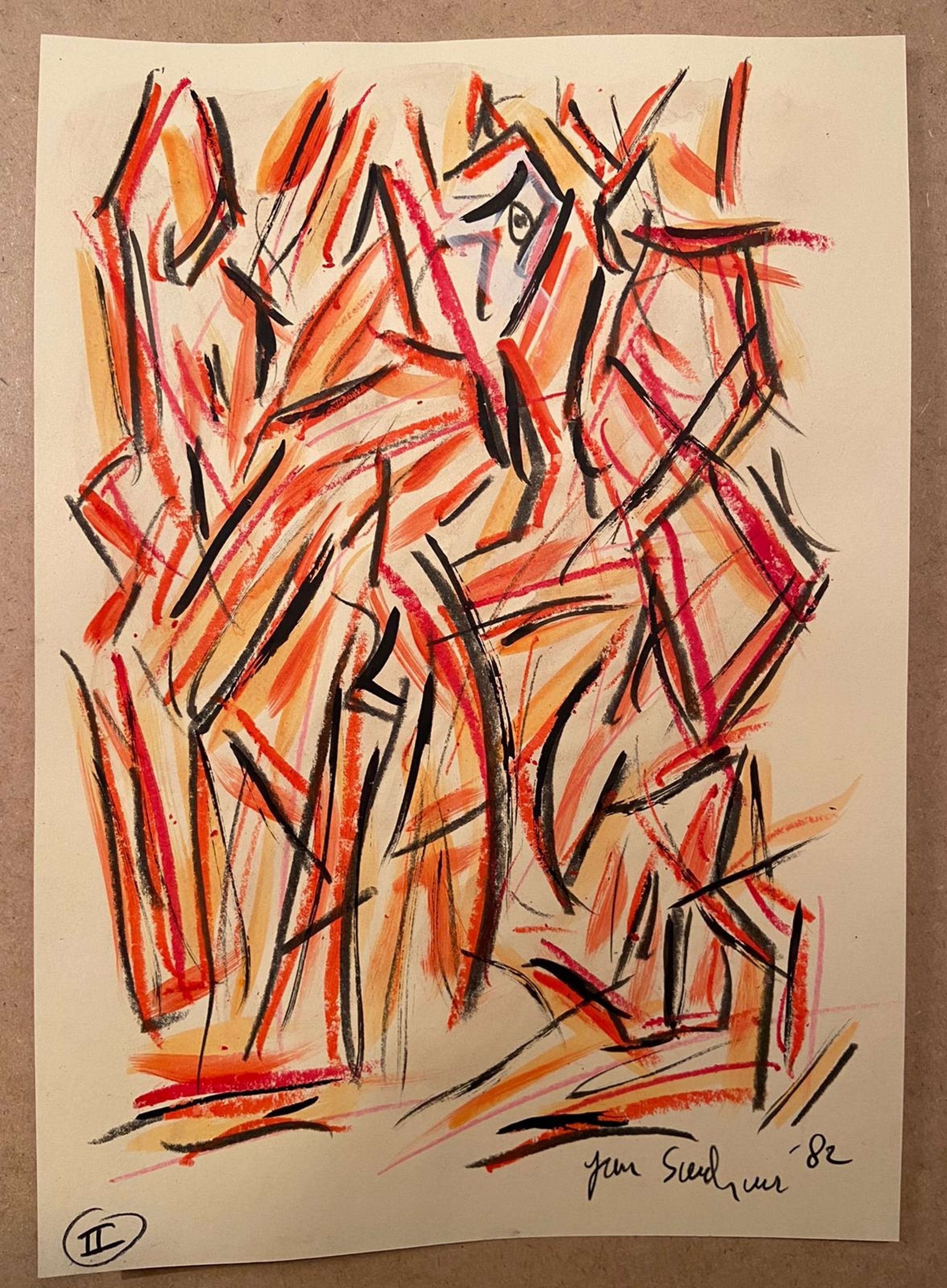 Techniek: Acryl/Krijt Jaartal: 1982 Gesigneerd: hand potlood Uniek werk uit serie van 4 stuks (bekijk andere aangeboden werken) Word aangetekend verzonden
