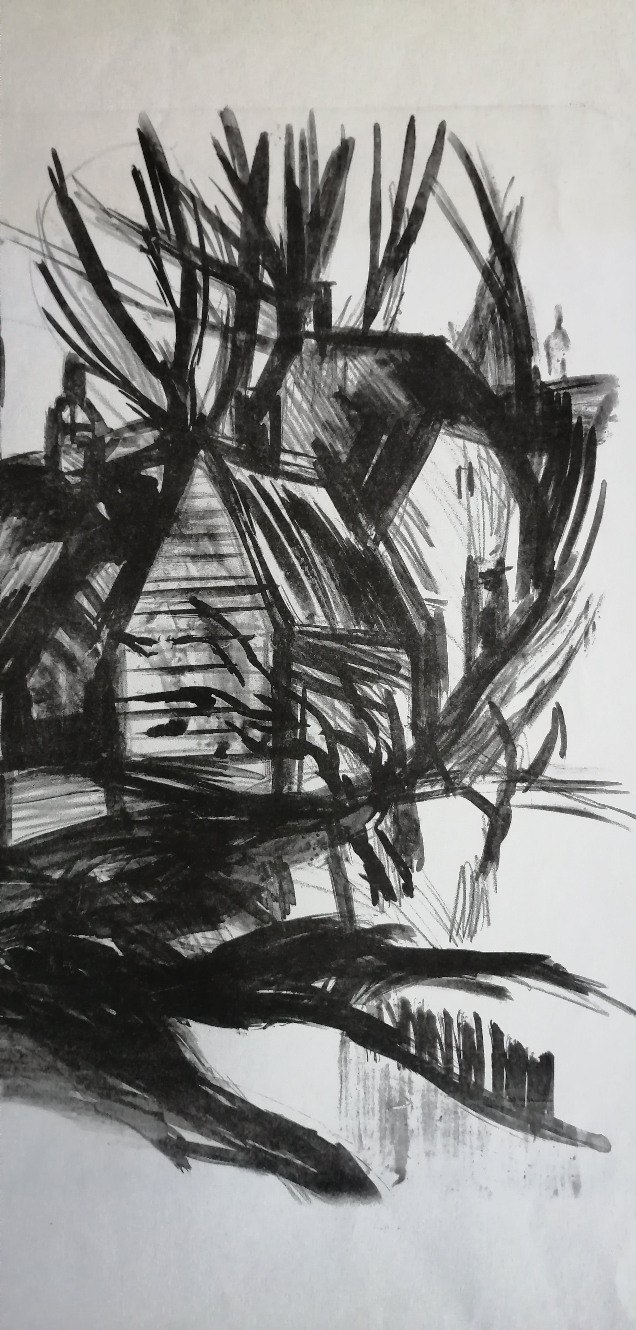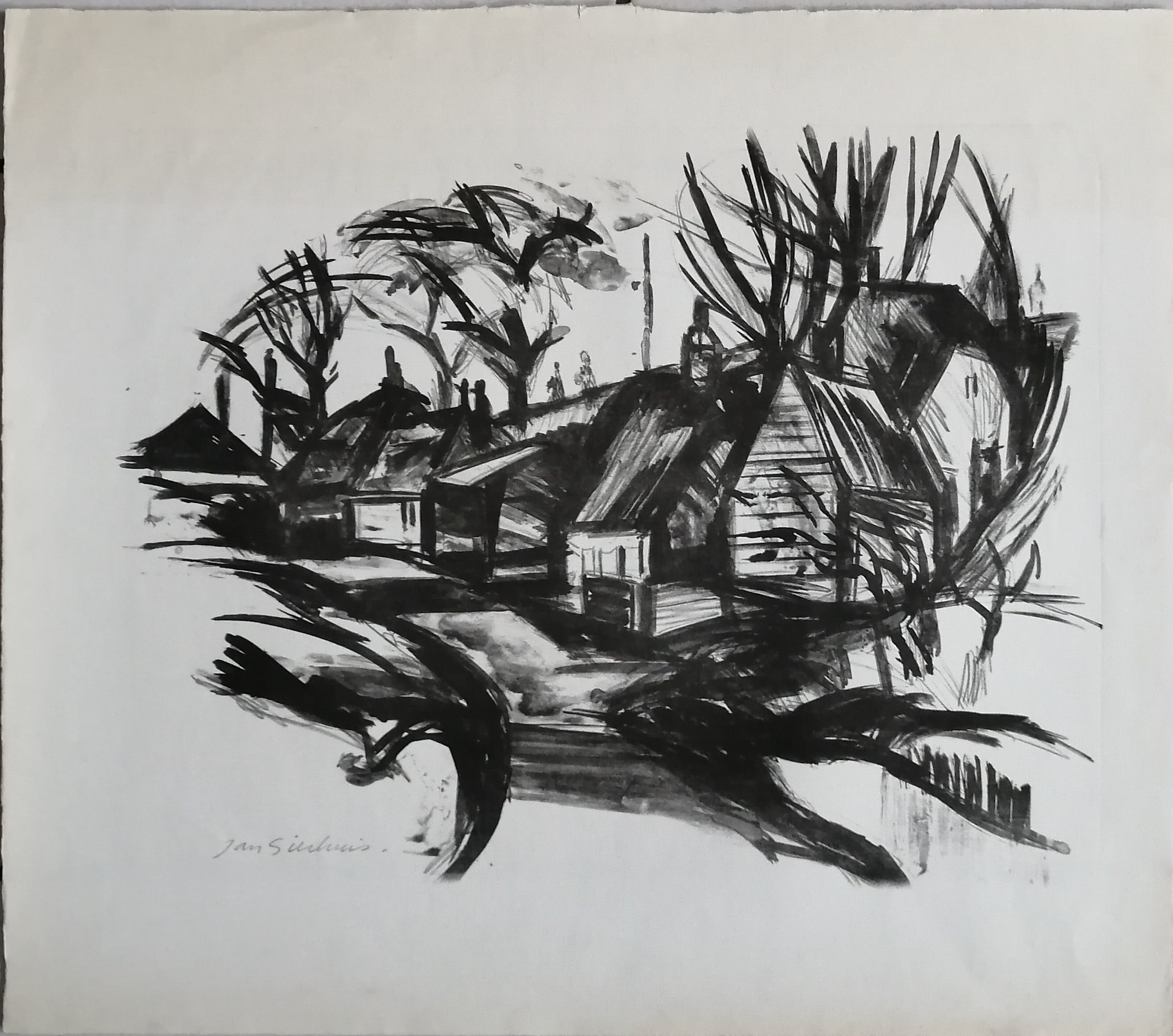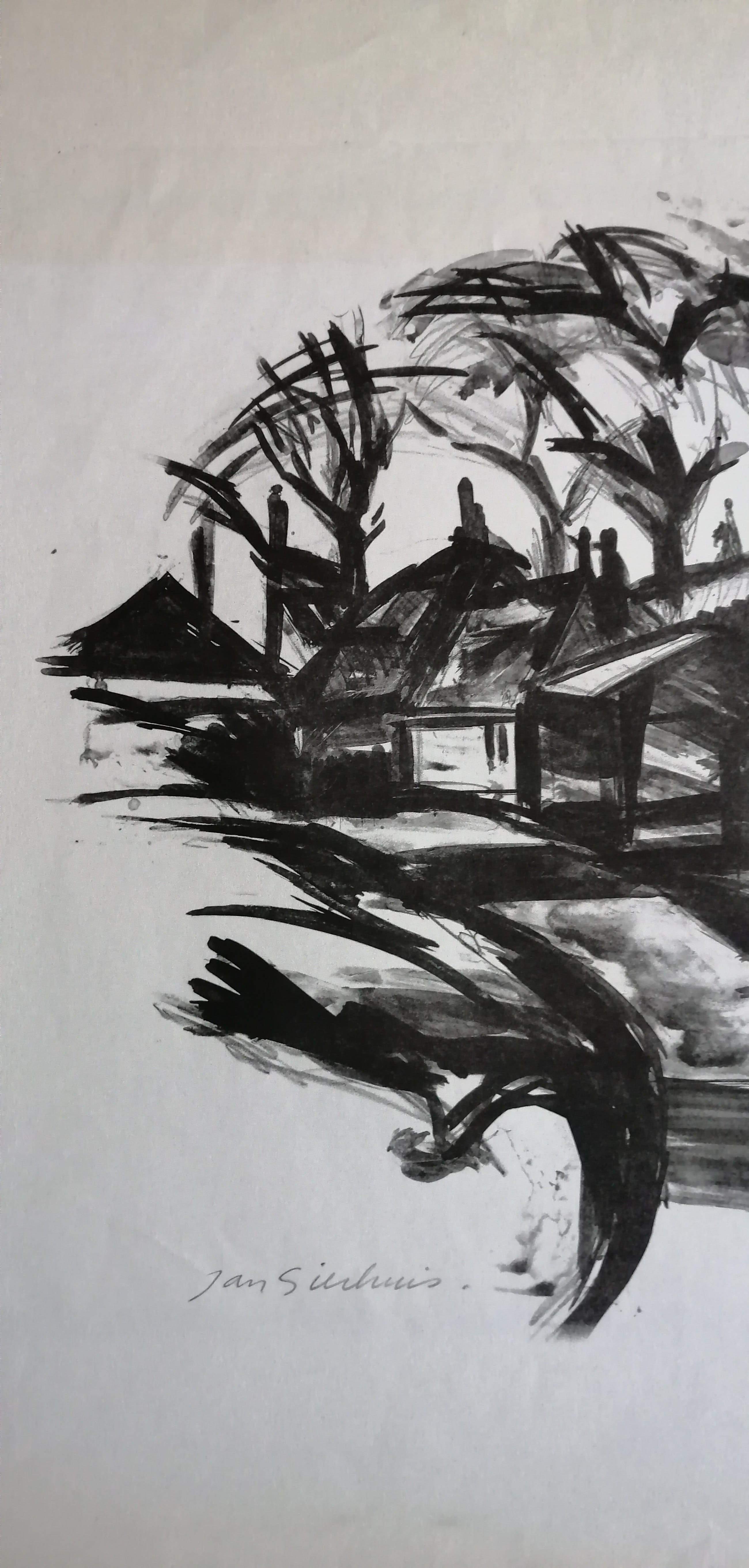 Vroeg werk van Jan Sierhuis.Potlood gesigneerd linksonder.Beeldmaat 36x47 cm.Bladmaat 49x56 cm.Losbladig.