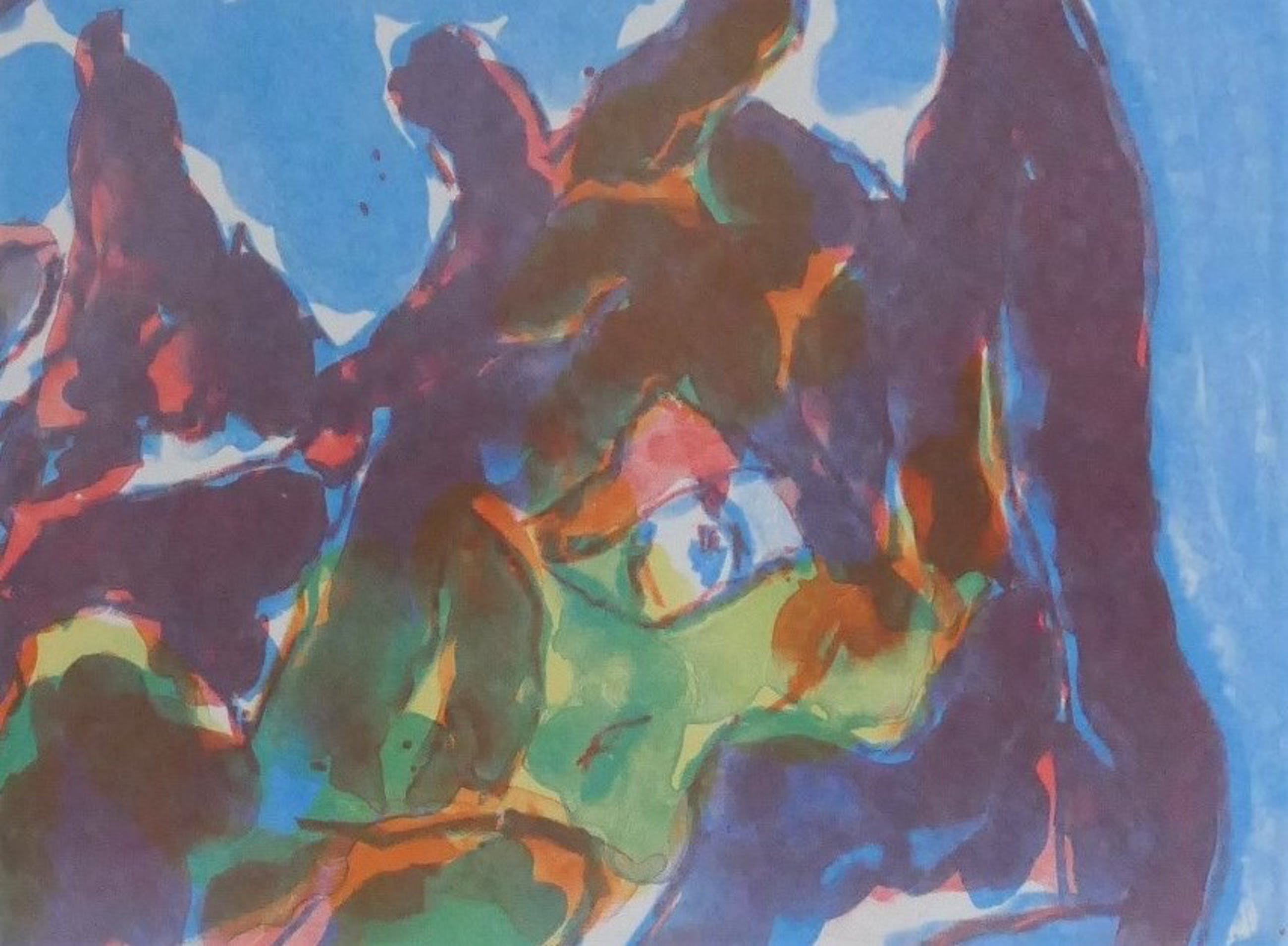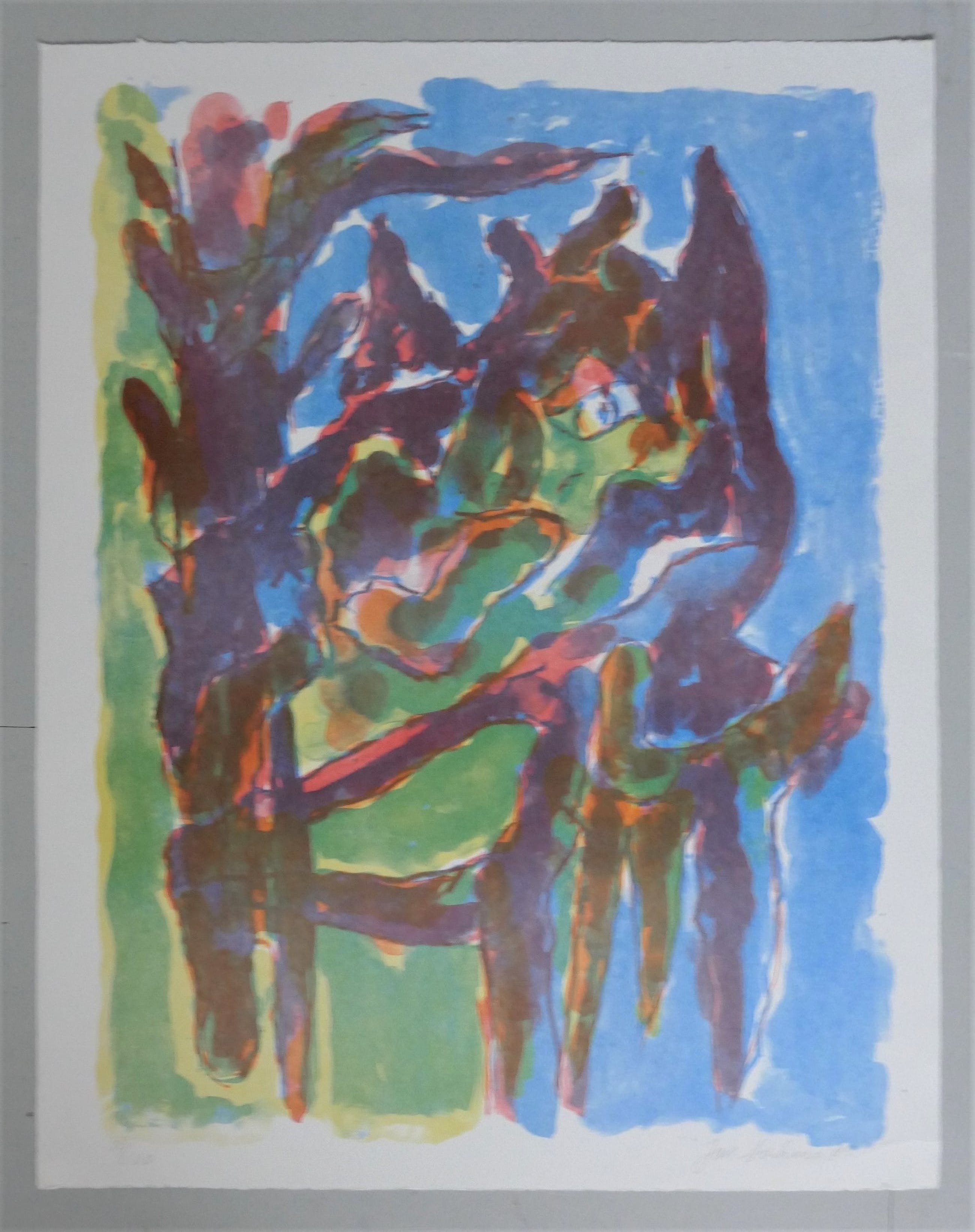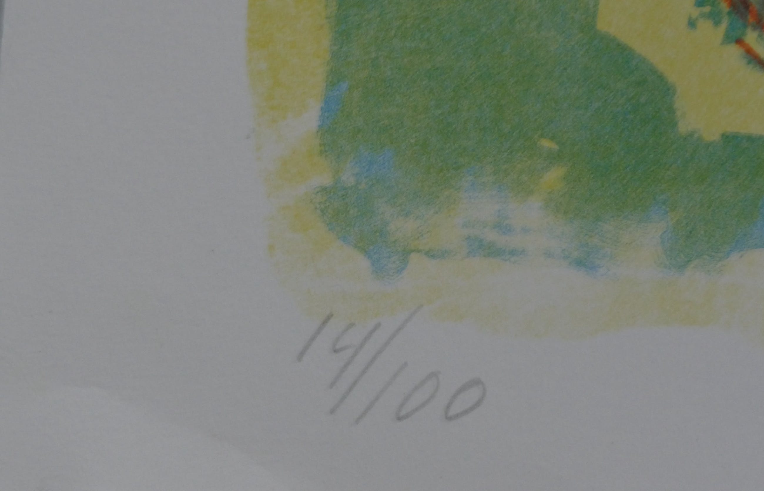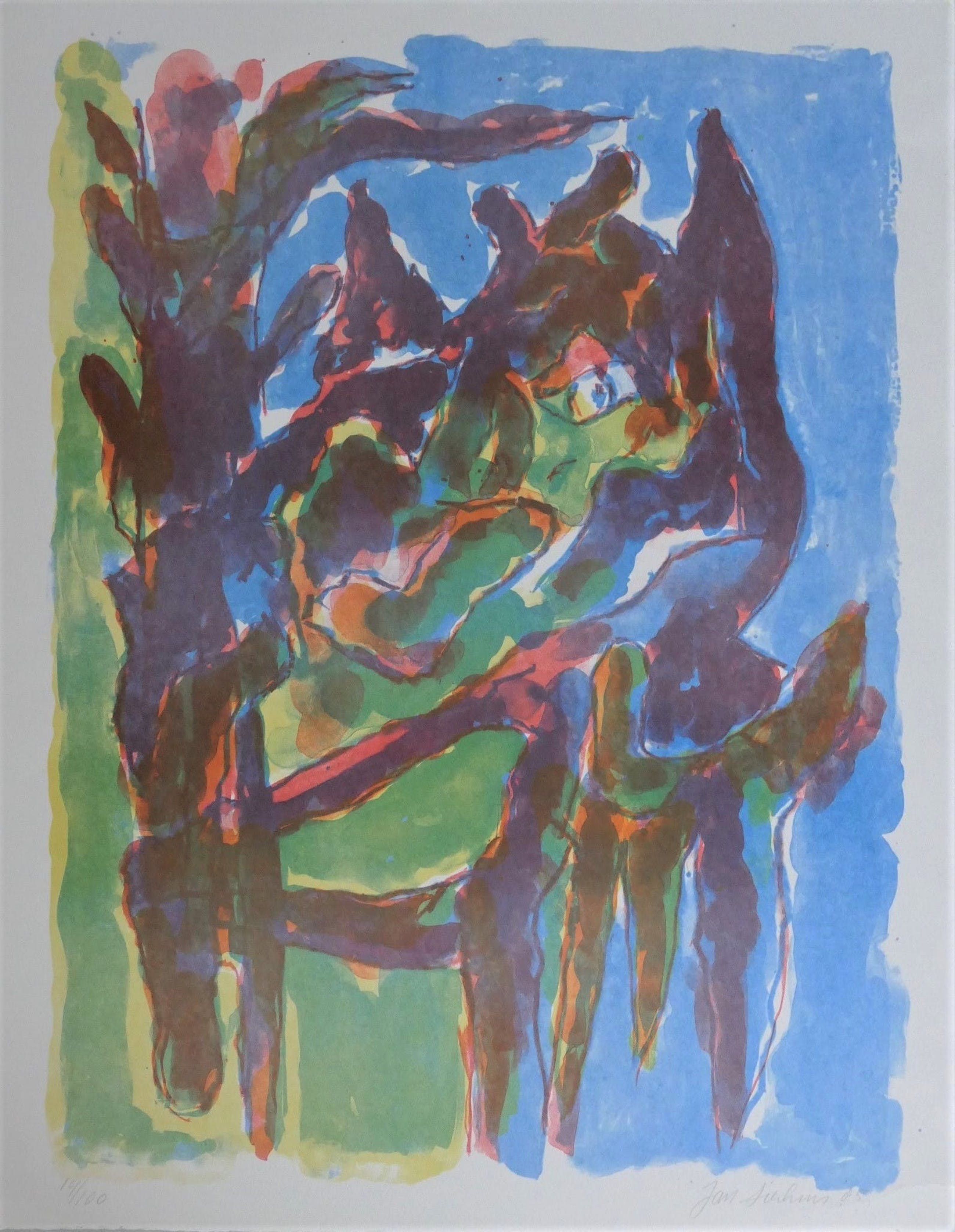 Veelkleurige litho door de Amsterdamse kunstenaar Jan Sierhuis