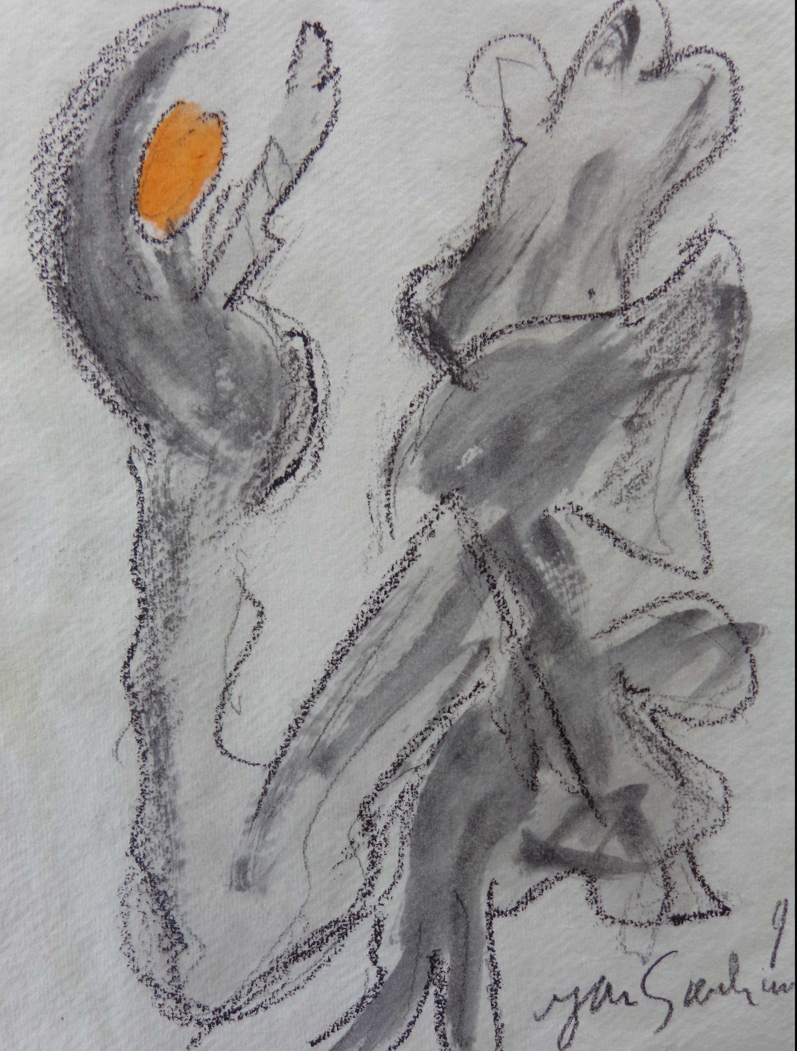 Origineel werk van lavis en olie/pastelkrijt op handgeschept papier.