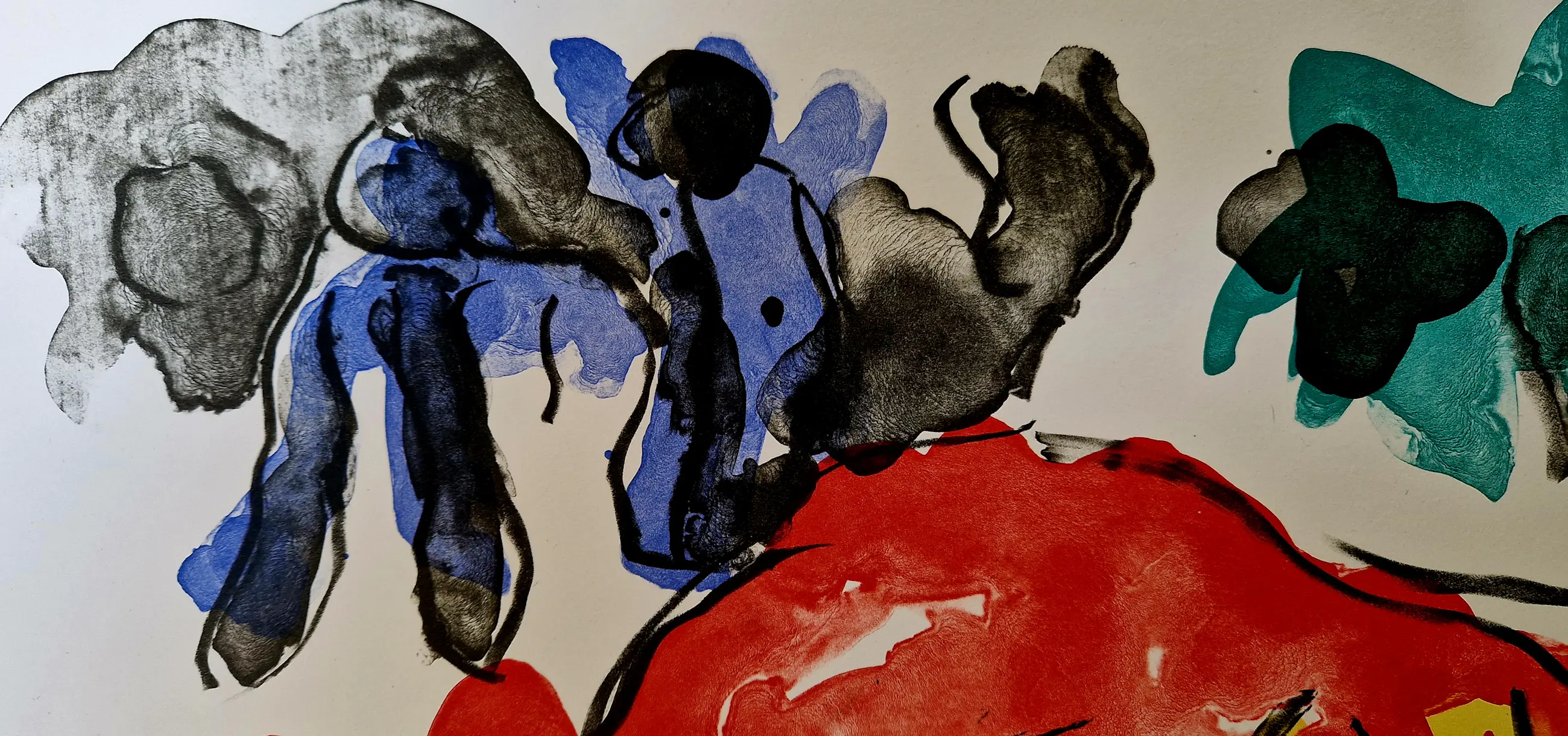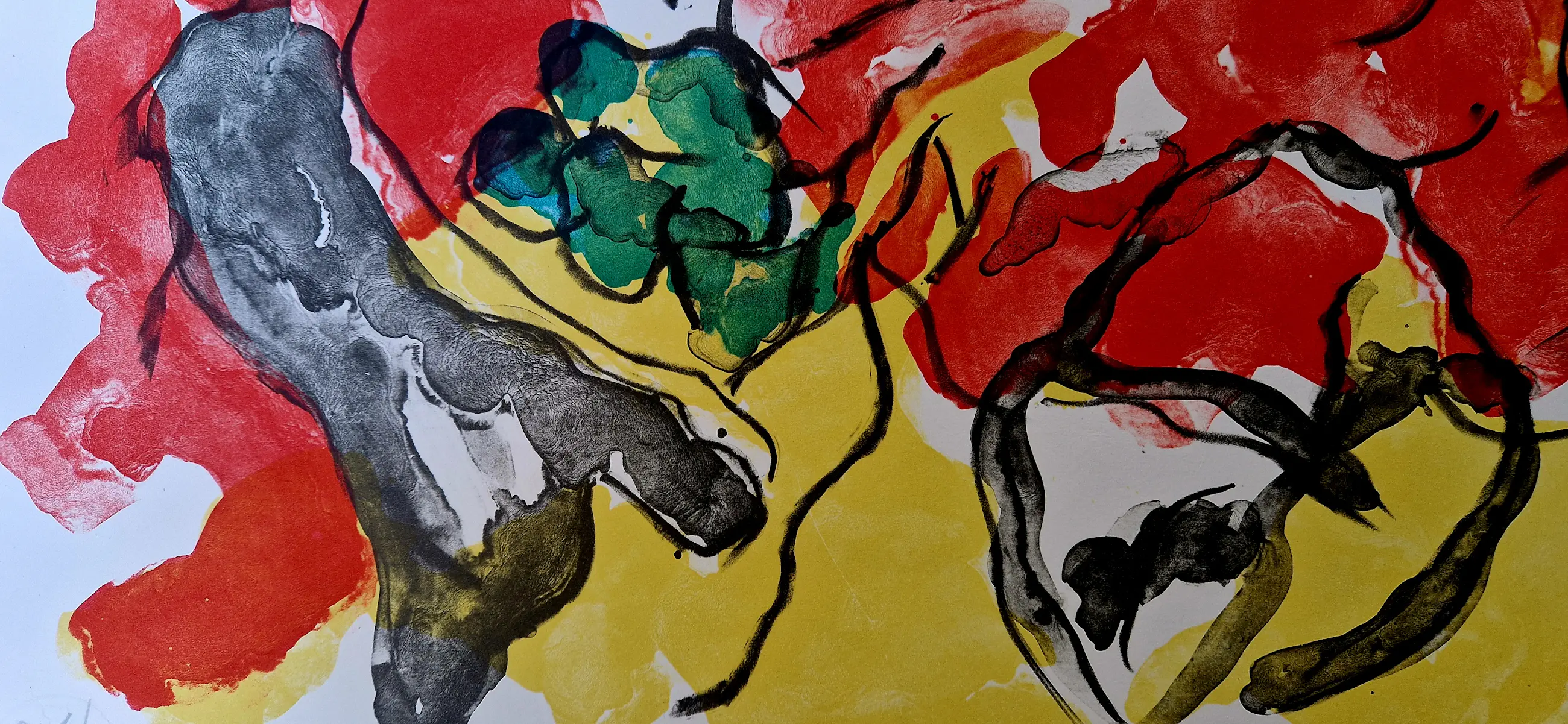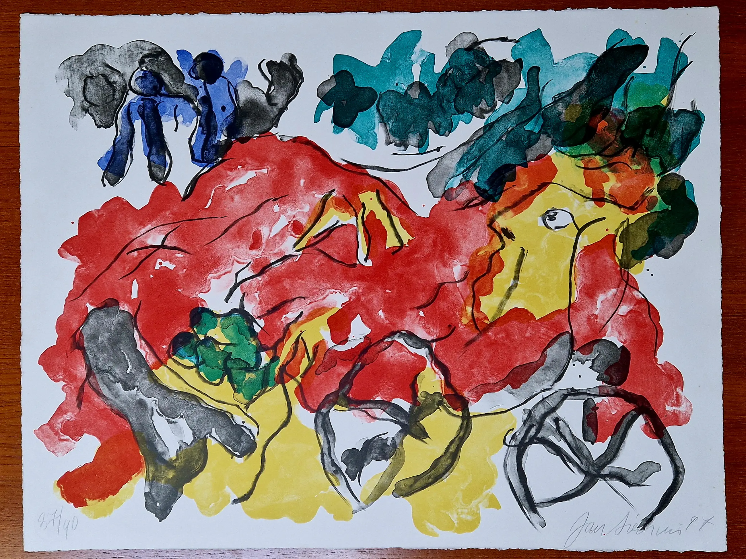 Fraaie lithografie van de Nederlandse Cobra-kunstenaar Jan Sierhuis (1928-2023) op geschept papier.