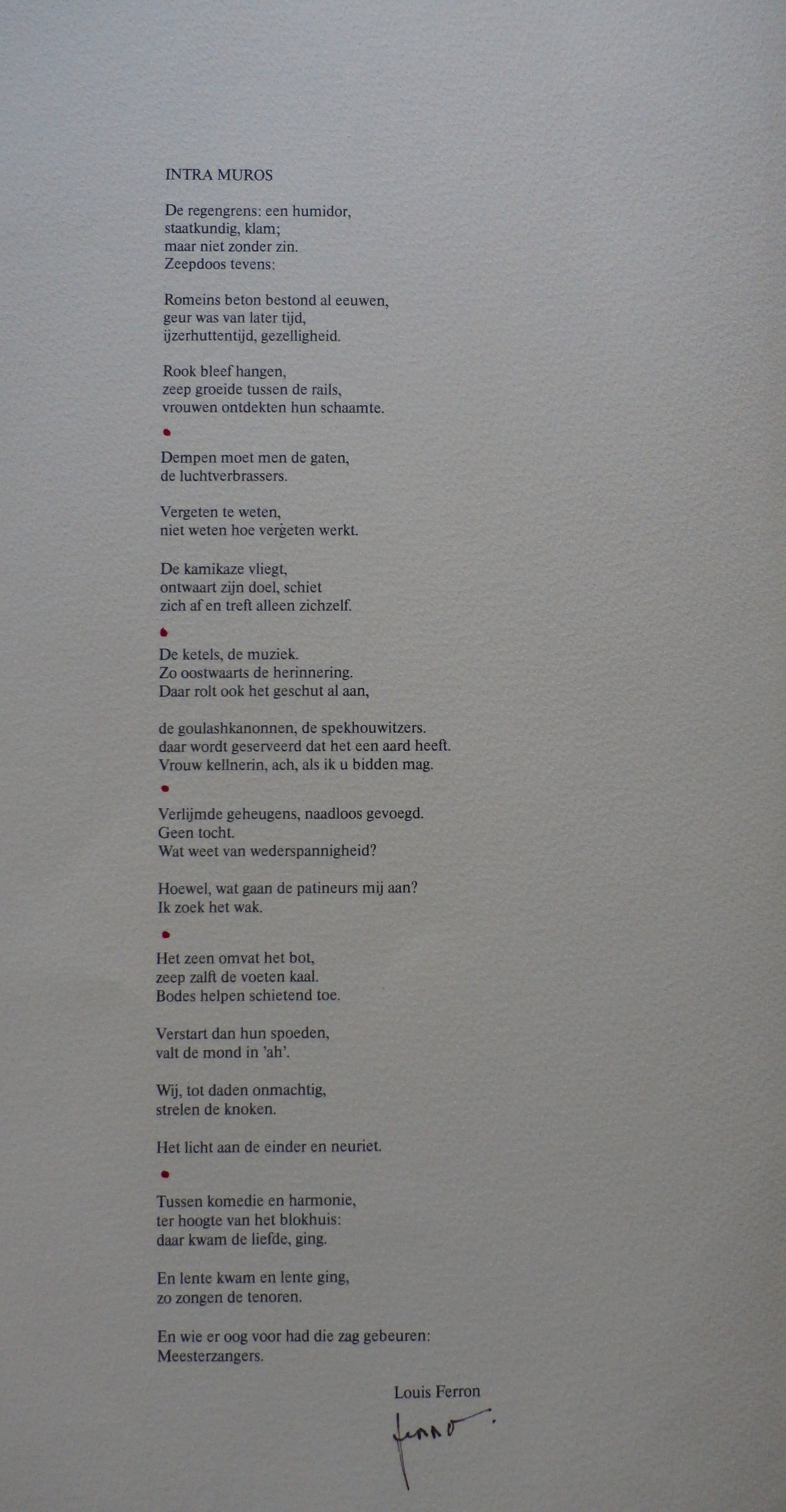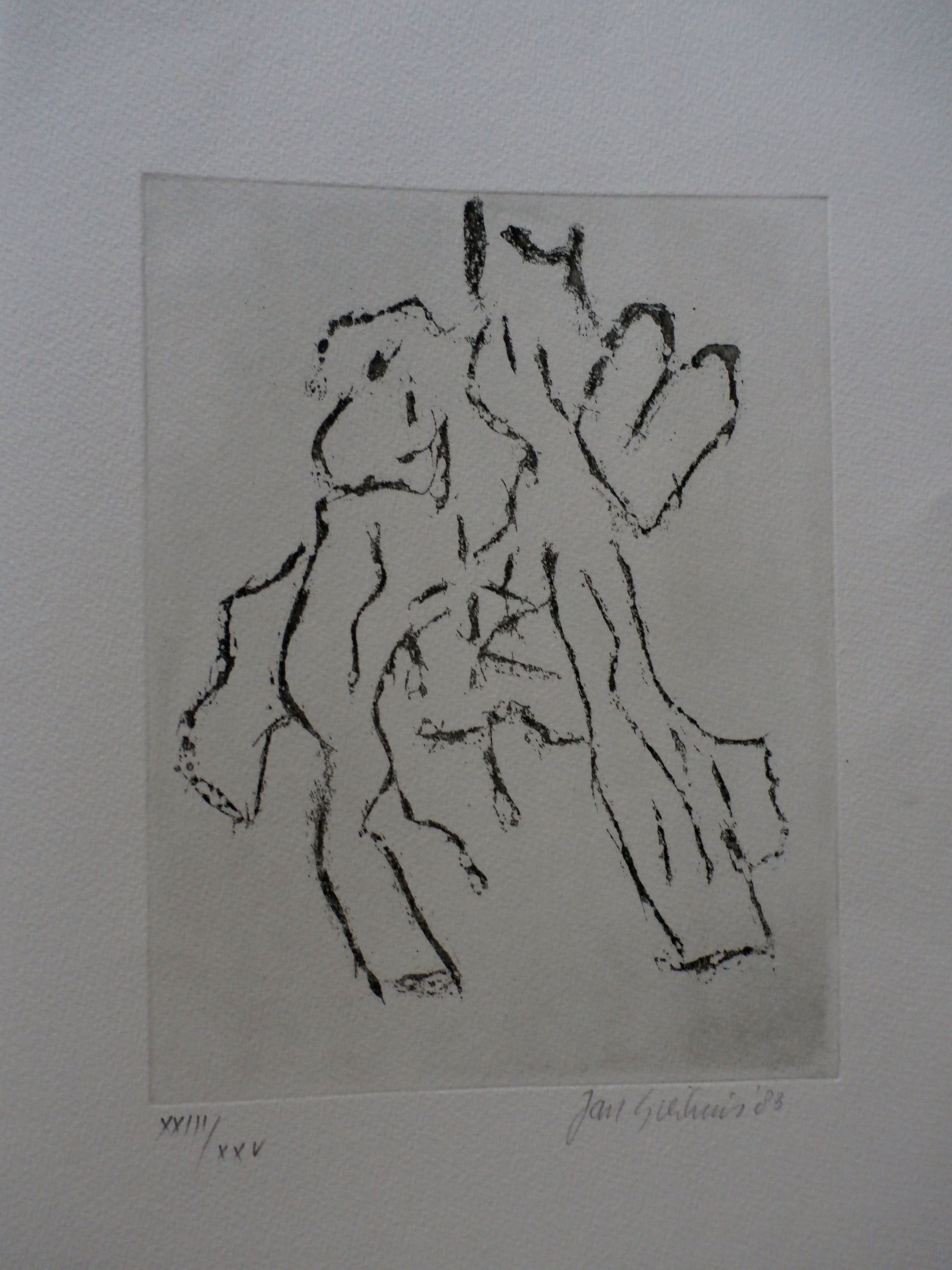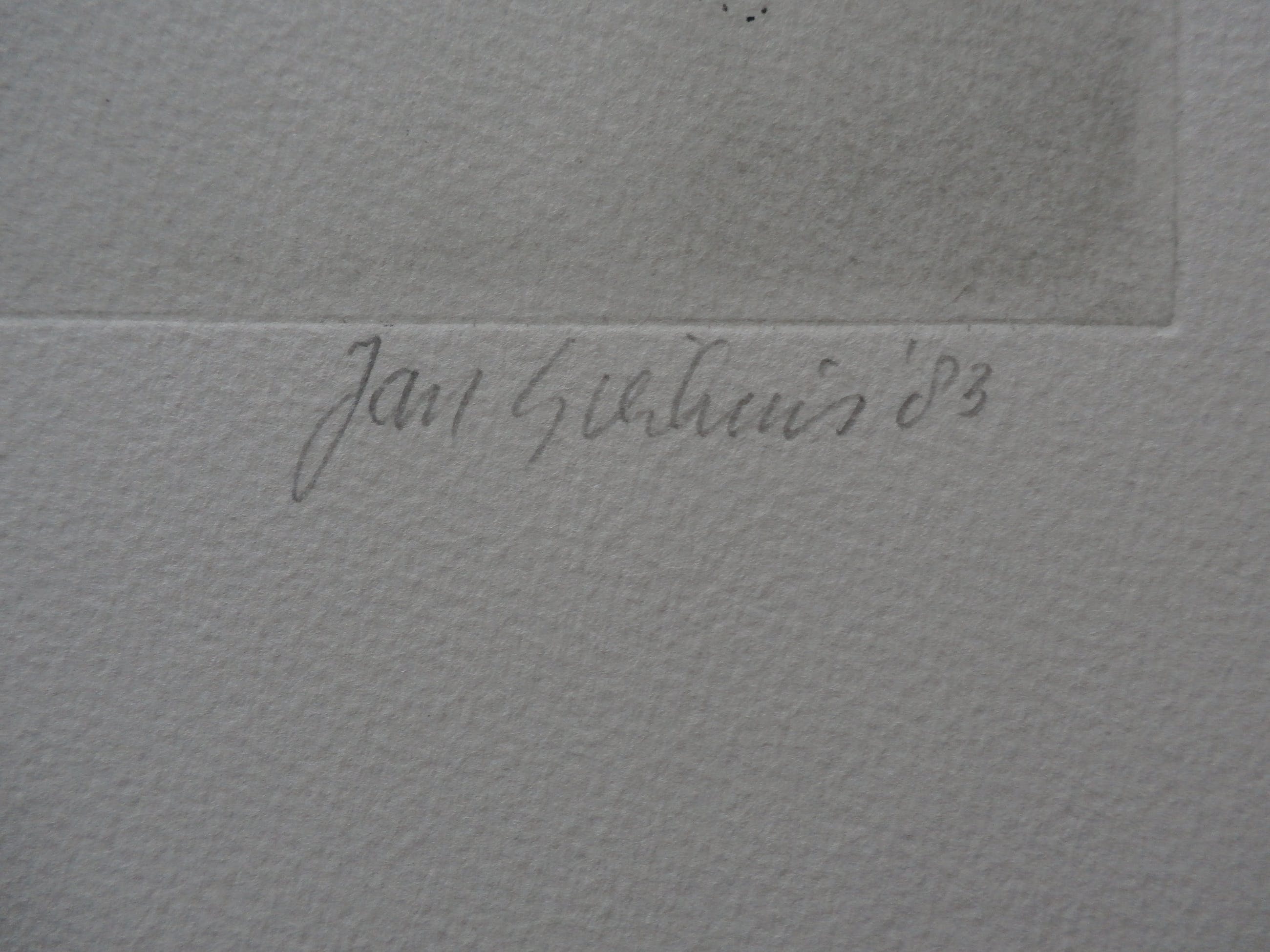 Ets van Jan Sierhuis en gedicht van Louis Feron. Het werk is door beide gesigneerd. Afmetingen voorstelling ets: H26 x b20 cm.De authenticiteit van dit werk wordt voor 100% gegarandeerd. Een certificaat van echtheid kan, op aanvraag, worden meegestuurd.