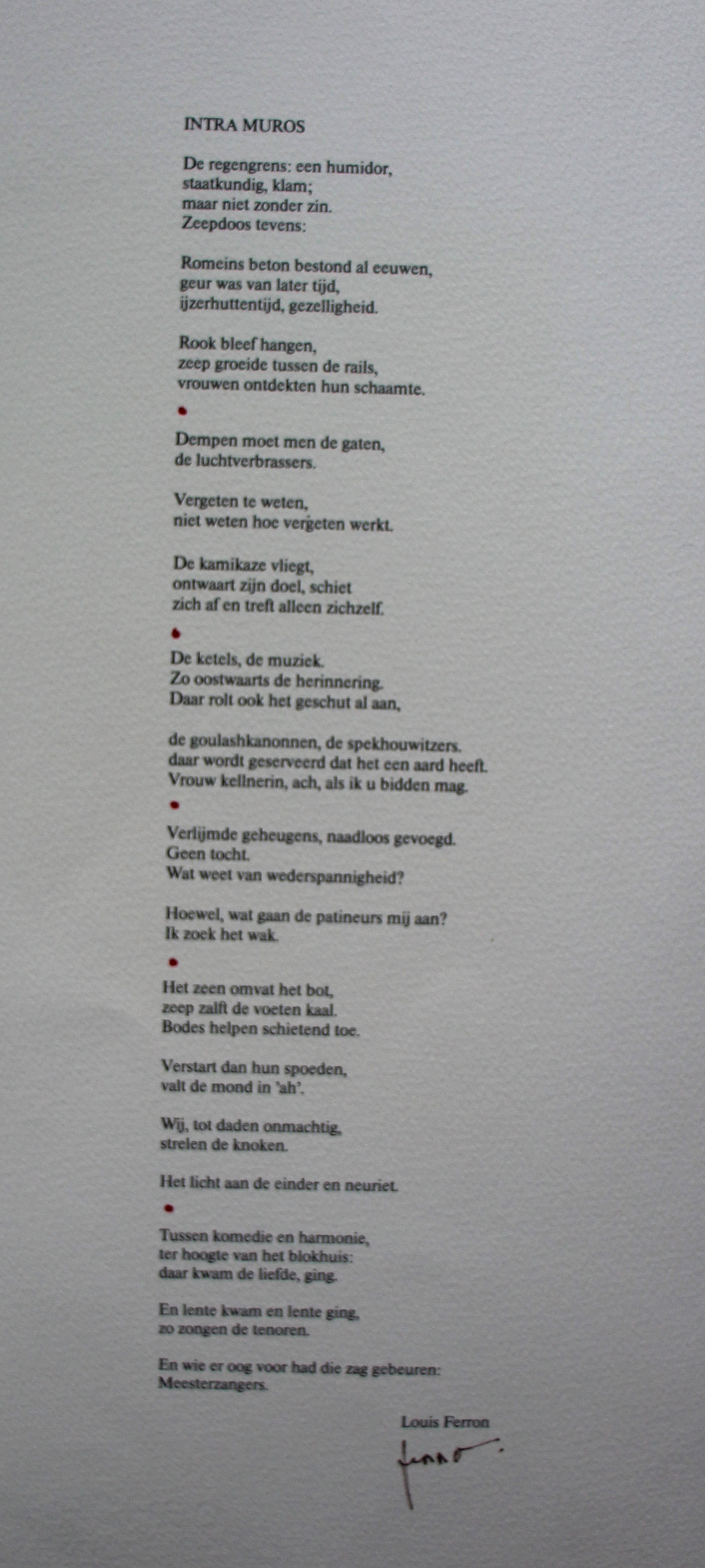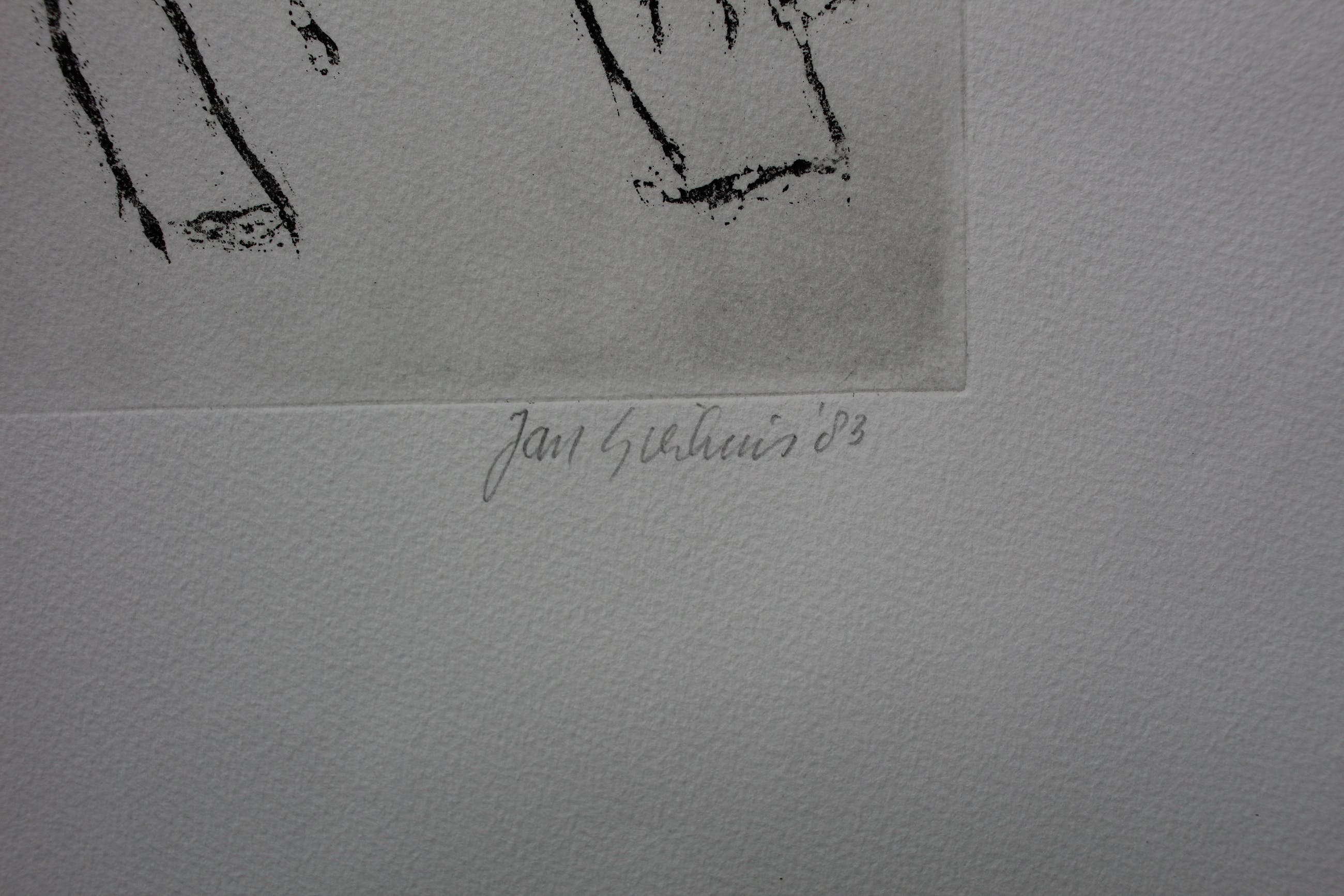 Ets van Jan Sierhuis en gedicht van Louis Feron. Het werk is door beide gesigneerd. Afmetingen voorstelling ets: H26 x b20 cm.De authenticiteit van dit werk wordt voor 100% gegarandeerd. Een certificaat van echtheid kan, op aanvraag, worden meegestuurd.