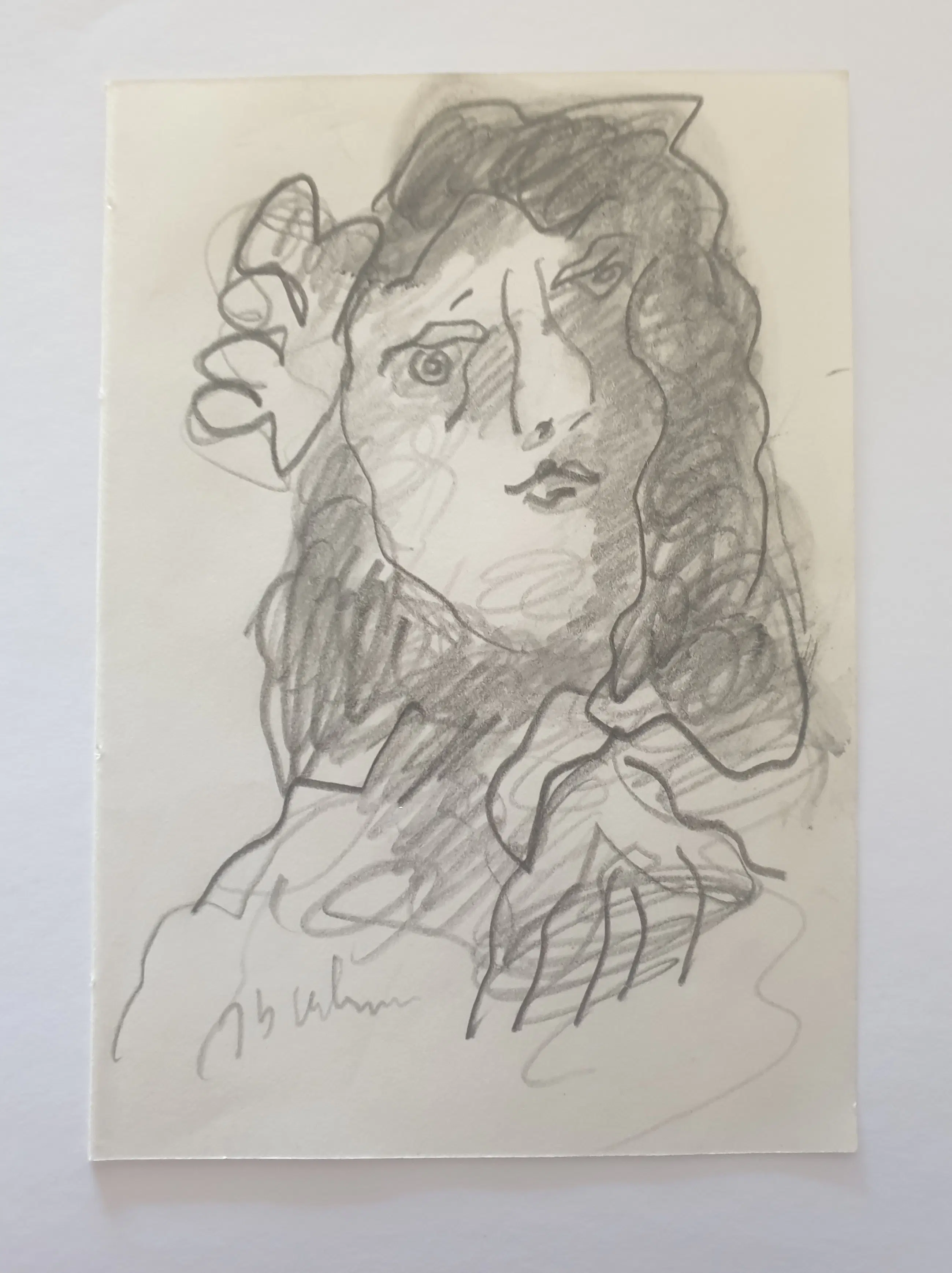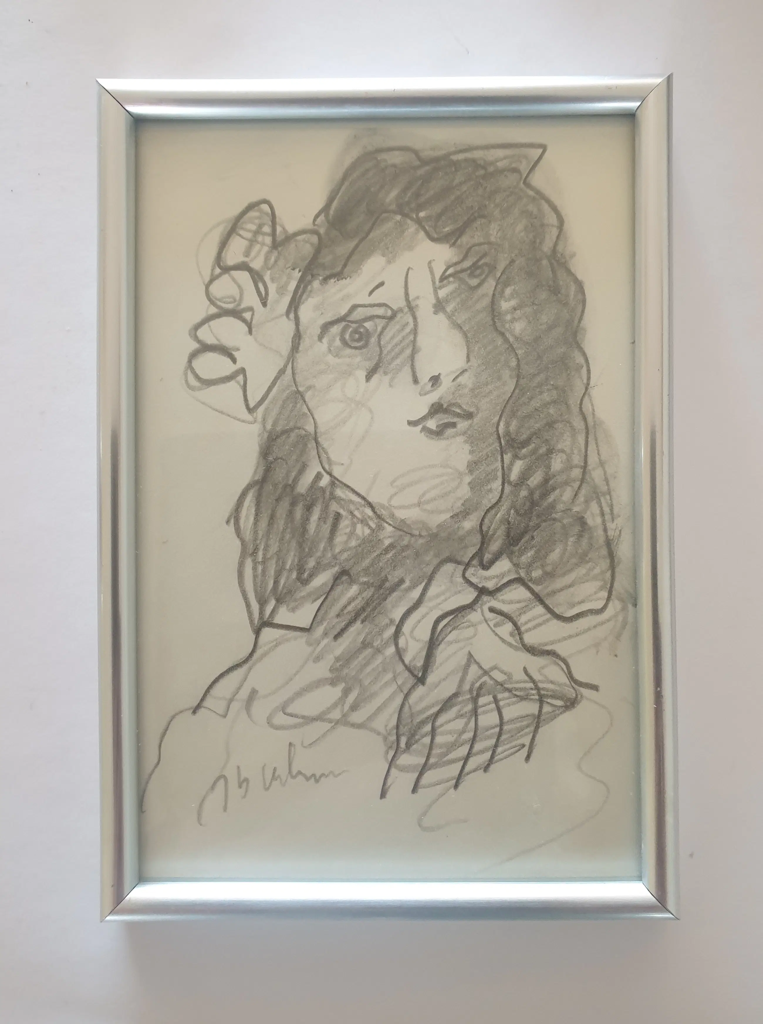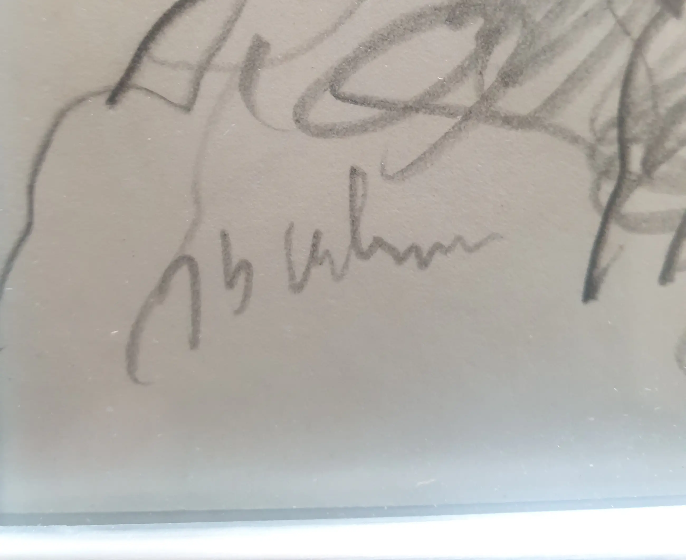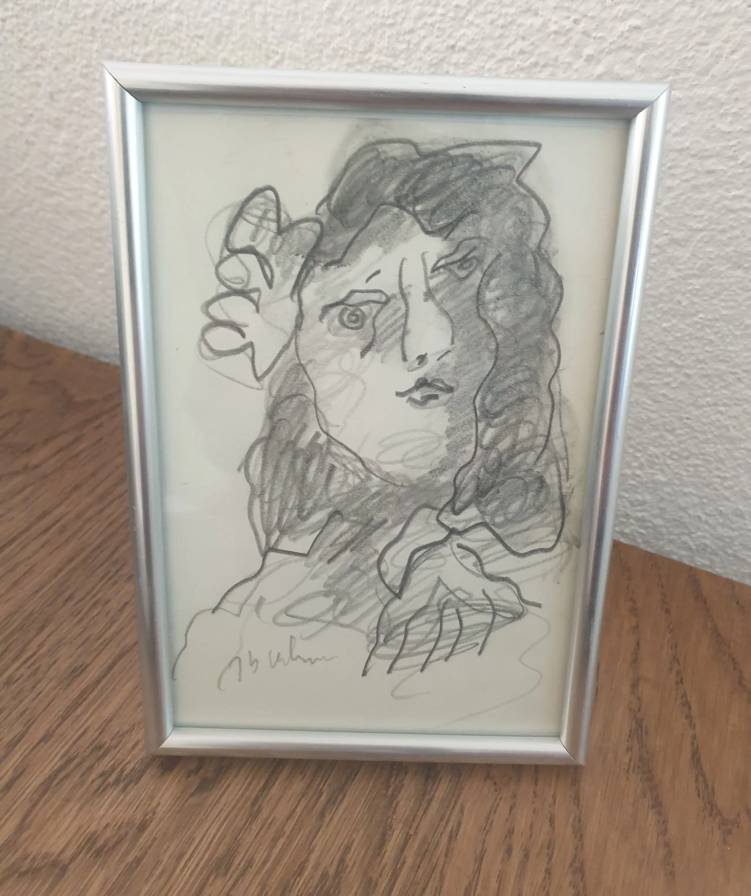 Potloodtekening van de Nederlandse/ Amsterdamse post Cobra/ Expressionistische kunstenaar Jan Sierhuis (1928 - 2023) . Formaat 14 x 10 cm in eenvoudig zilverkleurig lijstje van 15 x 11 cm. Voluit gesigneerd en gedateerd 1992. Wordt aangetekend verstuurd.