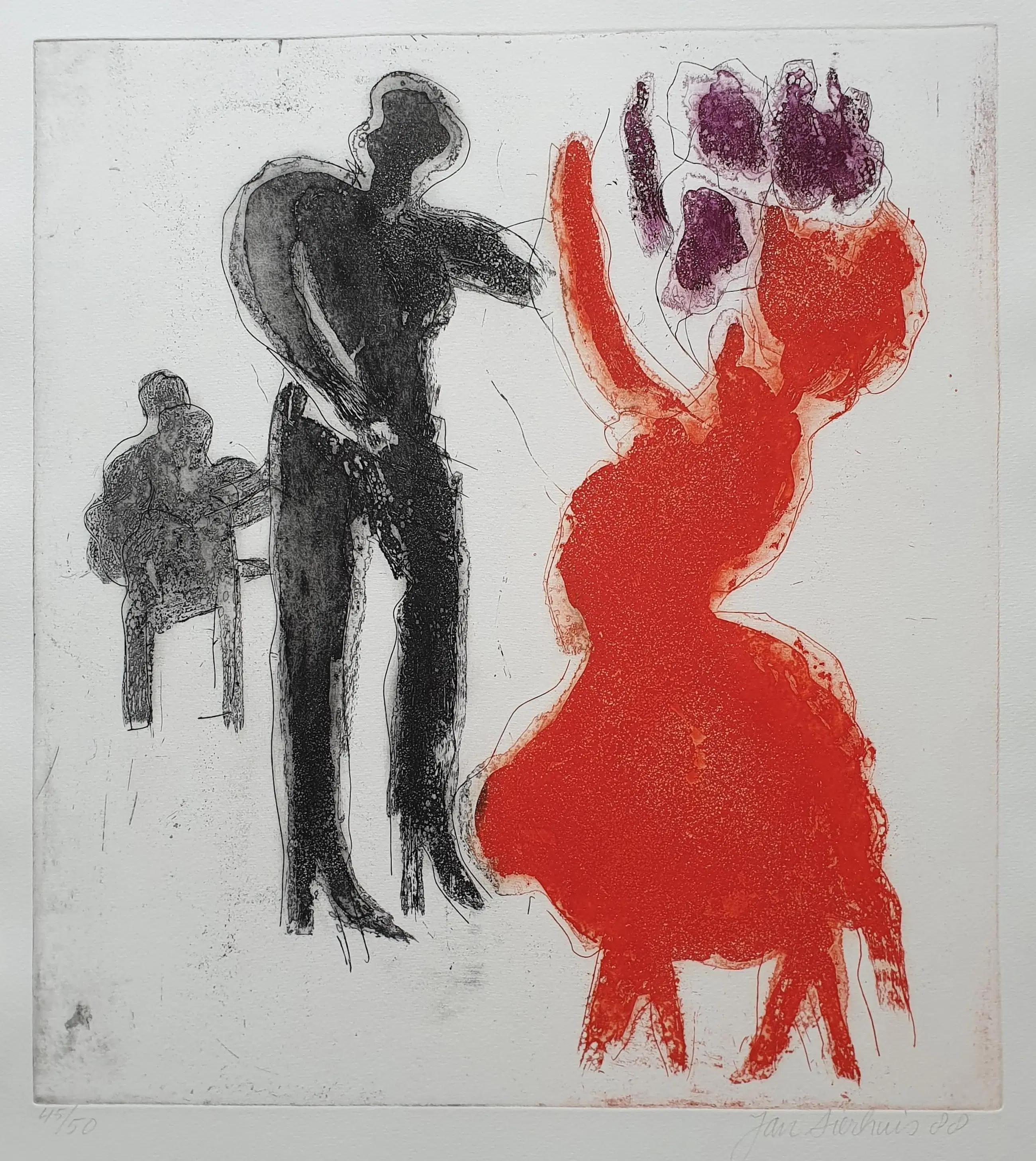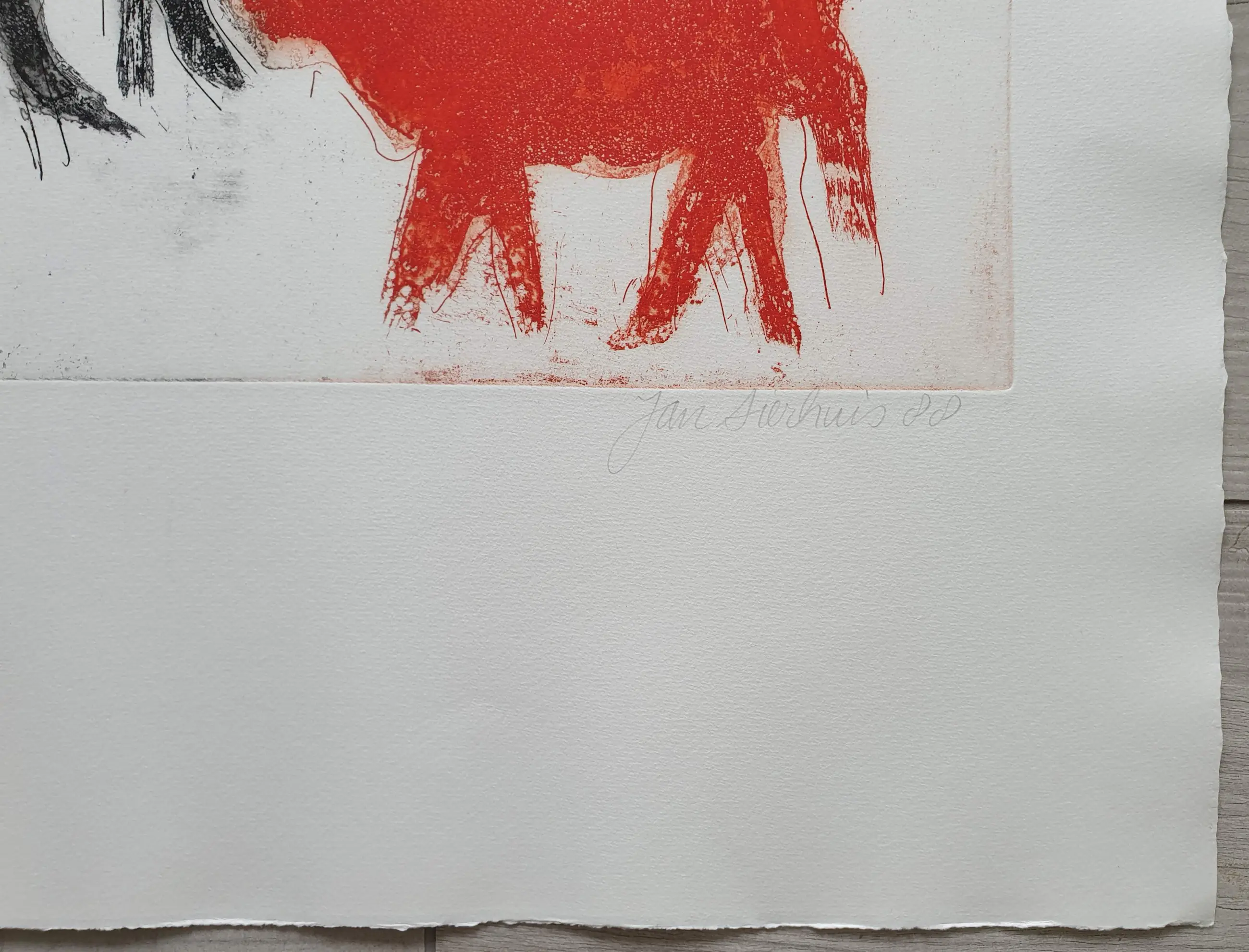 Prachtige kleurenets, handgesigneerd, gedateerd ('88) en genummerd (45/50) in potlood. Afkomstig uit de portfolio '30 jaar Piet Clement', uitgegeven door Printshop (Amsterdam) in 1988. Wordt verstuurd in een verstevigde koker, incl. track & trace.